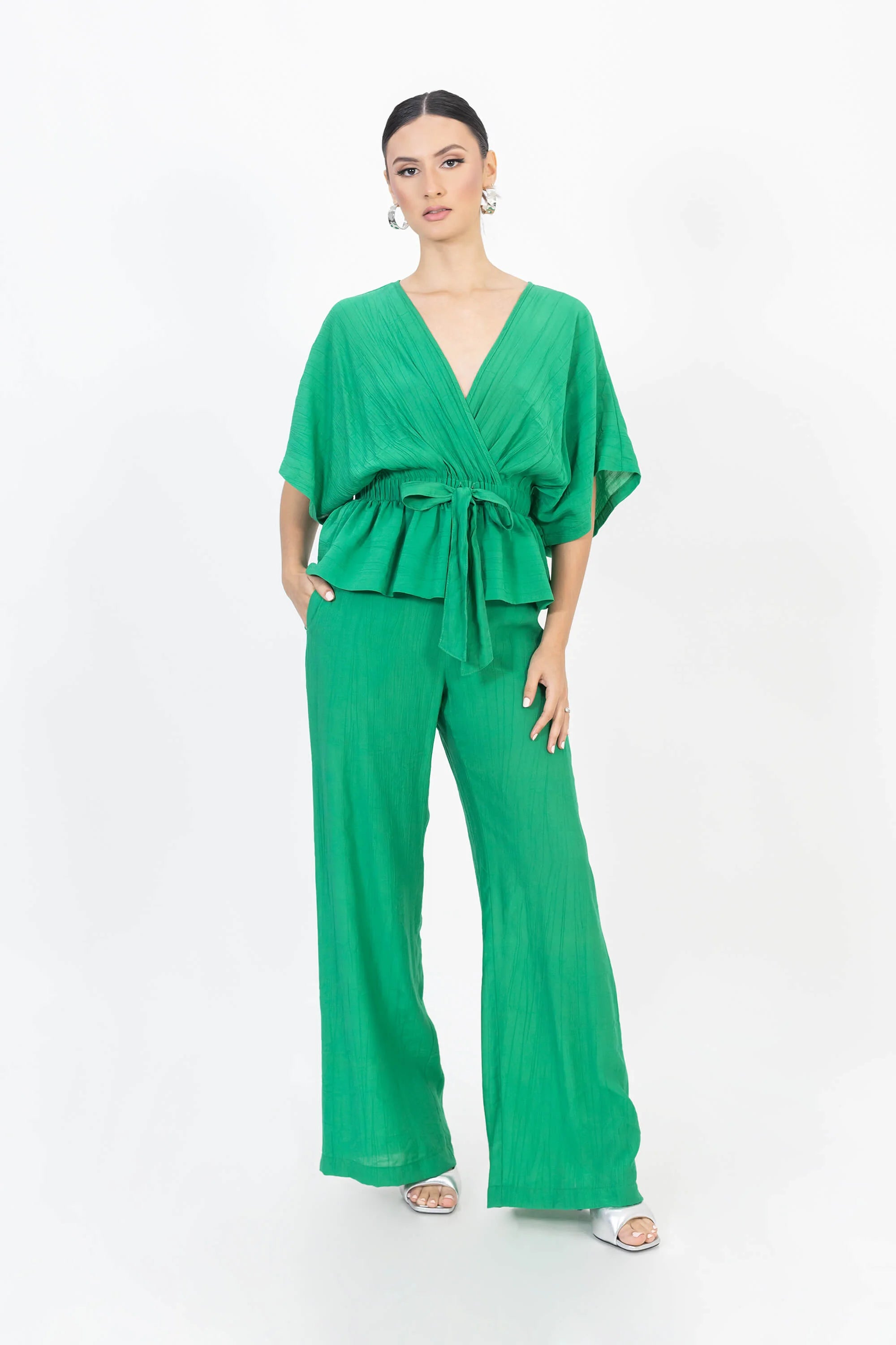 Este pantalón semi wide leg con bolsas de costado redefine la sofisticación funcional. Su silueta de pierna semi ancha alarga visualmente la figura y ofrece libertad de movimiento sin sacrificar estructura. El diseño incorpora costuras limpias y bolsas laterales sutiles que acentúan la línea vertical del pantalón, brindando equilibrio entre lo práctico y lo estético.