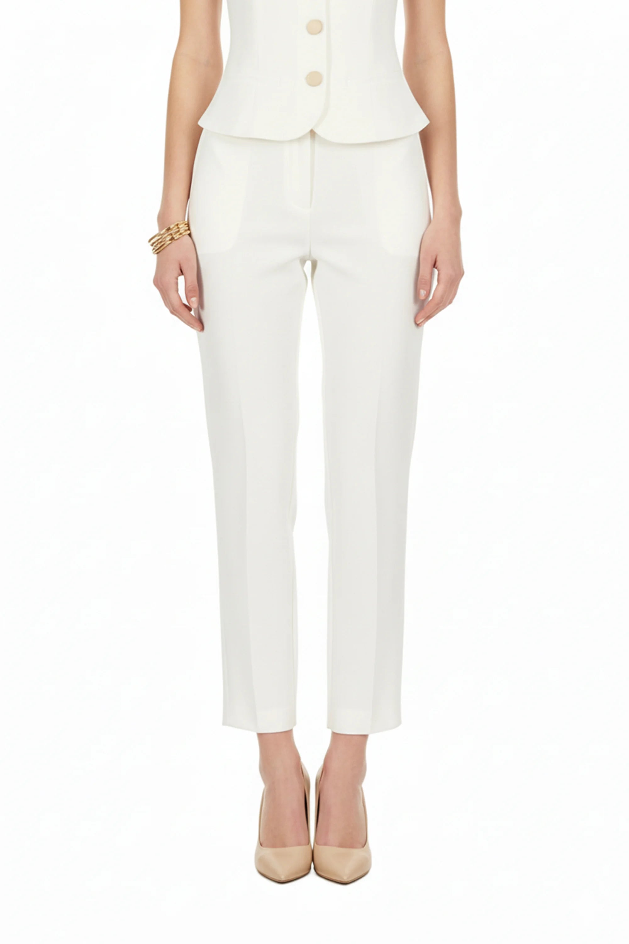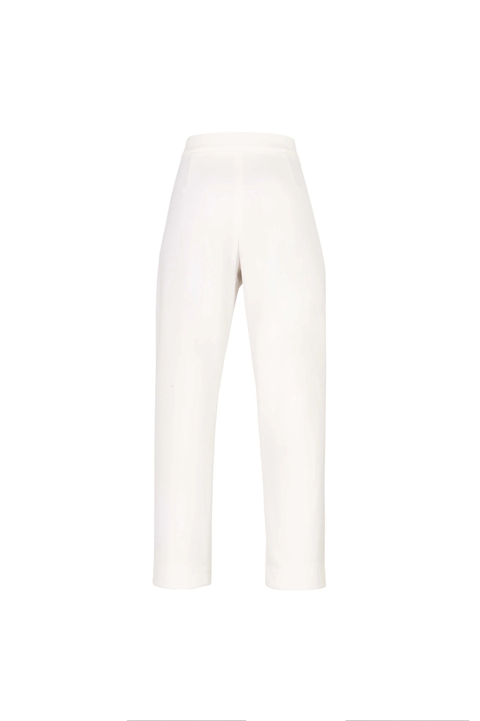 Este pantalón de poliéster combina confort, elegancia y un diseño atemporal. Su corte recto y cintura alta esculpen visualmente la figura y alargan las piernas, mientras que la textura del tejido aporta estructura sin sacrificar flexibilidad.
