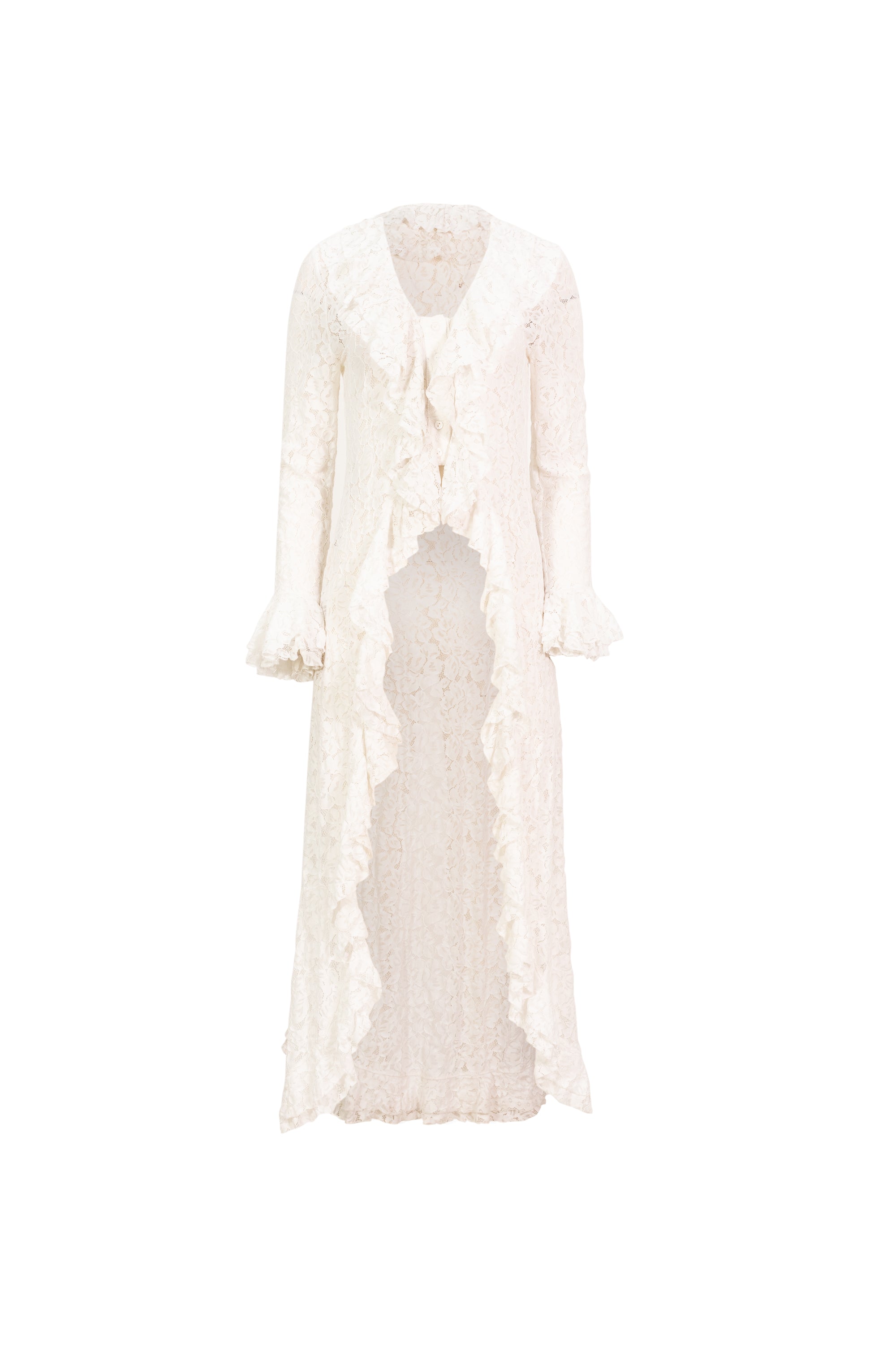 Ensamble escote en "V" con olanes en escote y manga larga