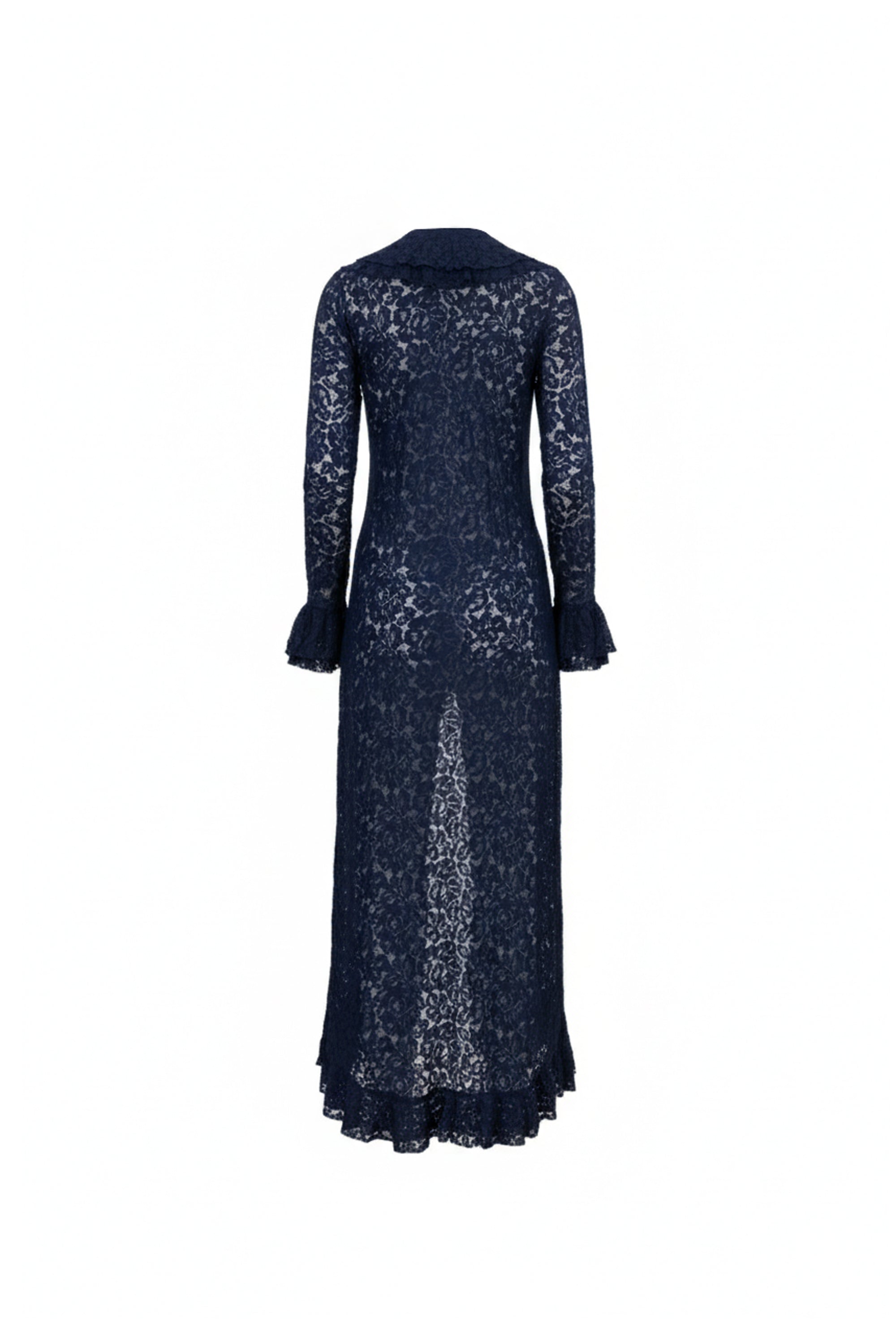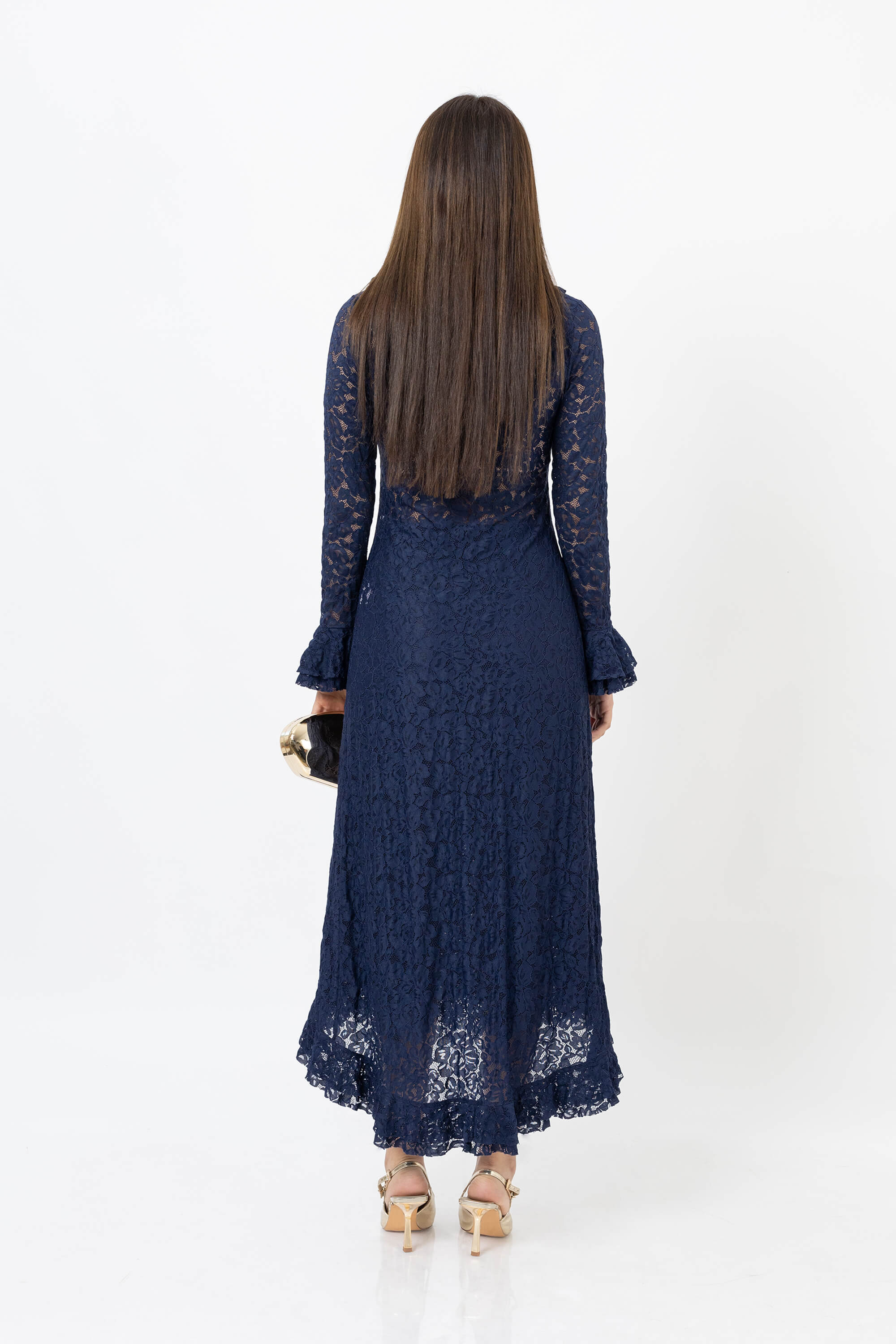 Ensamble escote en "V" con olanes en escote y manga larga