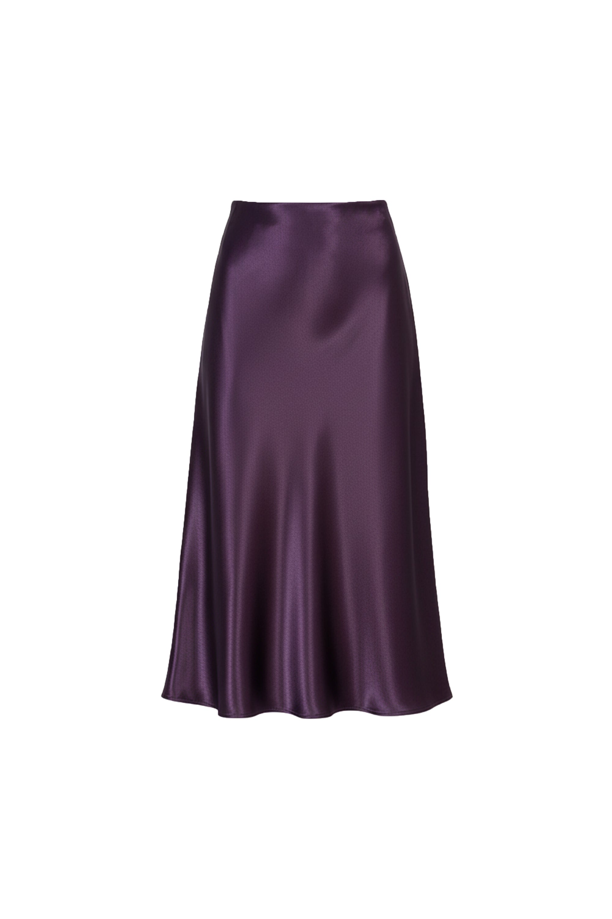 Esta falda en línea A de satin . Su silueta estructurada al cuerpo y sutilmente amplia hacia el ruedo estiliza la figura con naturalidad y libertad de movimiento.