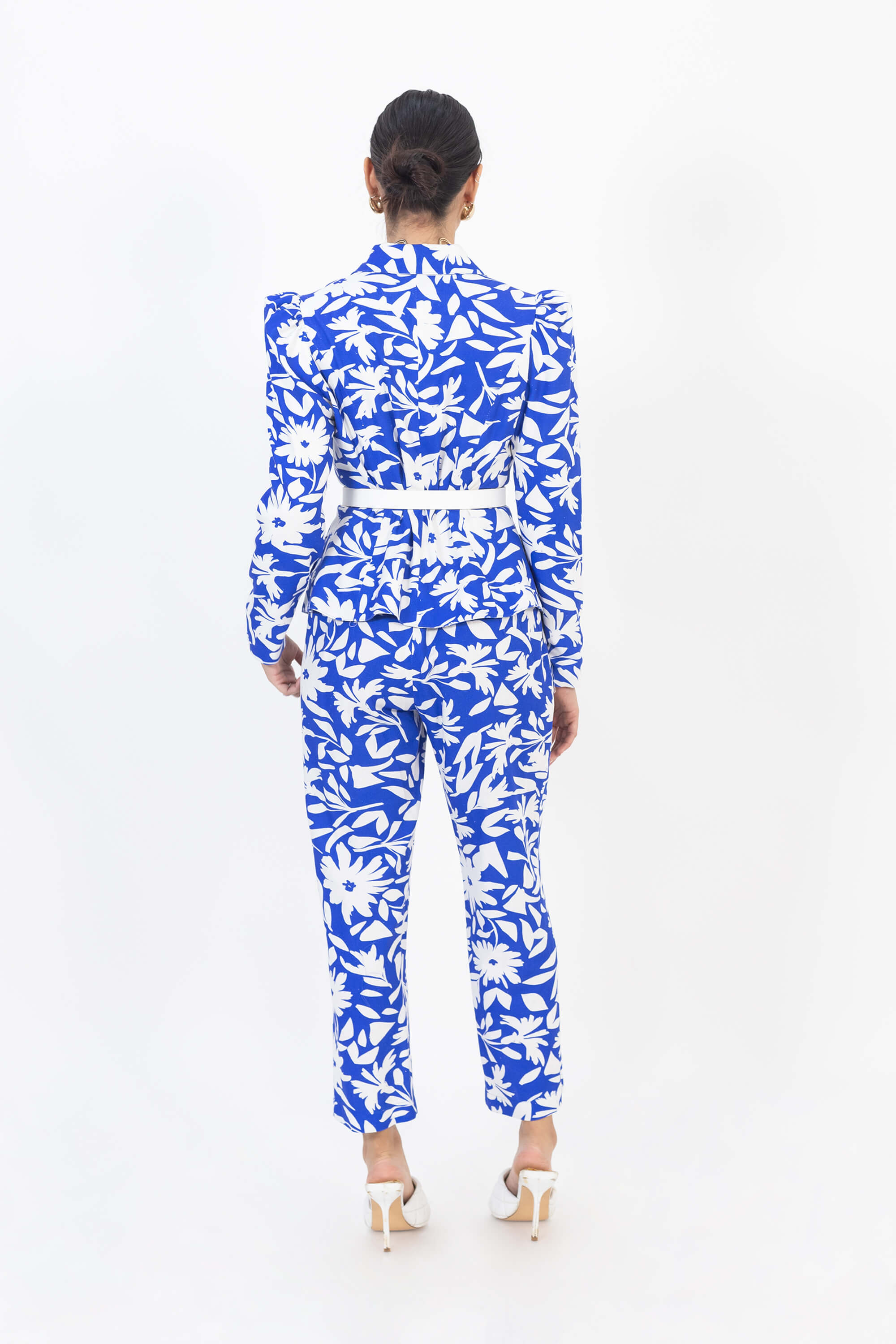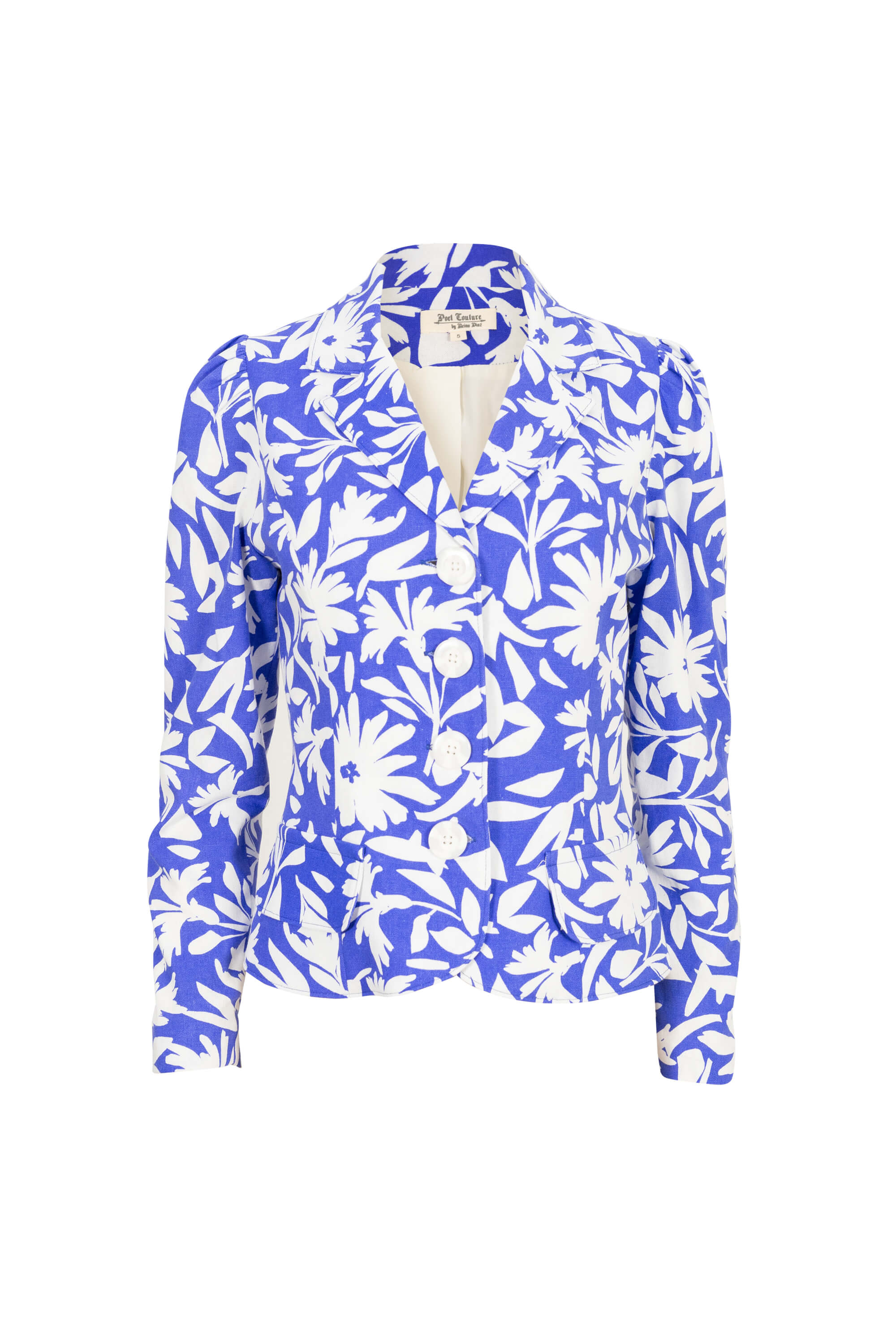 Este saco de manga larga con carteras delanteras combina la energía del color con la precisión de la sastrería artesanal. Confeccionado en un textil estructurado de excelente caída, su estampado floral en azul y blanco lo convierte en una pieza llamativa, sofisticada y llena de personalidad.