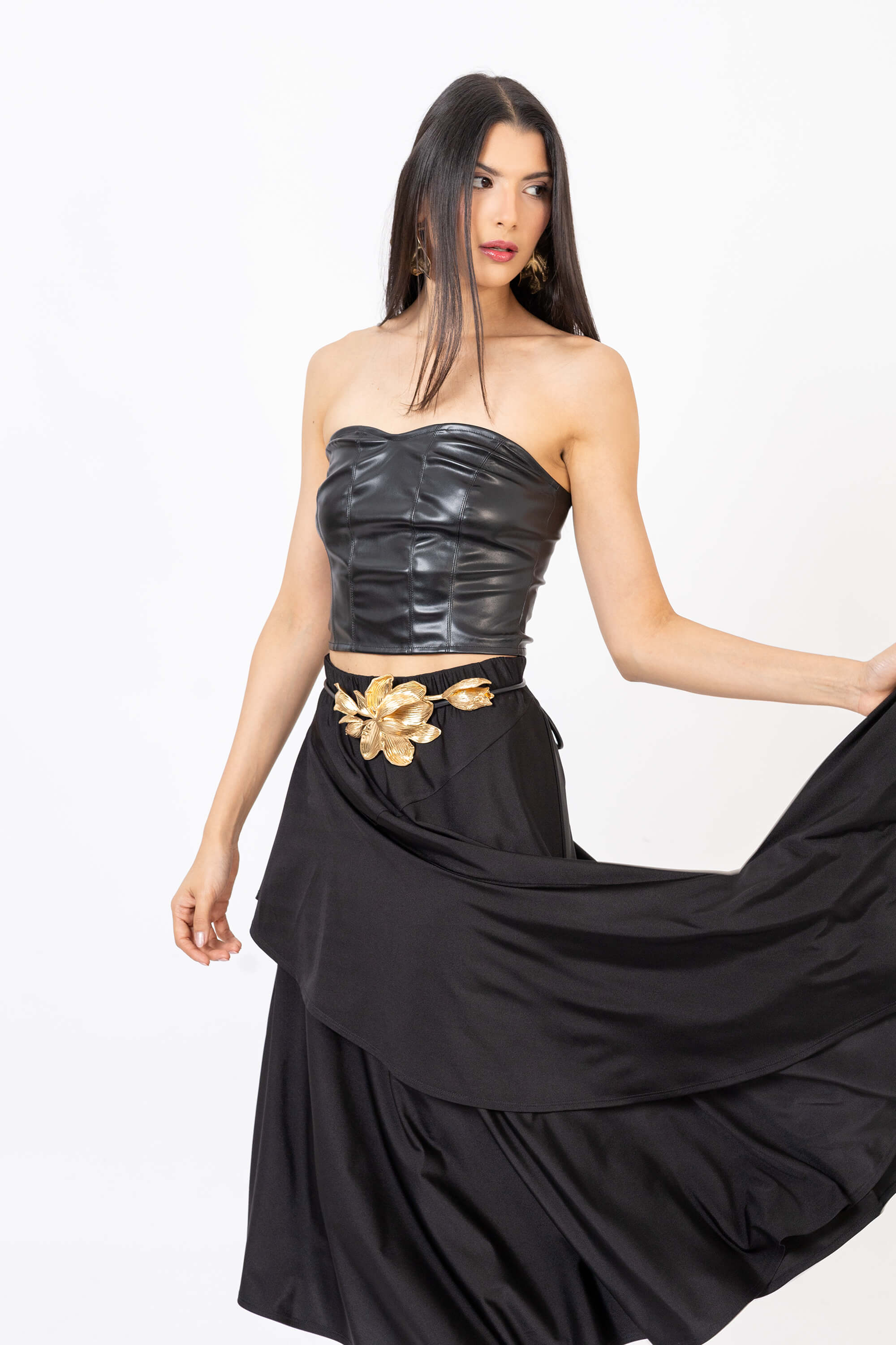 El Top de cortes con pespunte de Poet Couture redefine la sensualidad urbana con un diseño minimalista y vanguardista. Elaborado en material efecto piel, su estructura strapless con cortes marcados y pespuntes visibles realza la figura con un aire rebelde y sofisticado. Ideal para combinar con prendas de mezclilla, faldas o pantalones de talle alto, es una pieza clave para crear looks modernos con actitud y autenticidad.