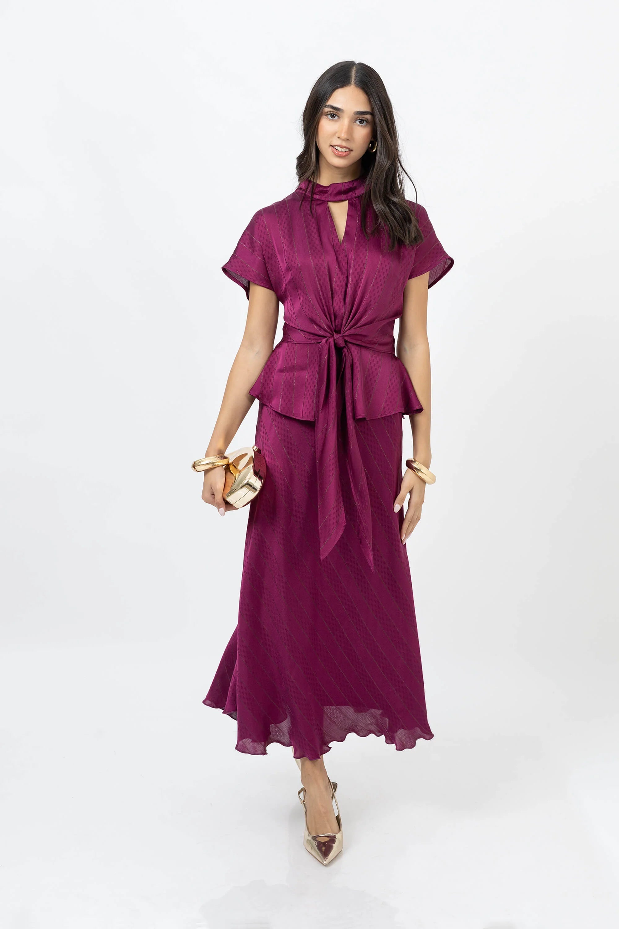 La blusa con manga pasada, peplum y tiras integradas de Poet Couture combina feminidad y elegancia moderna. Su diseño estructurado define la cintura con un lazo delicado, aportando fluidez y sofisticación a cualquier look, ideal para ocasiones casuales o de oficina.