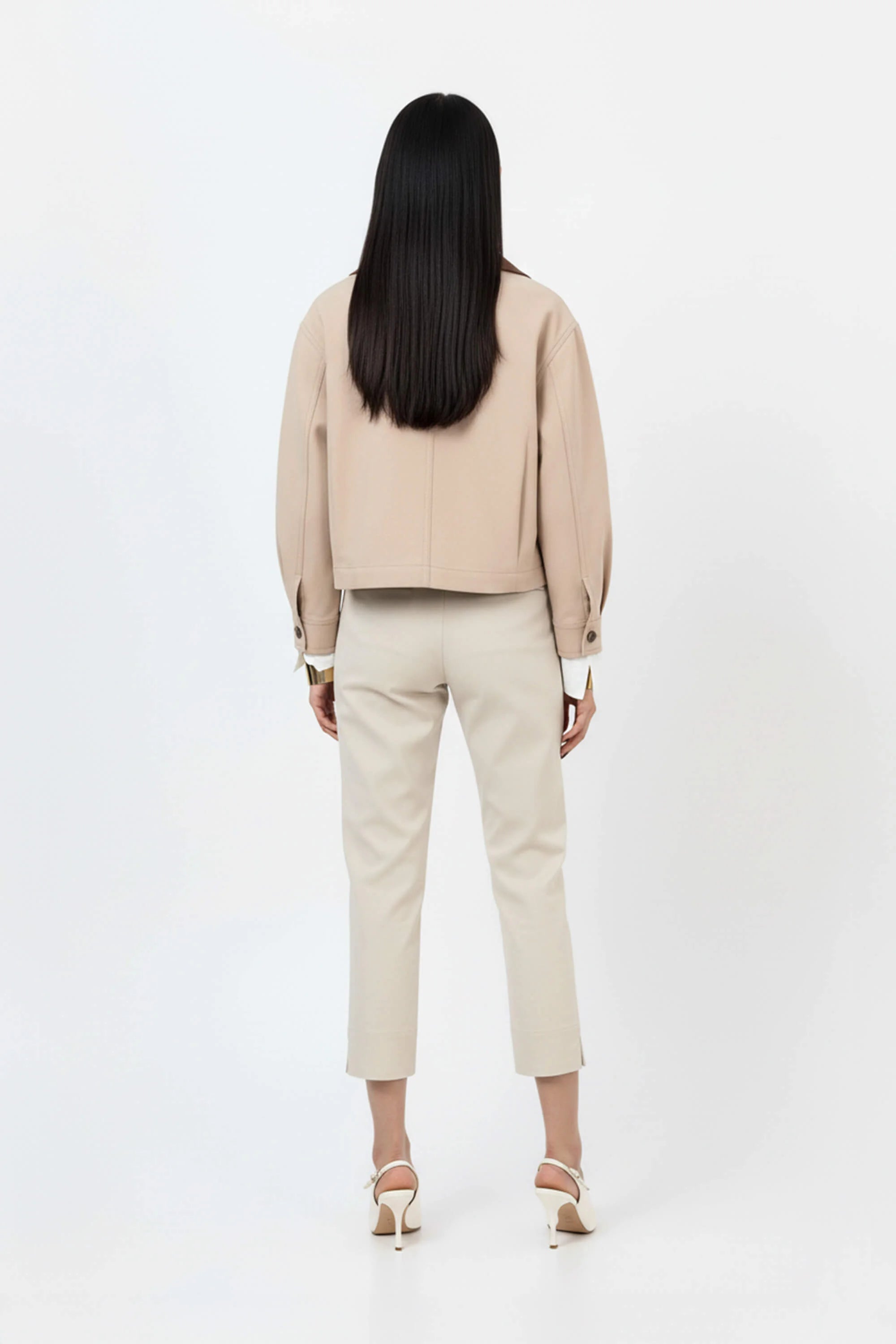 La Chaqueta con cuello y bolsas de parche de Poet Couture fusiona el estilo contemporáneo con la elegancia funcional. Confeccionada en tejido estructurado de acabado suave, presenta un diseño con cierre frontal, amplias bolsas de parche y un cuello contrastante en tono chocolate que aporta un toque distintivo. Ideal para crear looks modernos con una silueta limpia y refinada, perfecta para mujeres que valoran la sofisticación en los detalles.