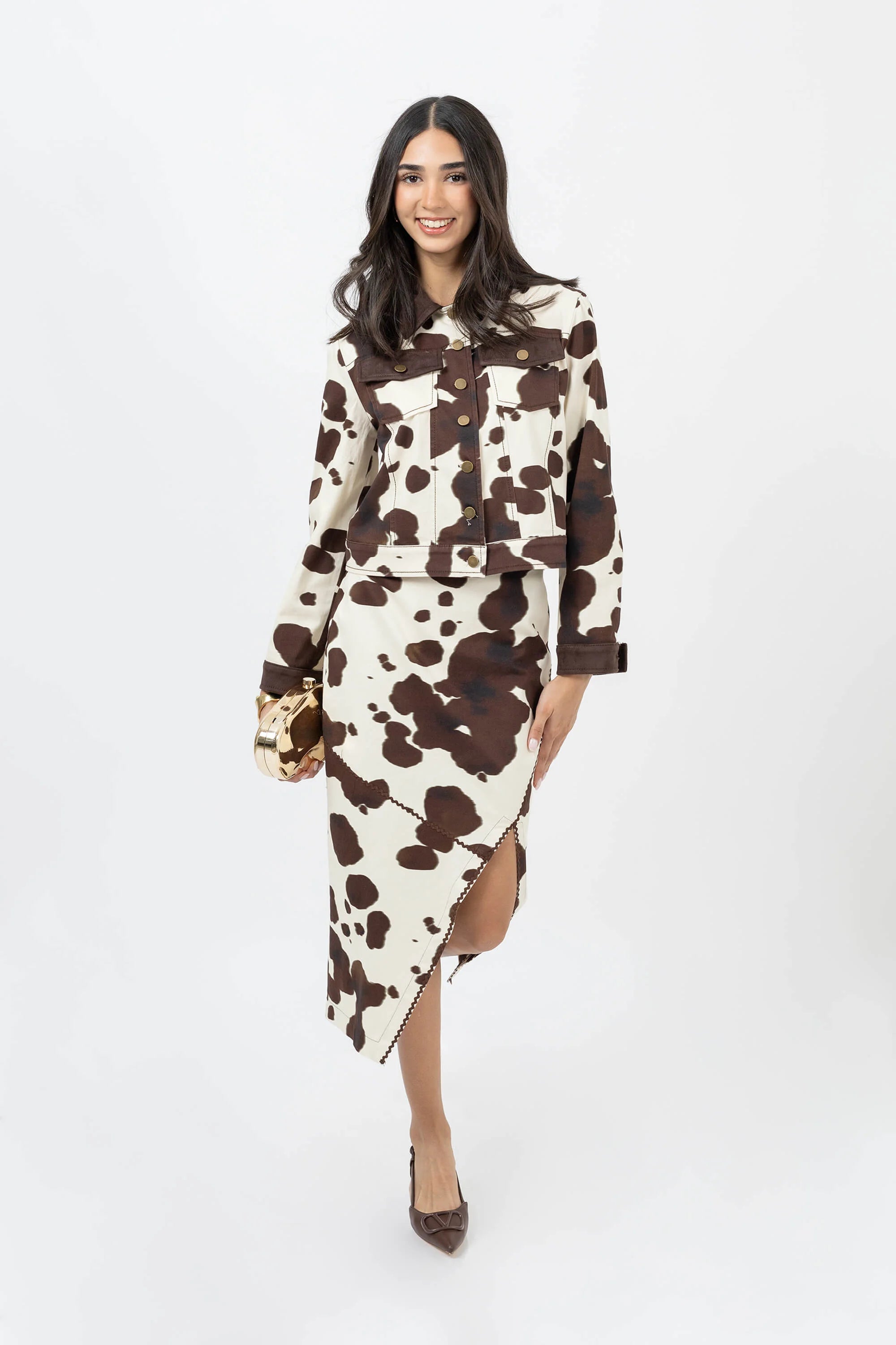 La falda midi asimétrica con cortes y avío de Poet Couture fusiona inspiración western y diseño moderno. Su silueta envolvente con aberturas estratégicas y costuras visibles crea un contraste audaz y sofisticado, ideal para un look vanguardista con carácter.