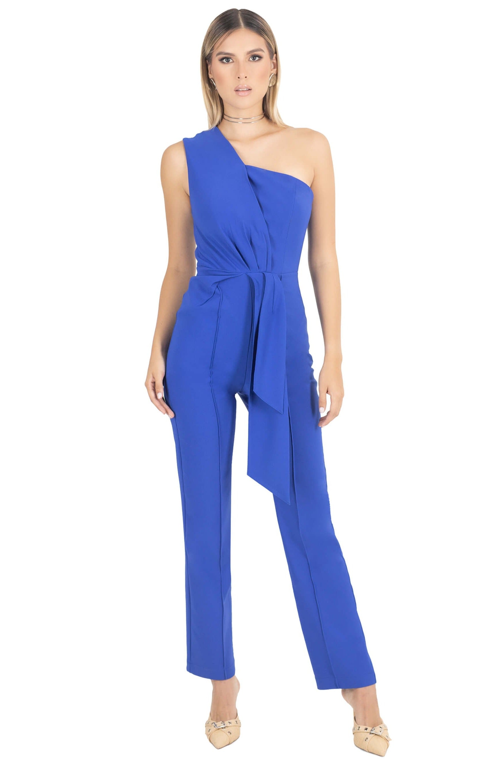 Pantsuit de Un Hombro, diseñado meticulosamente con alforzas y un detalle decorativo de caída asimétrica acentuando tu cintura ofreciendo una silueta impactante y única
