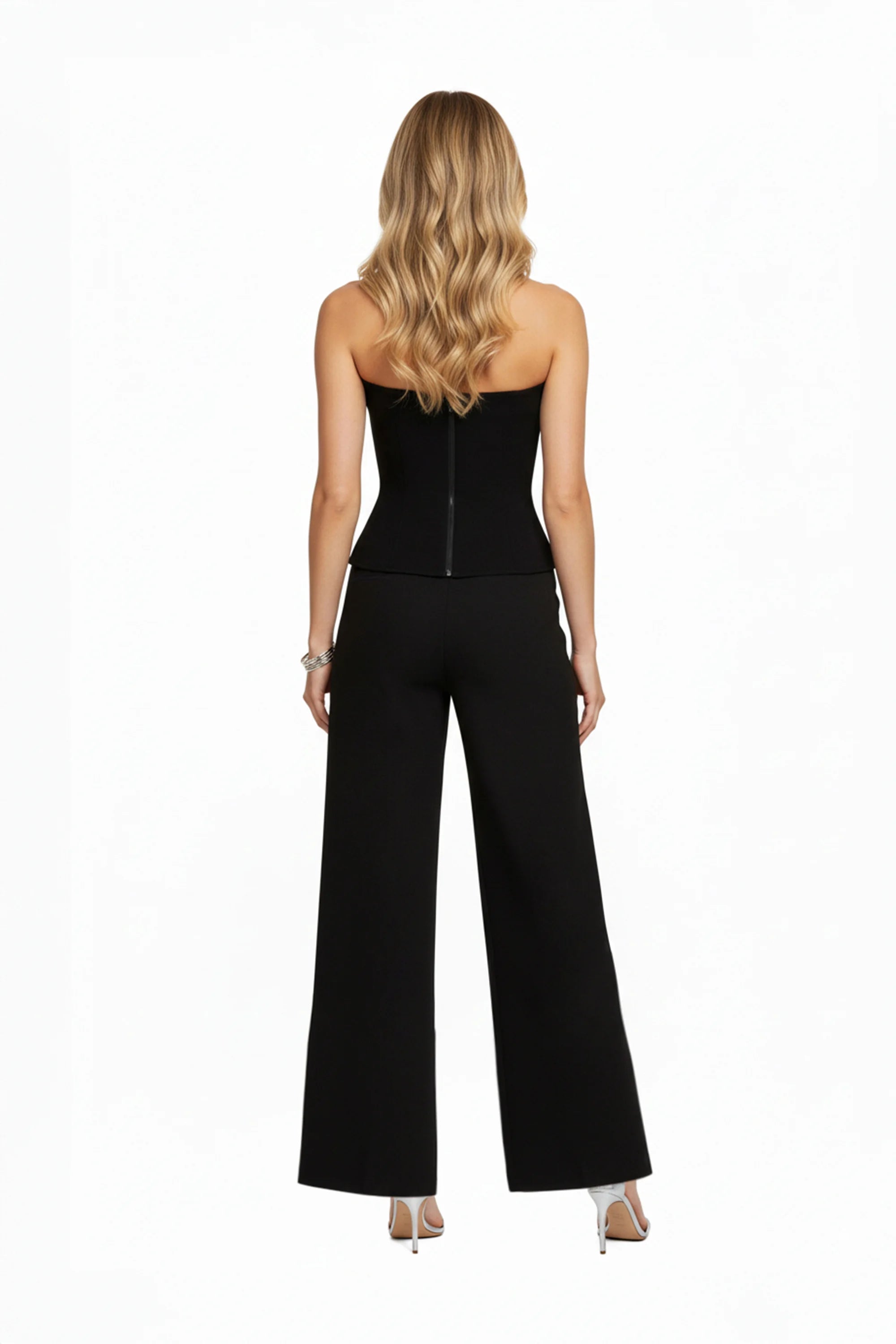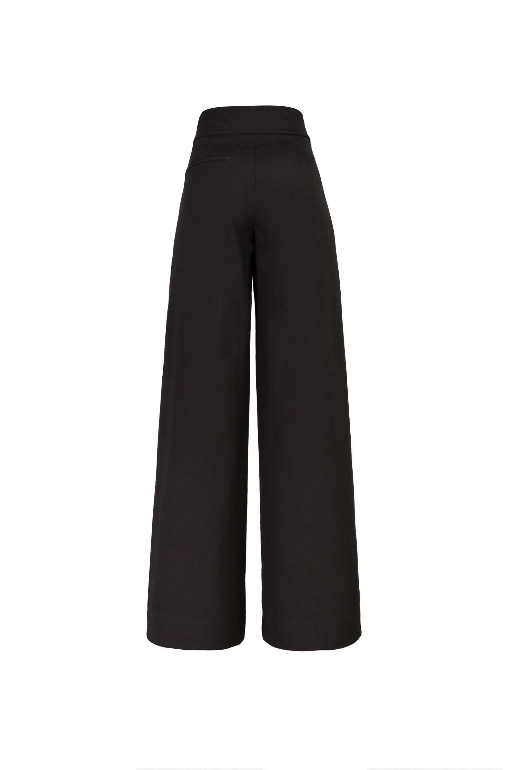 Este pantalón semi wide leg redefine la elegancia contemporánea. Con una caída estructurada que alarga visualmente la figura, su diseño destaca por su sobriedad sofisticada y un detalle de vivo en la parte trasera que añade carácter sin restar discreción.
