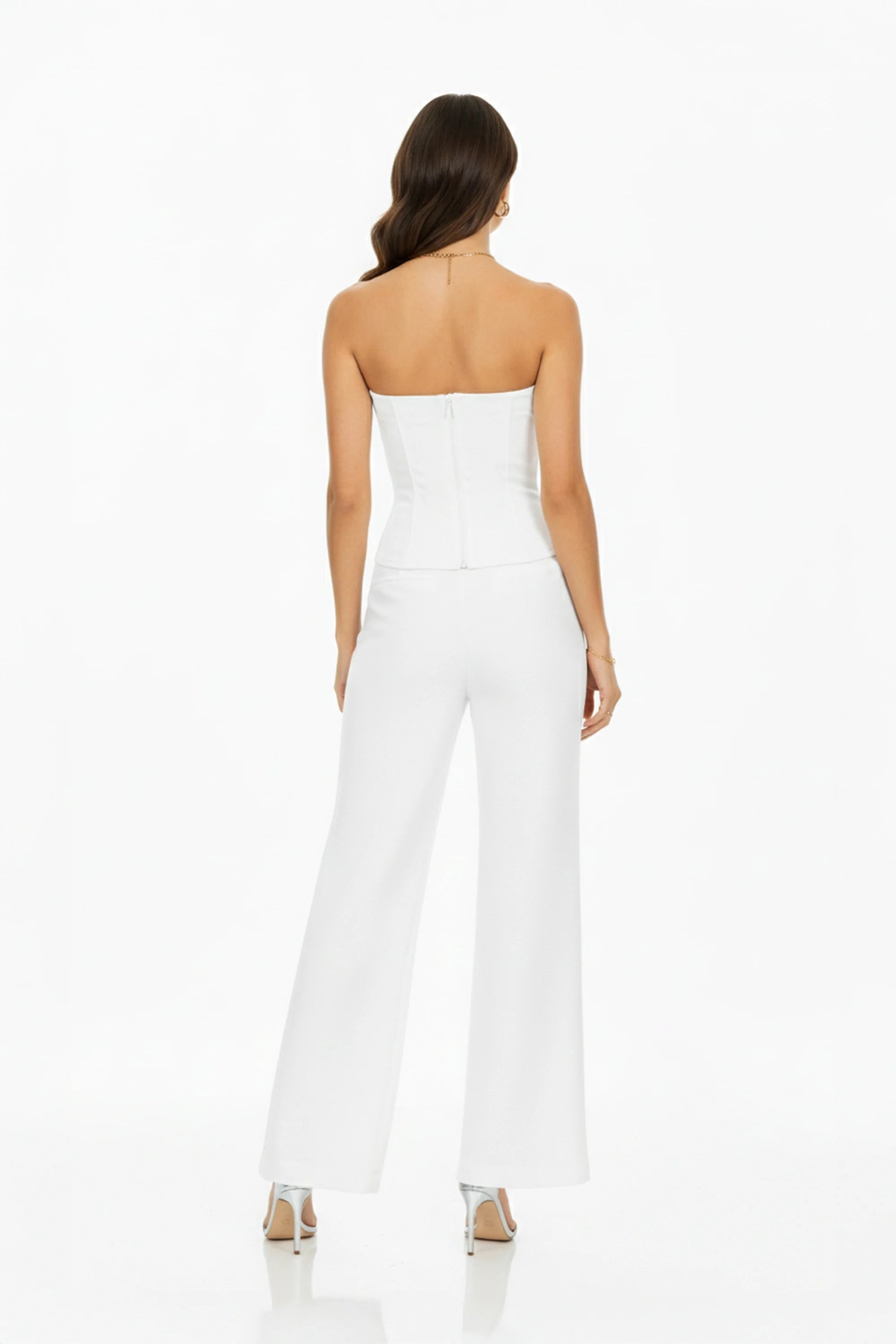 Minimalista, moderno y sumamente femenino: este saco strapless es una declaración de estilo refinado. Diseñado con cortes verticales que estilizan la figura y realzado por pespuntes marcados, ofrece una estructura impecable que acentúa el torso con elegancia natural.