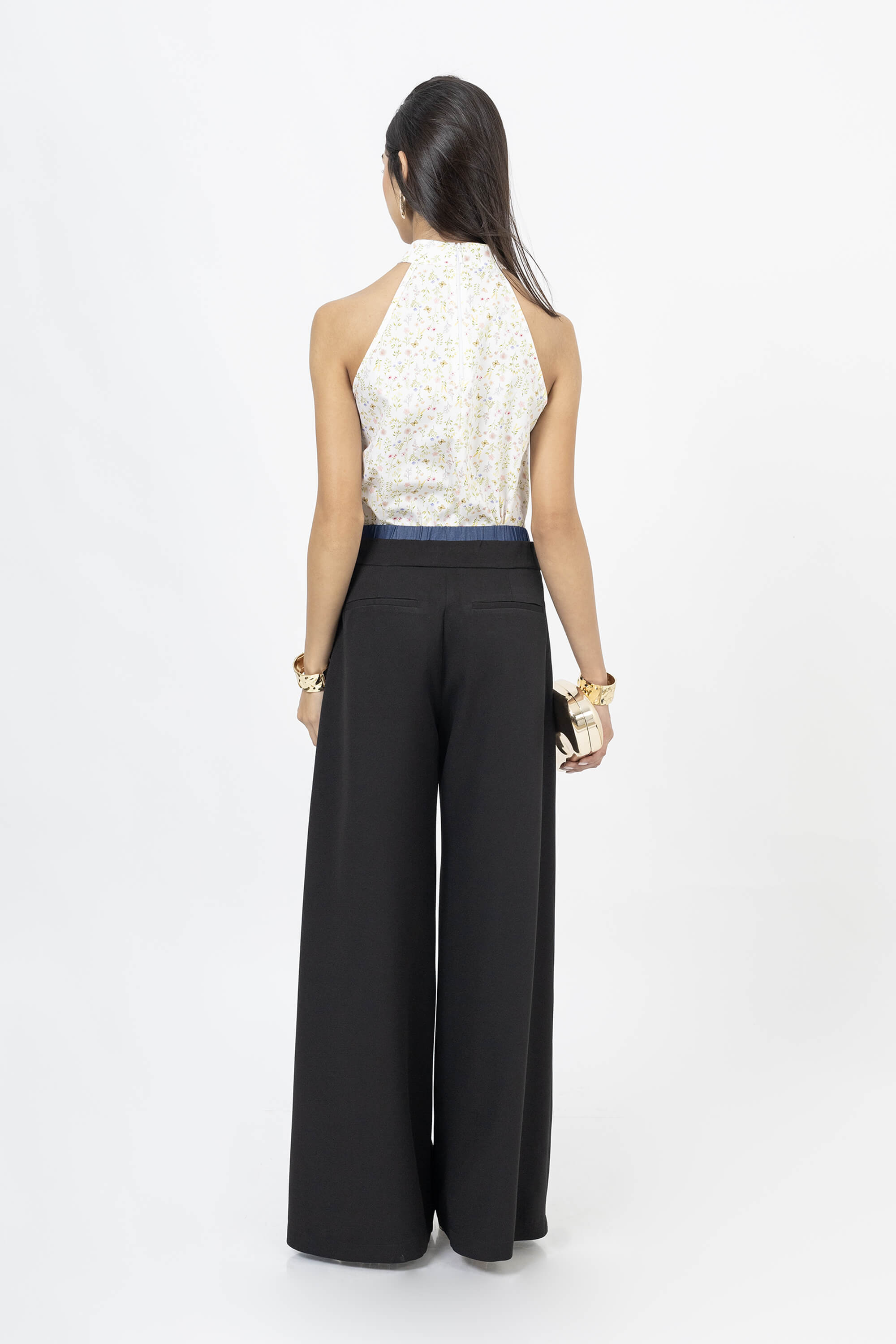 Blusa cuello mao sin mangas y moño al rente