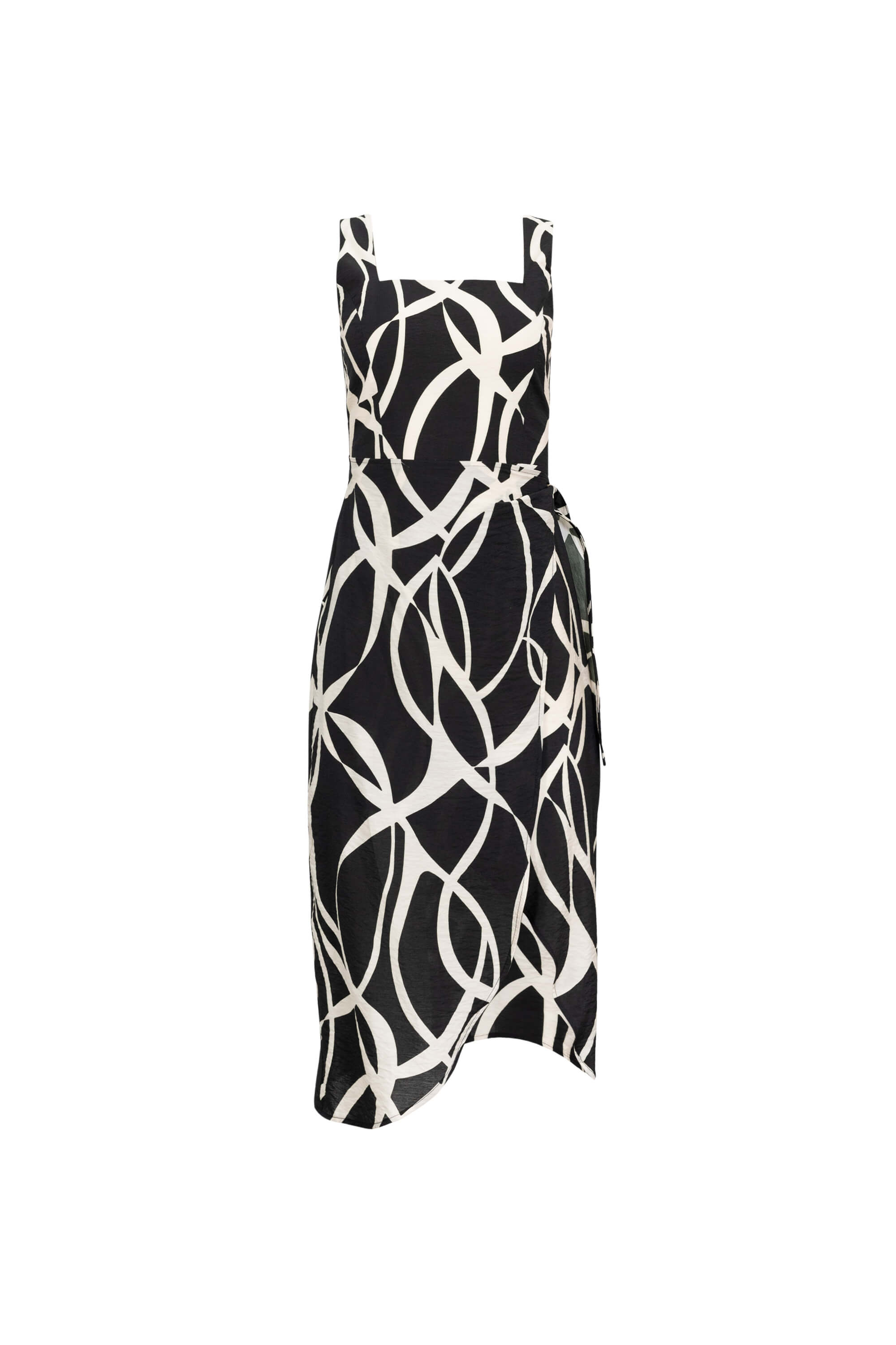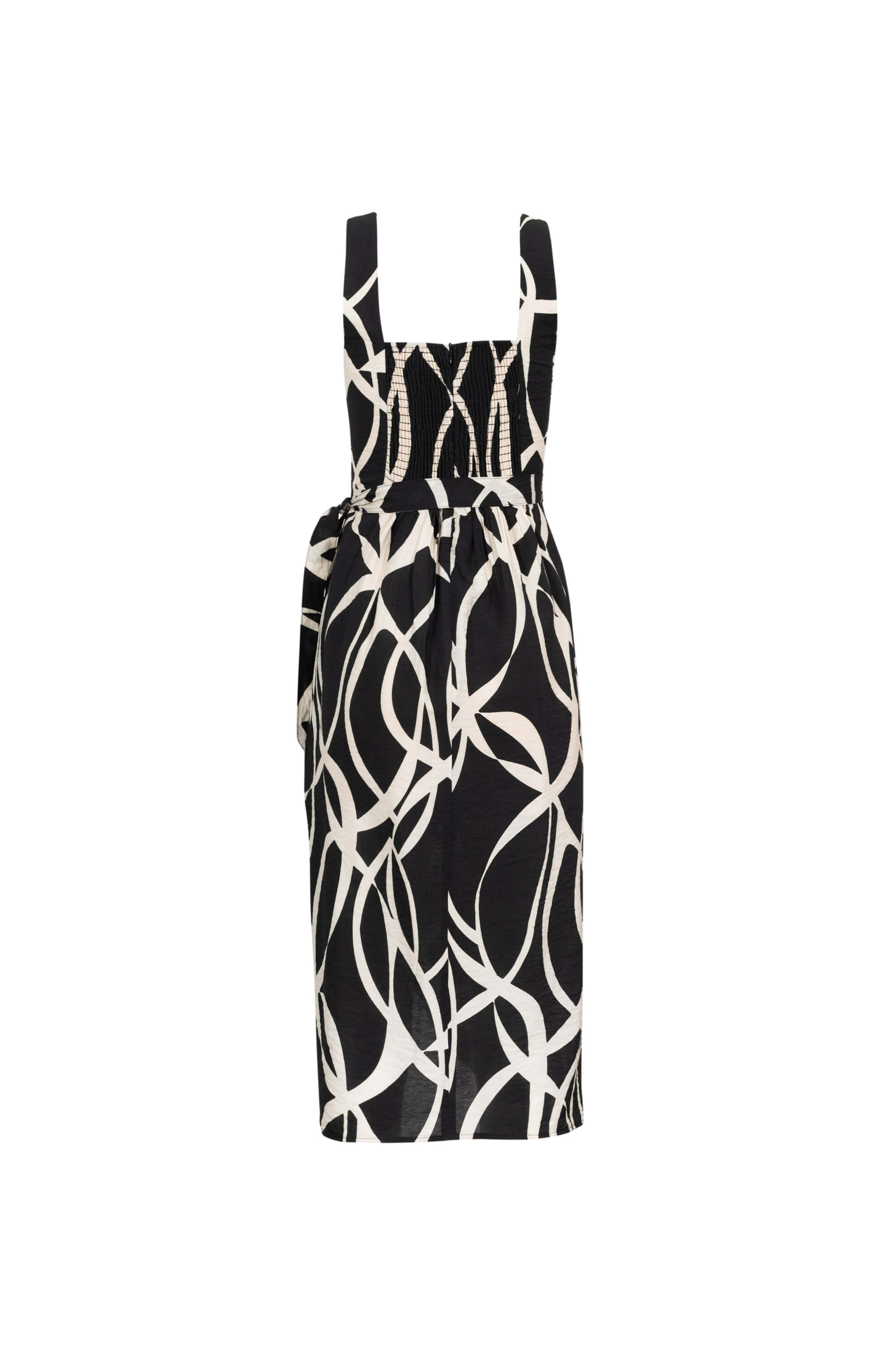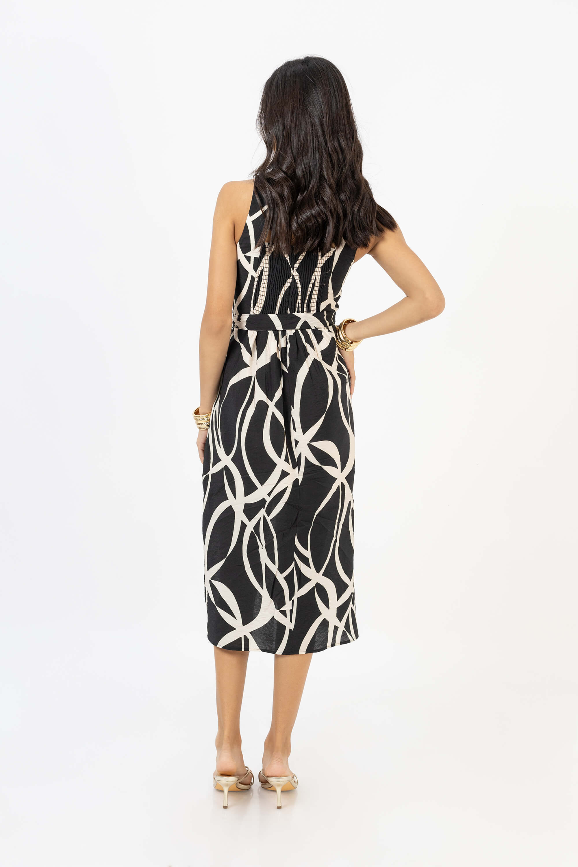 Vestido midi viscosa tirante ancho, escote cuadrado