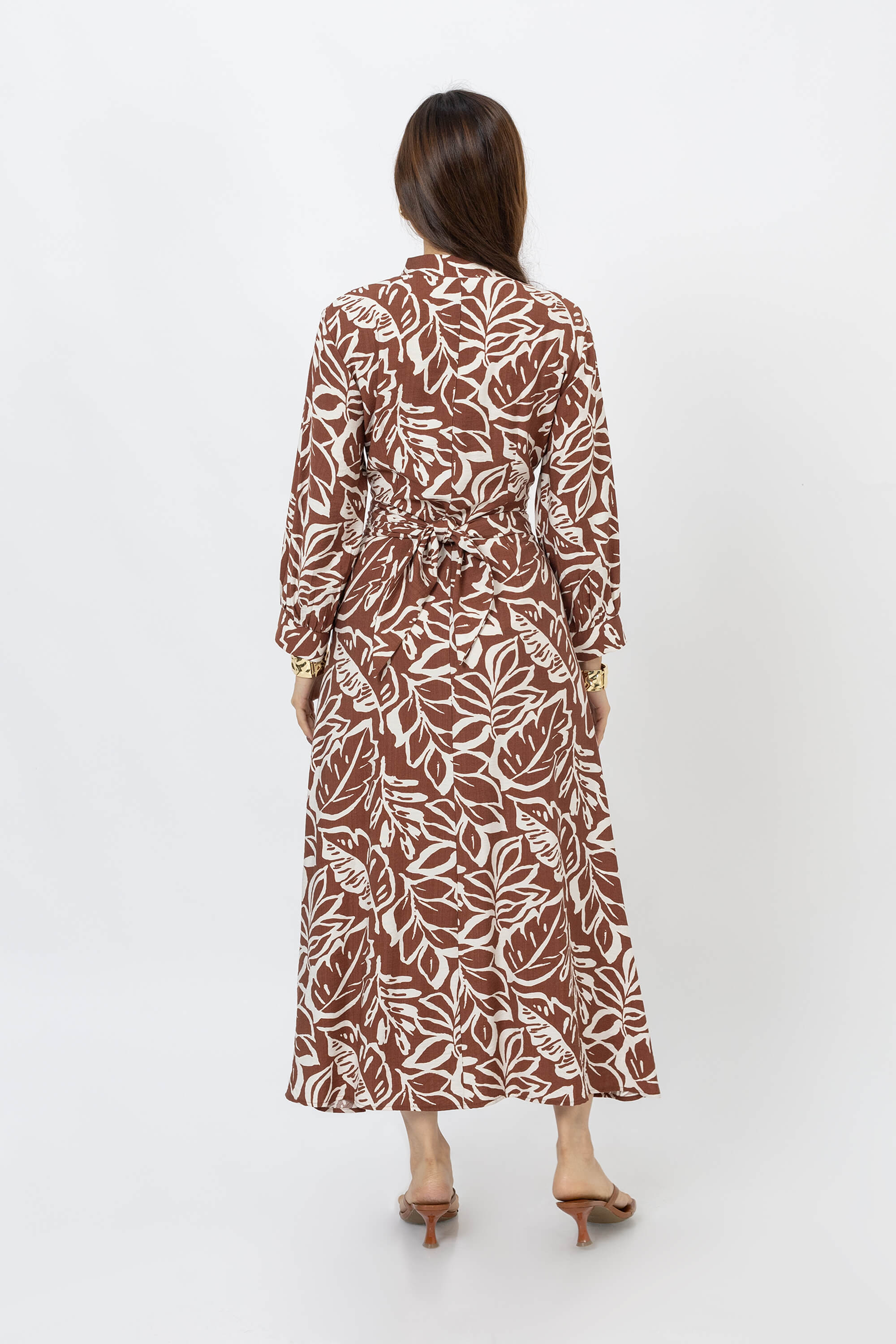 Este vestido combina funcionalidad y elegancia gracias a su diseño con mangas 3/4 y un nudo ajustable en la cintura que acentúa la silueta femenina de manera sutil. Perfecto para transiciones día-noche, eventos casuales o reuniones formales.