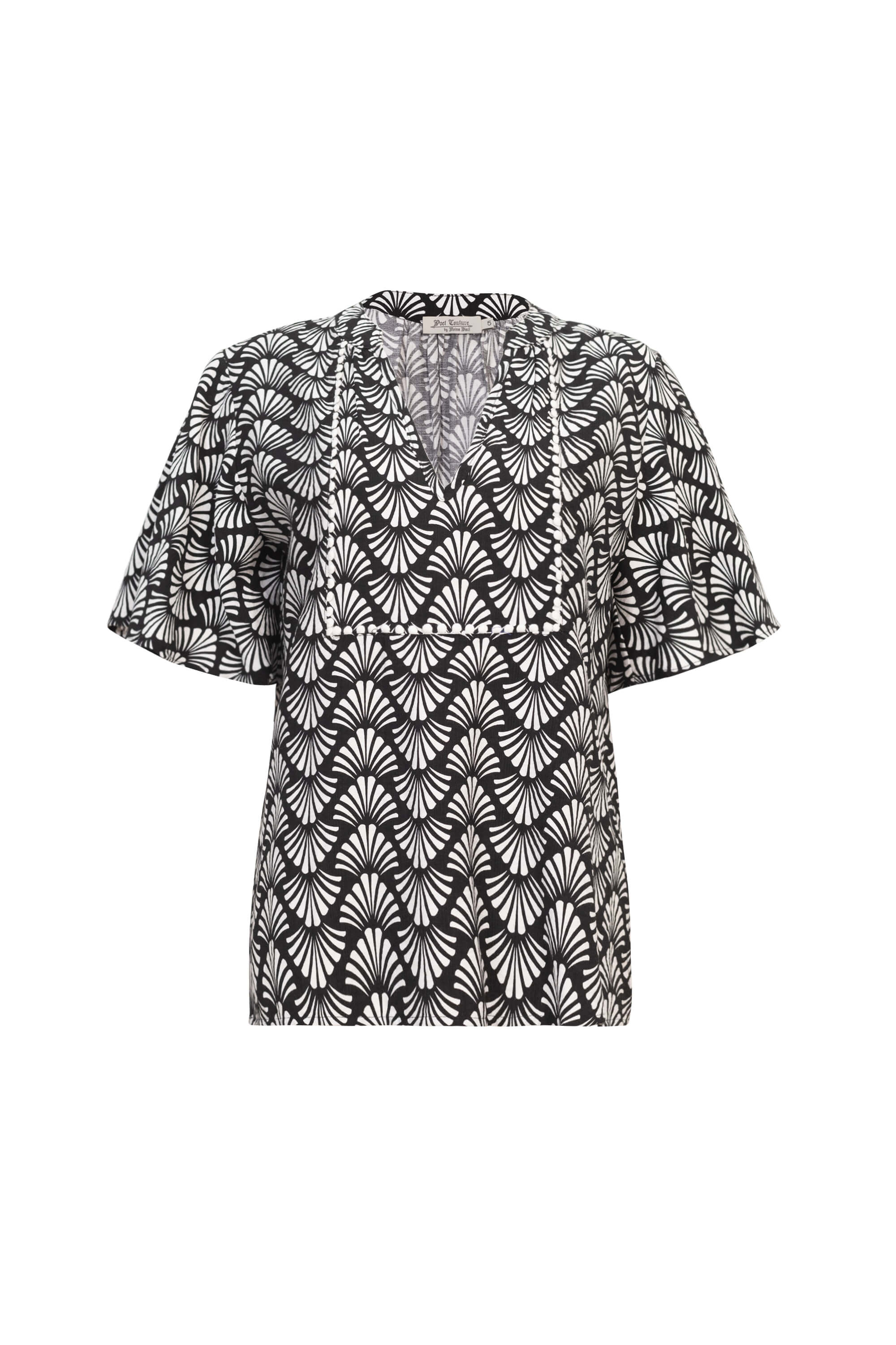 Blusa escote v con avió en bata delantero