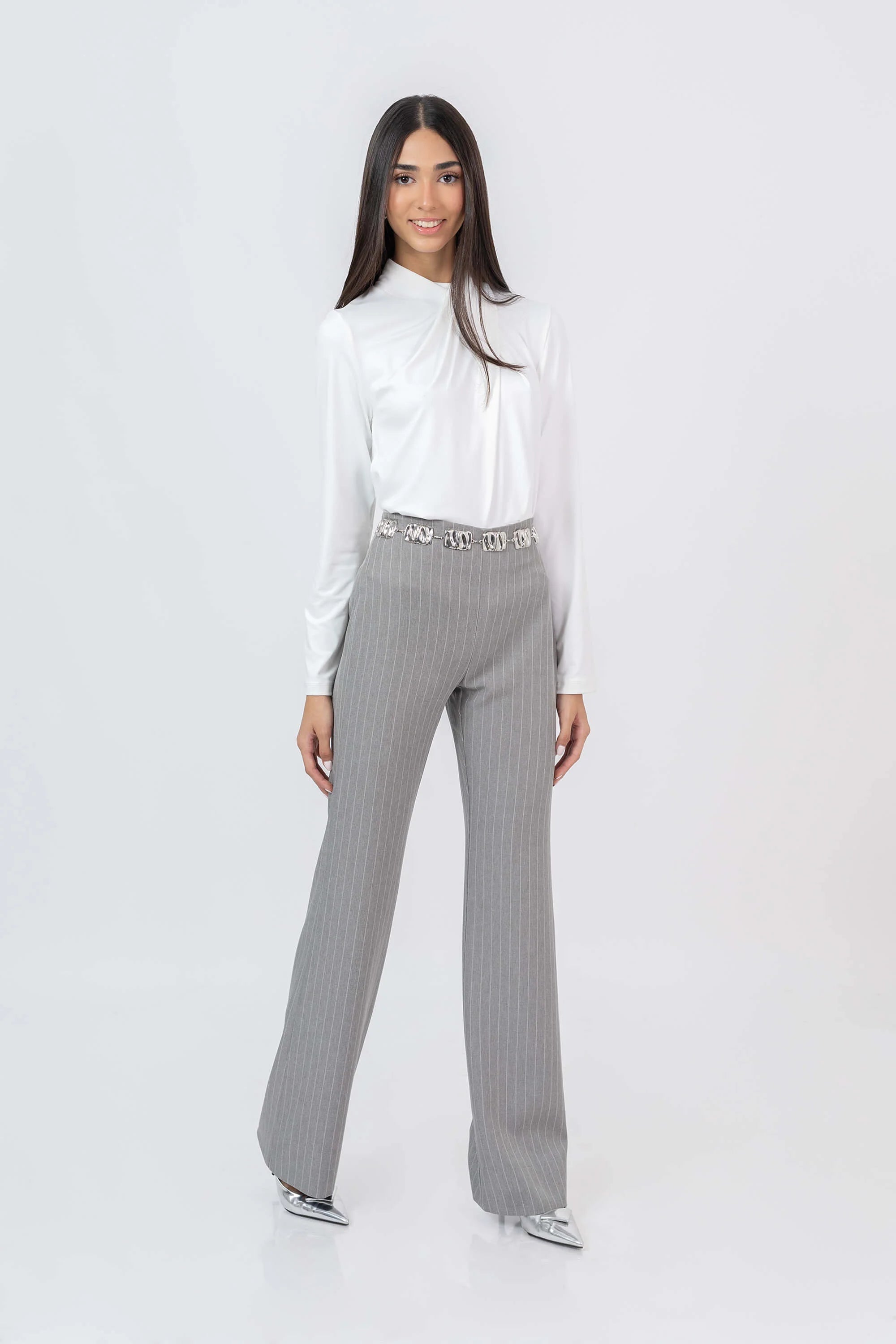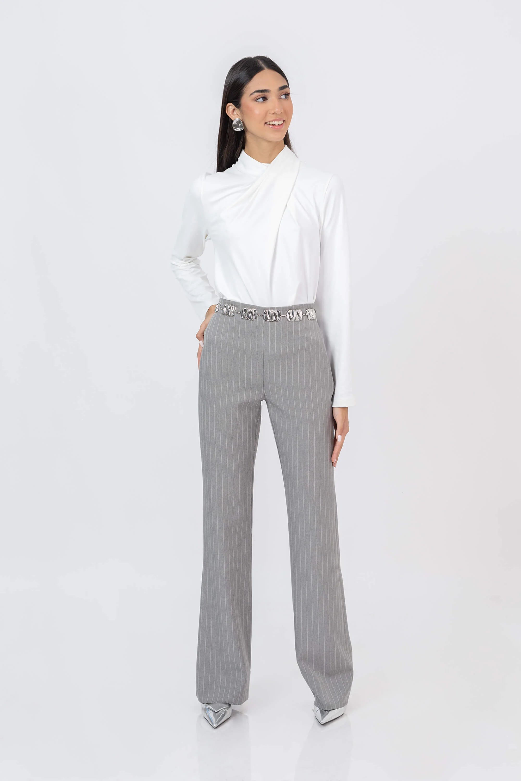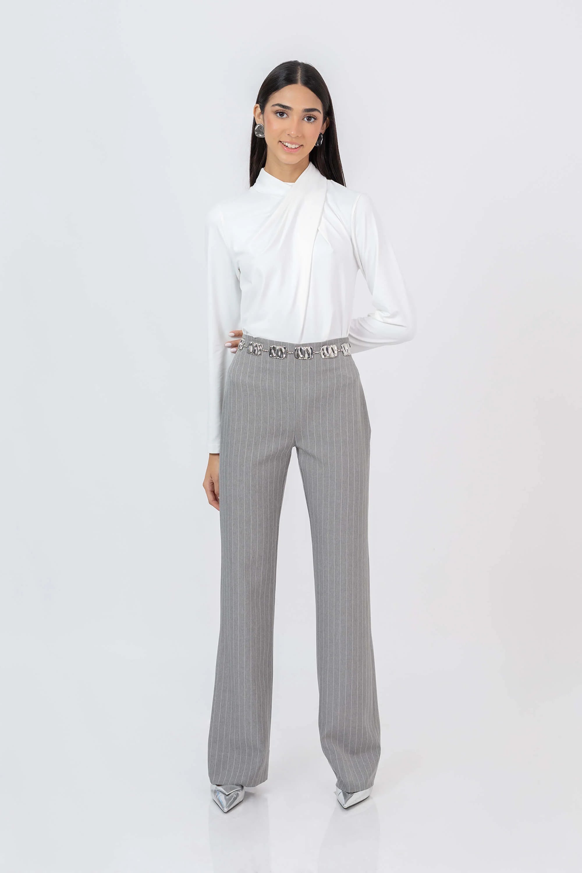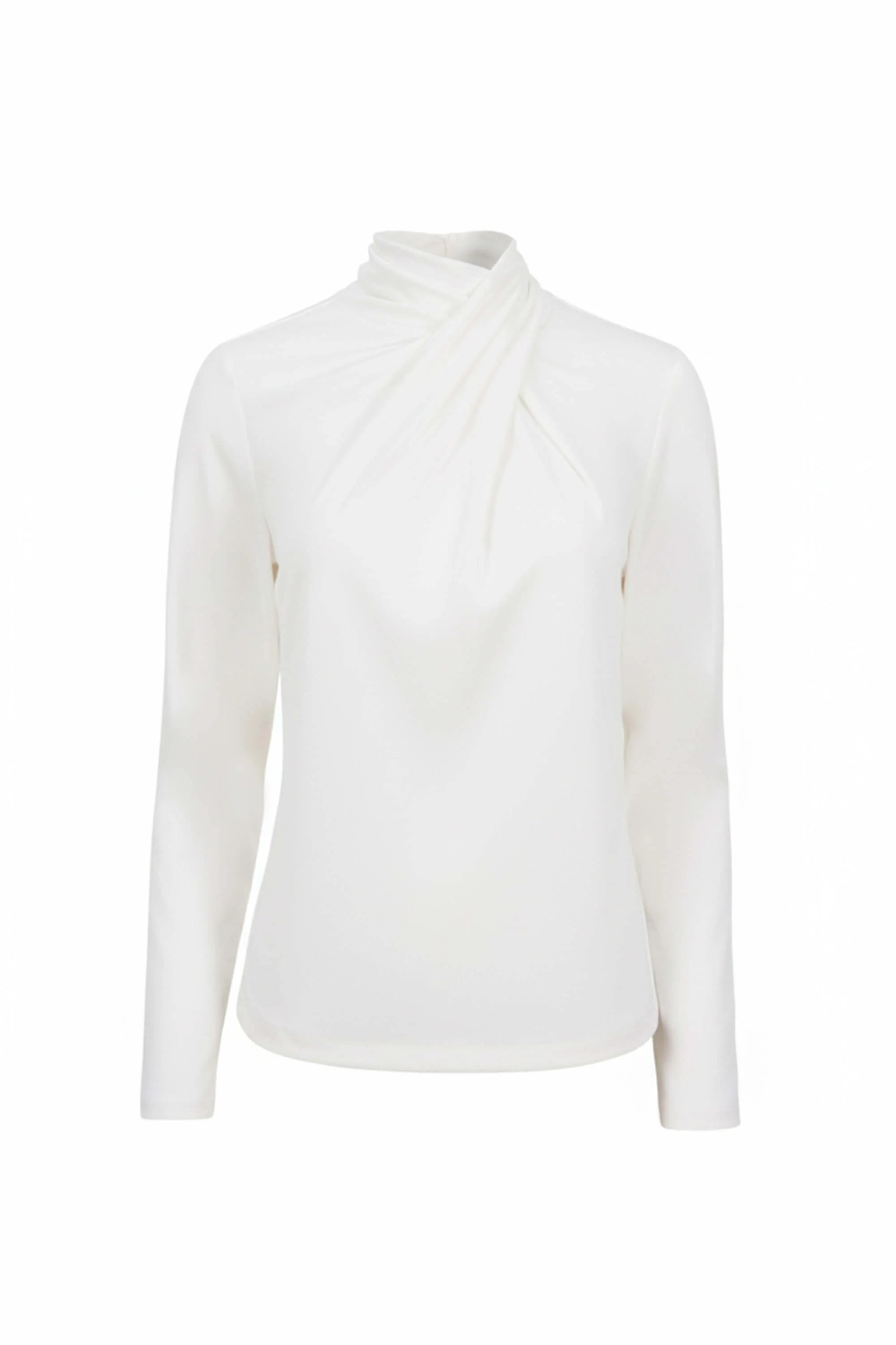 La blusa asimétrica manga larga  redefine la elegancia contemporánea. Su cuello drapeado con caída lateral crea un detalle visual sofisticado que realza la silueta, mientras que el diseño minimalista aporta versatilidad y modernidad.
