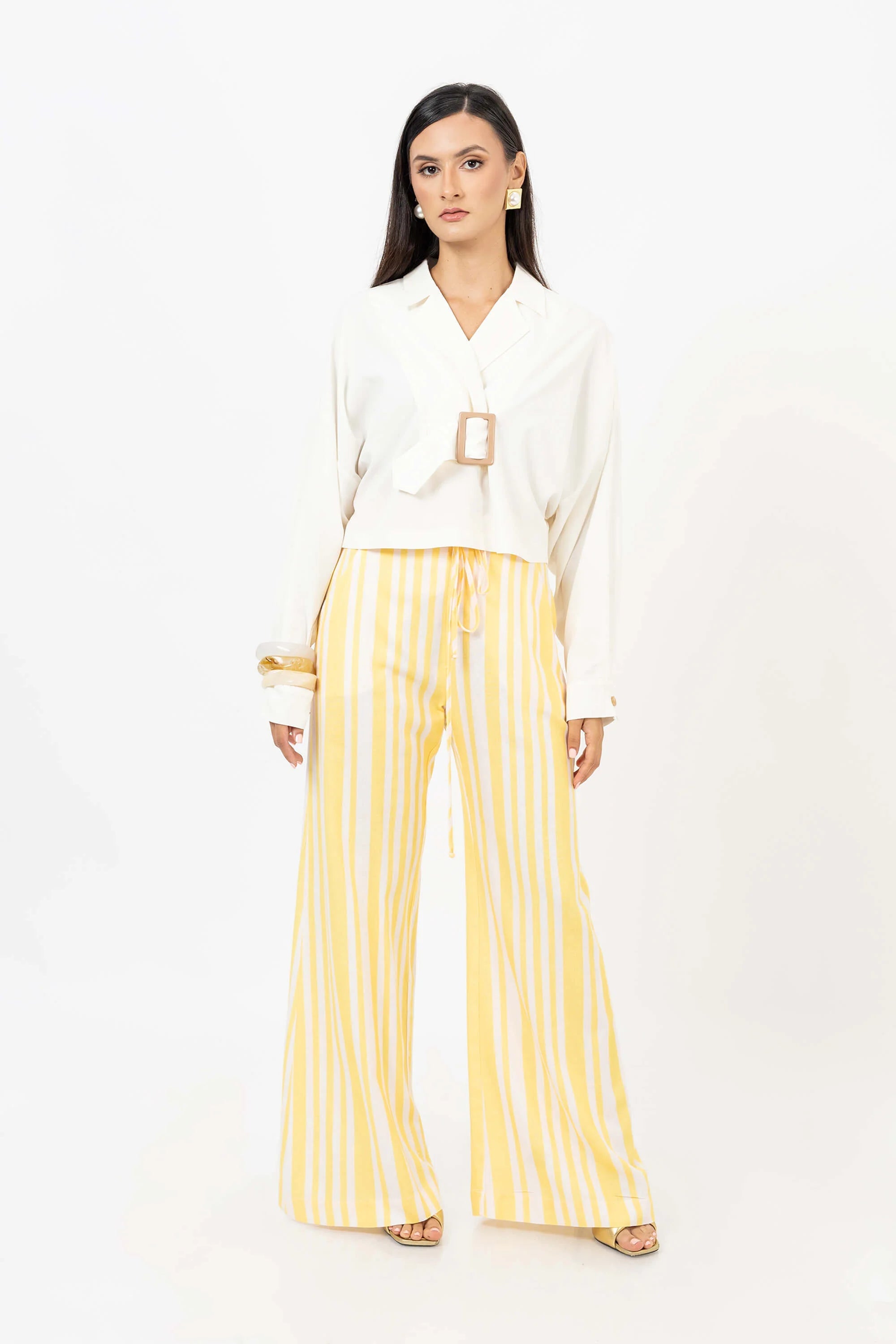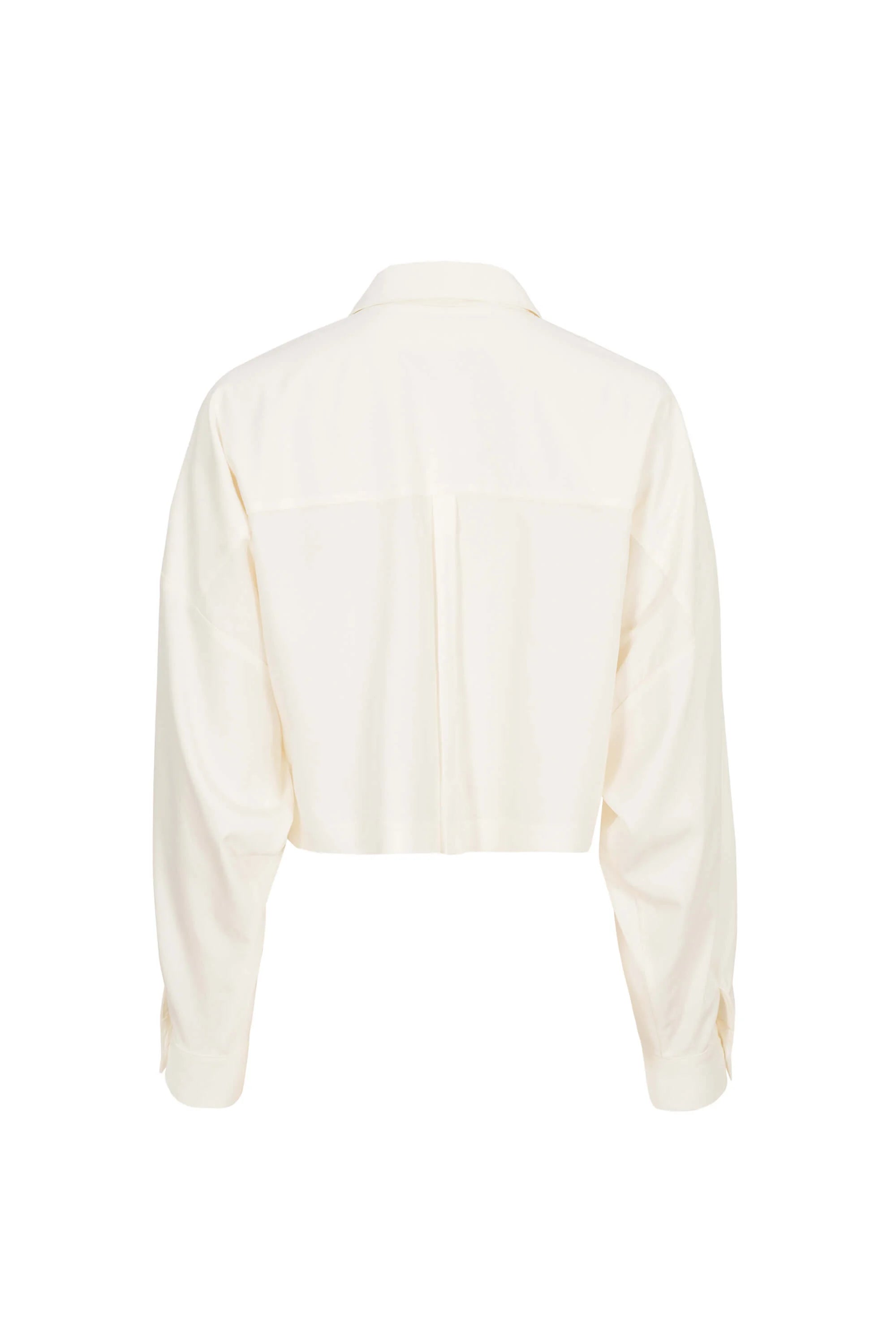 Confeccionada en un tejido ligero y de alta calidad en tono Ivory, esta chaqueta es perfecta para complementar conjuntos de día o noche, añadiendo un toque de sofisticación atemporal.