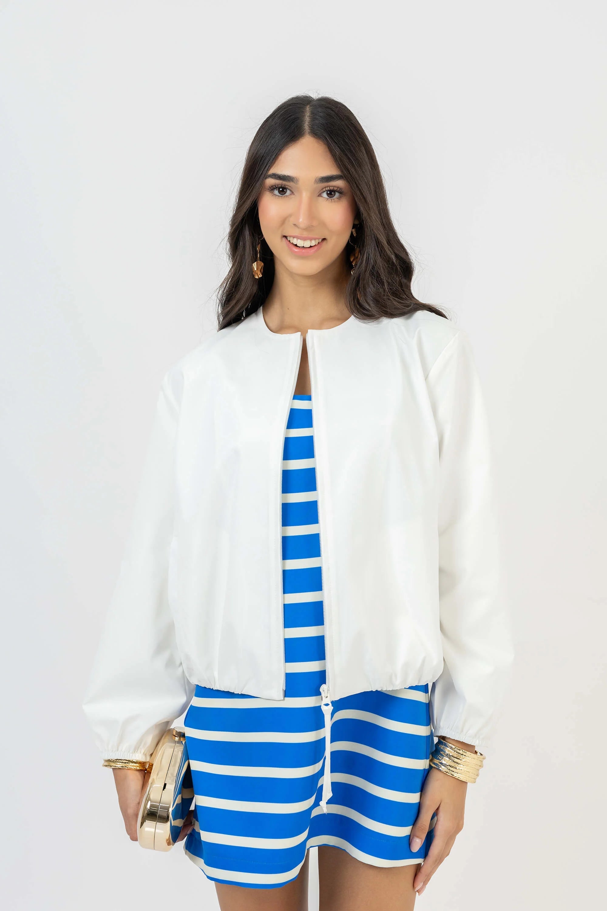 Esta bomber jaquet eleva el estilo clásico con un vibrante color vino y detalles de vivos contrastantes que aportan definición y estructura. Ideal para looks urbanos con actitud.