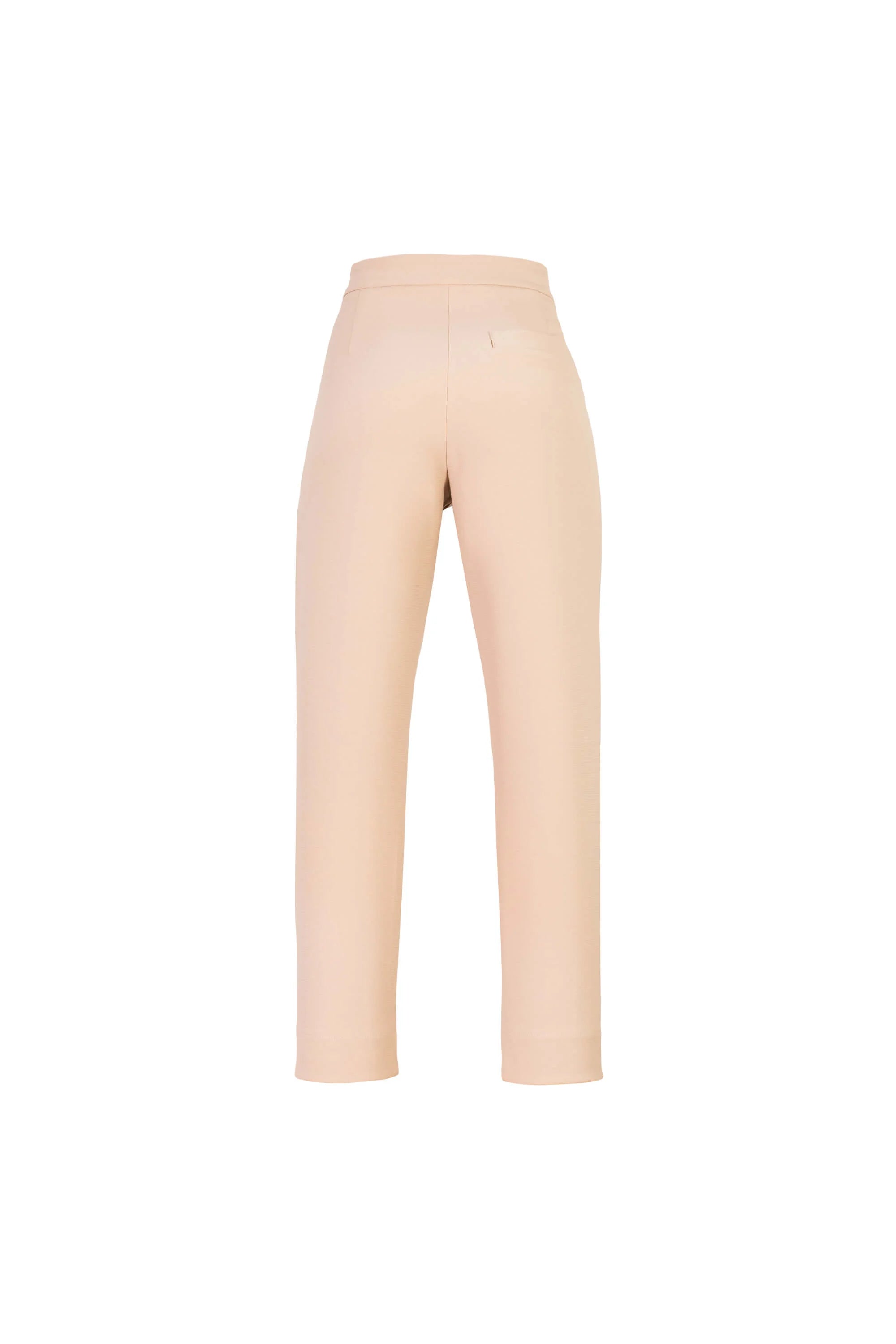 Este pantalón de poliéster combina confort, elegancia y un diseño atemporal. Su corte recto y cintura alta esculpen visualmente la figura y alargan las piernas, mientras que la textura del tejido aporta estructura sin sacrificar flexibilidad.