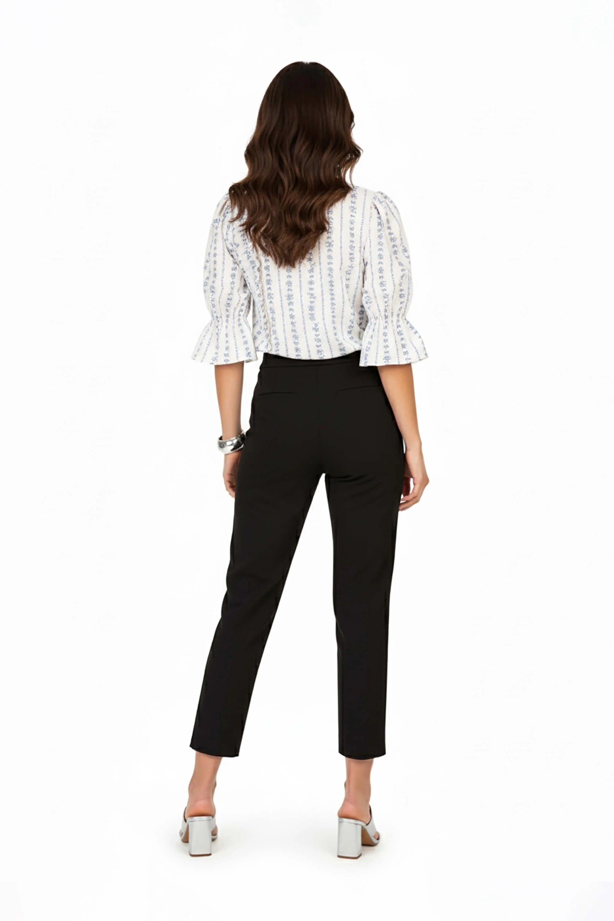 Perfecta para combinar con jeans blancos, faldas fluidas o pantalones de lino. Cada detalle, desde el acabado delicado del cuello redondo hasta el sutil fruncido en las mangas, resalta el trabajo artesanal.