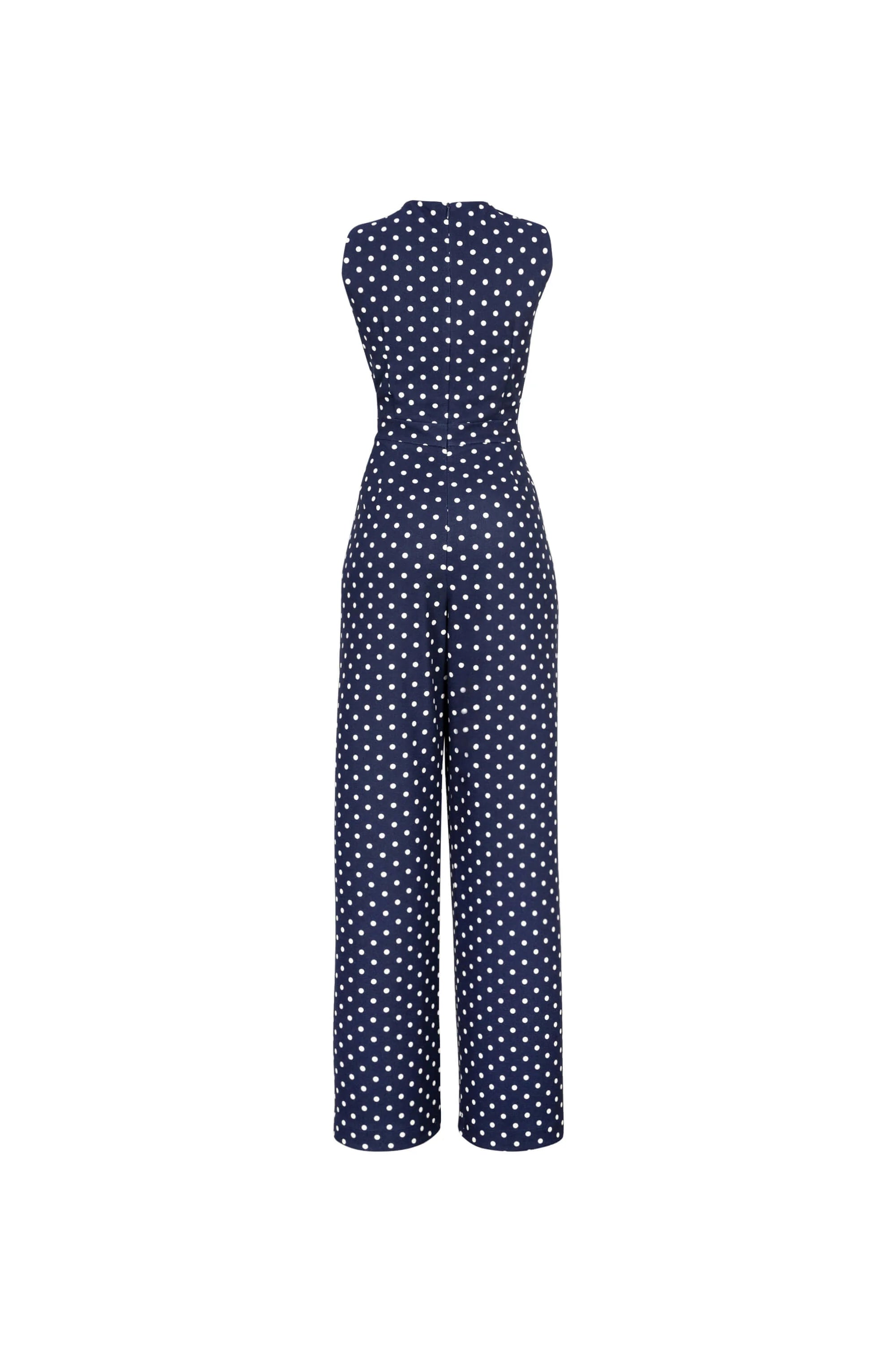 Pantsuit sin mangas con estampado floral en blanco y azul marino.