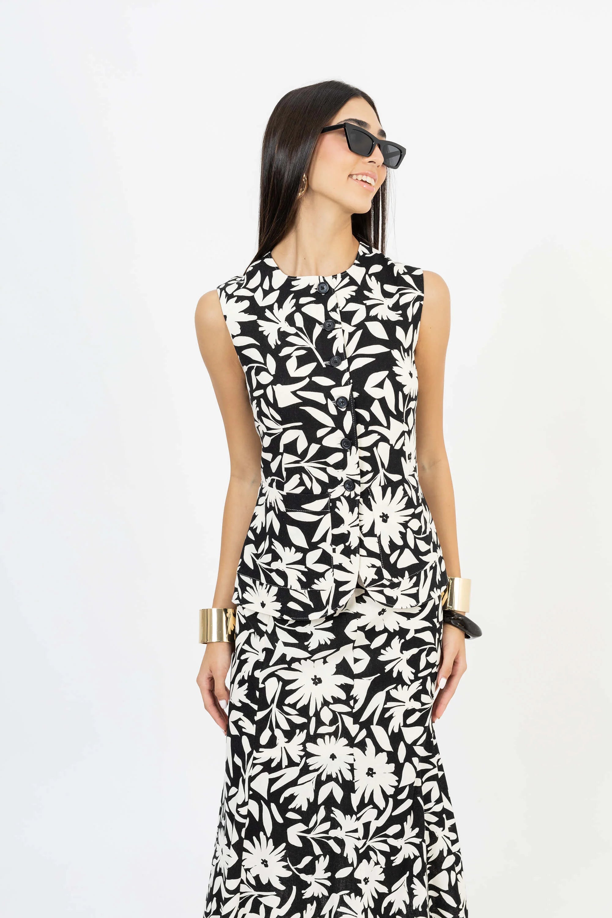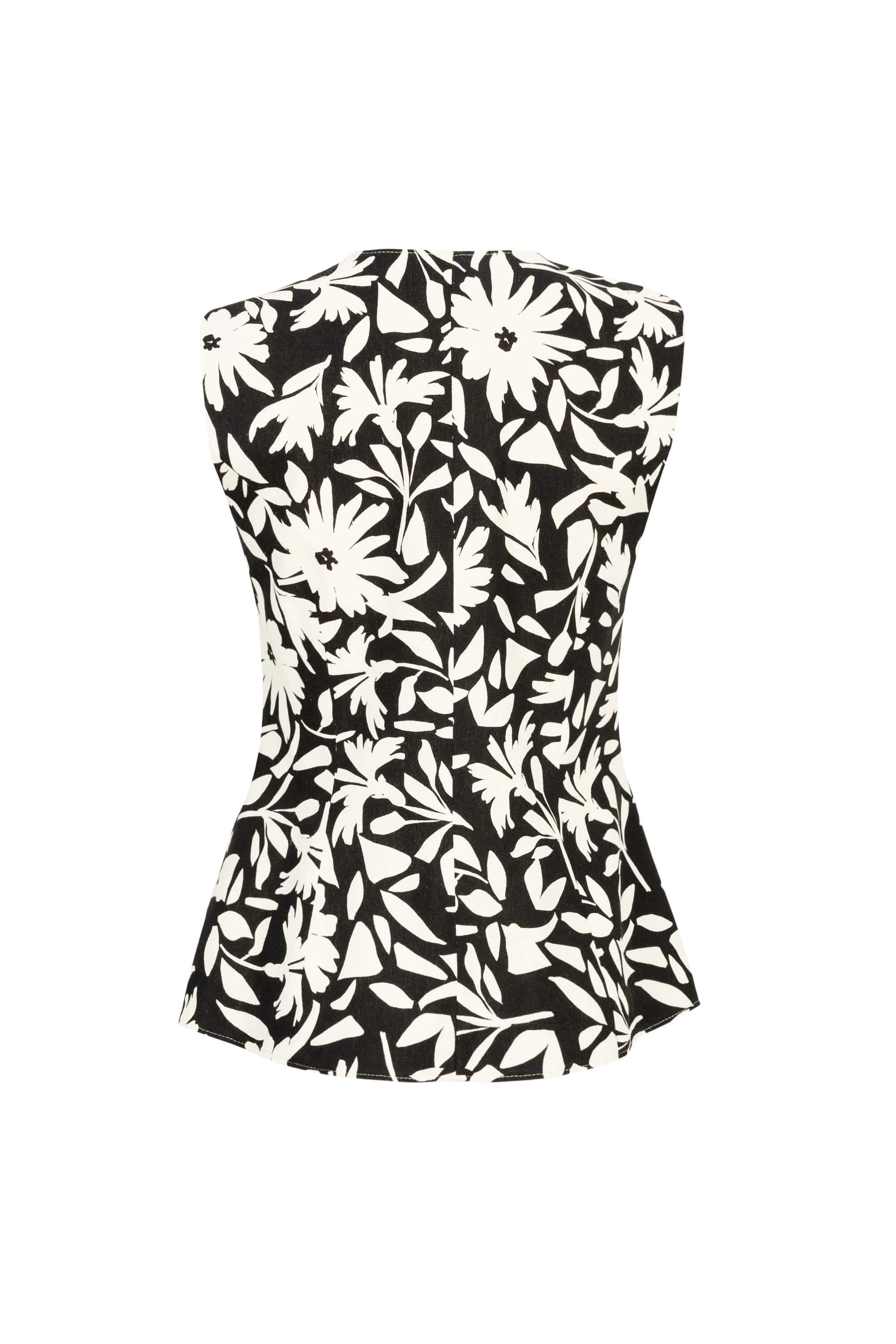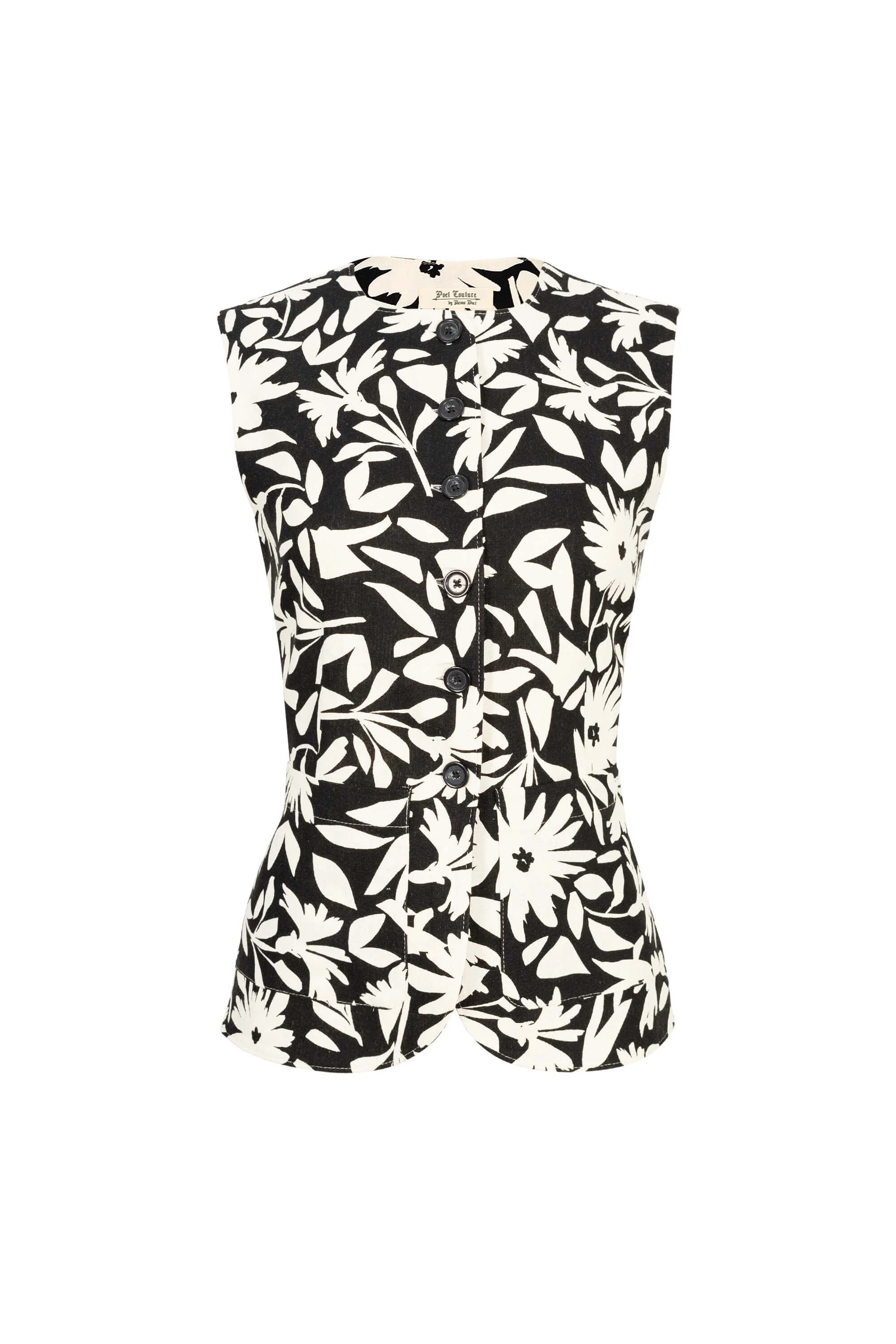 Con un corte entallado que estiliza la figura y un estampado floral de inspiración botánica, esta prenda eleva cualquier look con un toque de elegancia natural. Ideal para llevar sobre blusas ligeras, vestidos o incluso como pieza central, este diseño sin mangas aporta versatilidad sin sacrificar estilo.