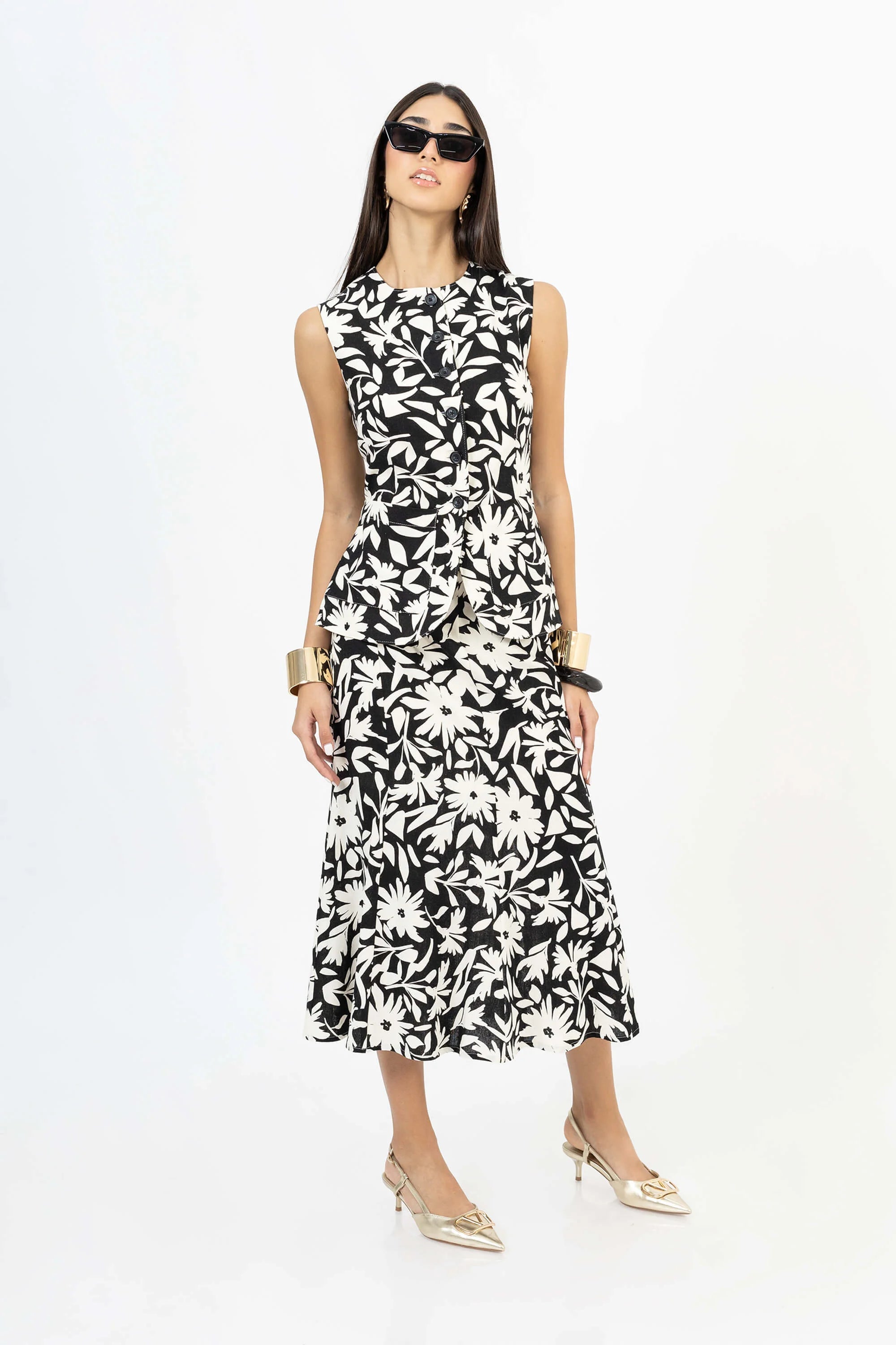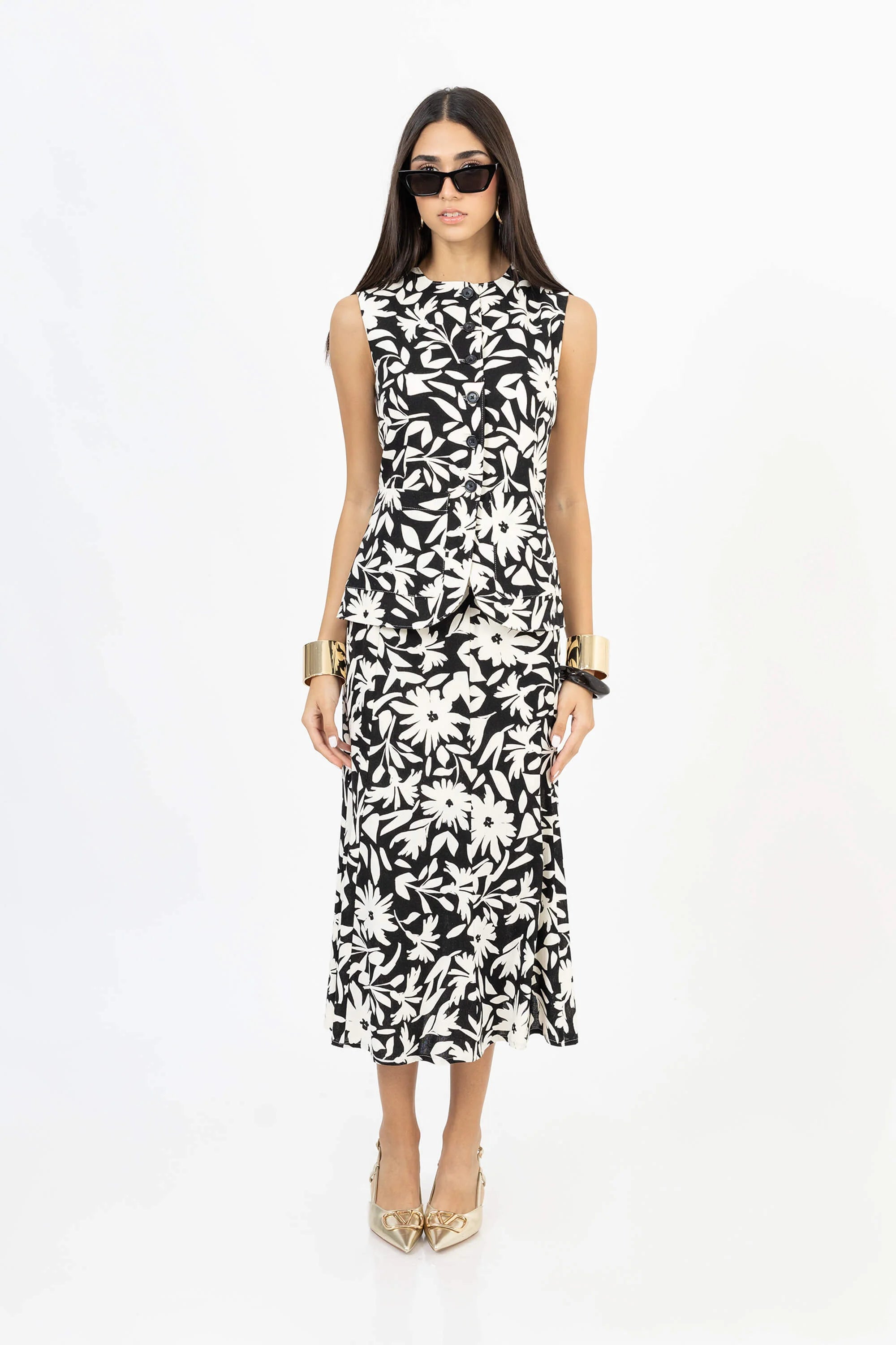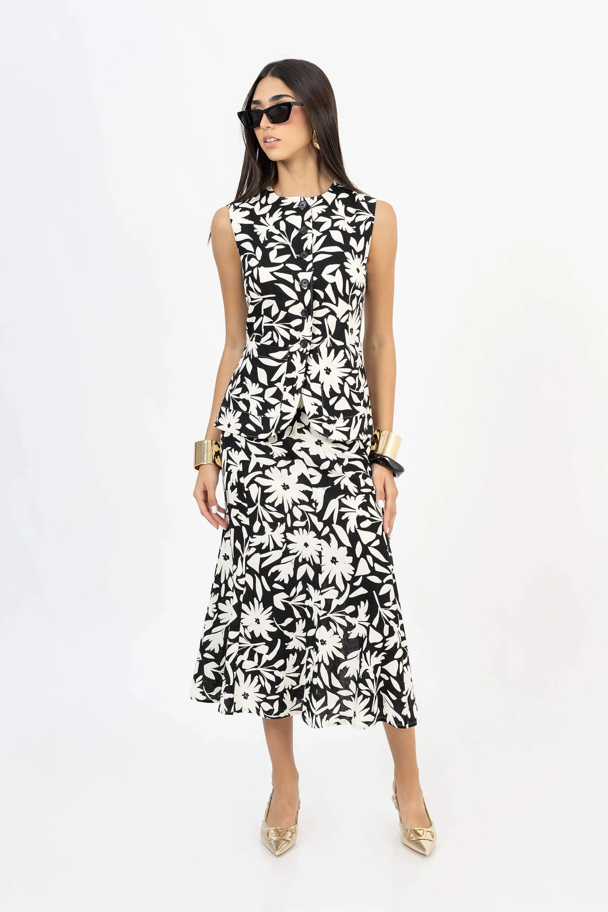 Con un corte entallado que estiliza la figura y un estampado floral de inspiración botánica, esta prenda eleva cualquier look con un toque de elegancia natural. Ideal para llevar sobre blusas ligeras, vestidos o incluso como pieza central, este diseño sin mangas aporta versatilidad sin sacrificar estilo.