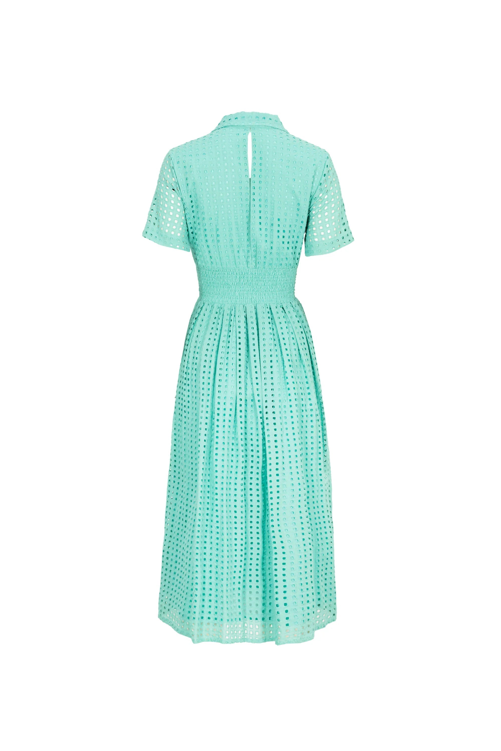 La manga ranglan aporta movimiento y un toque contemporáneo, mientras que el estampado en tonos azules evoca frescura y un espíritu costero chic.