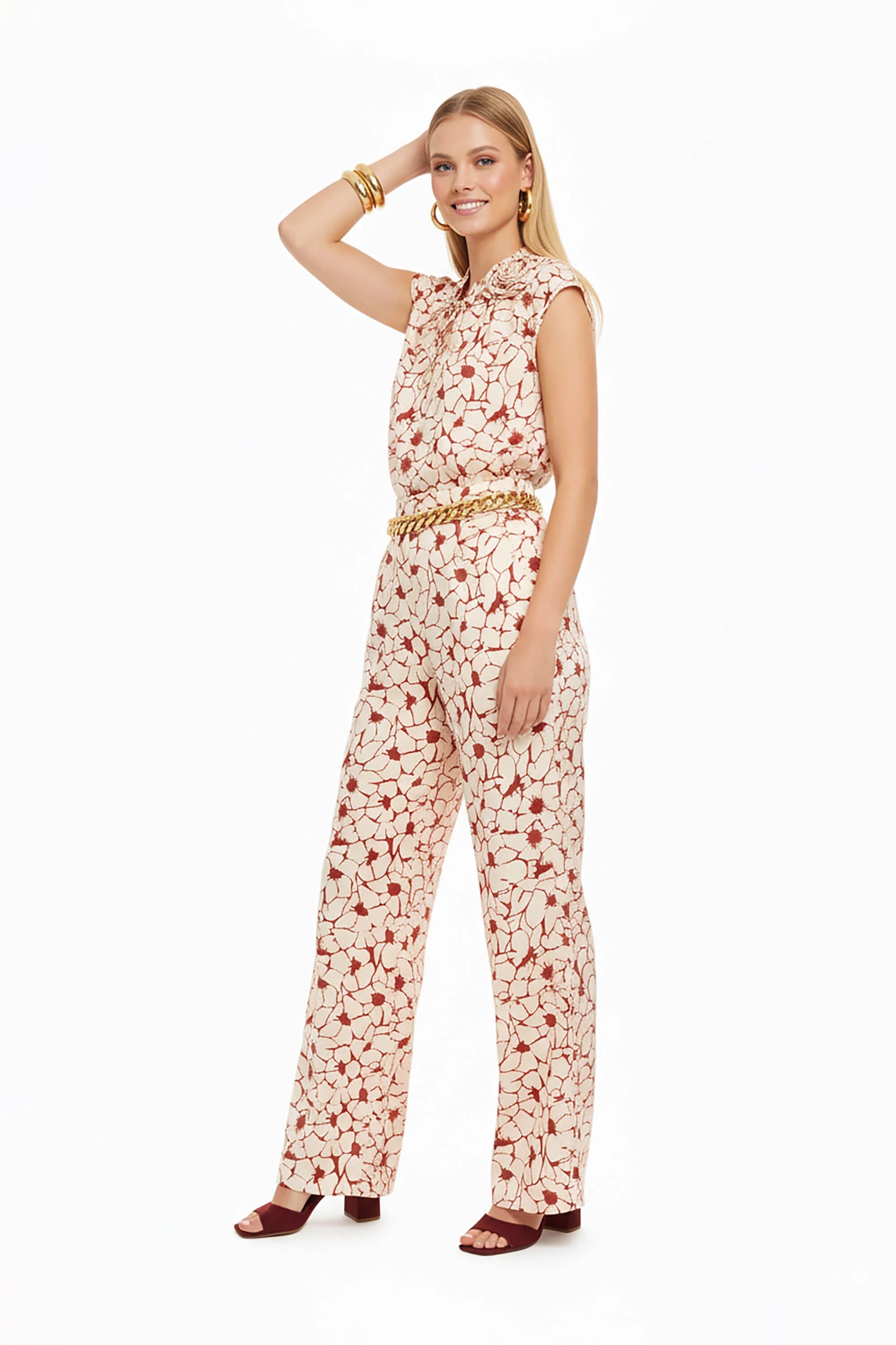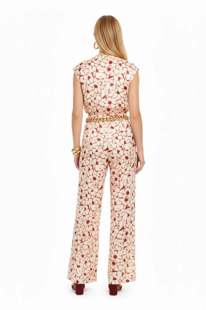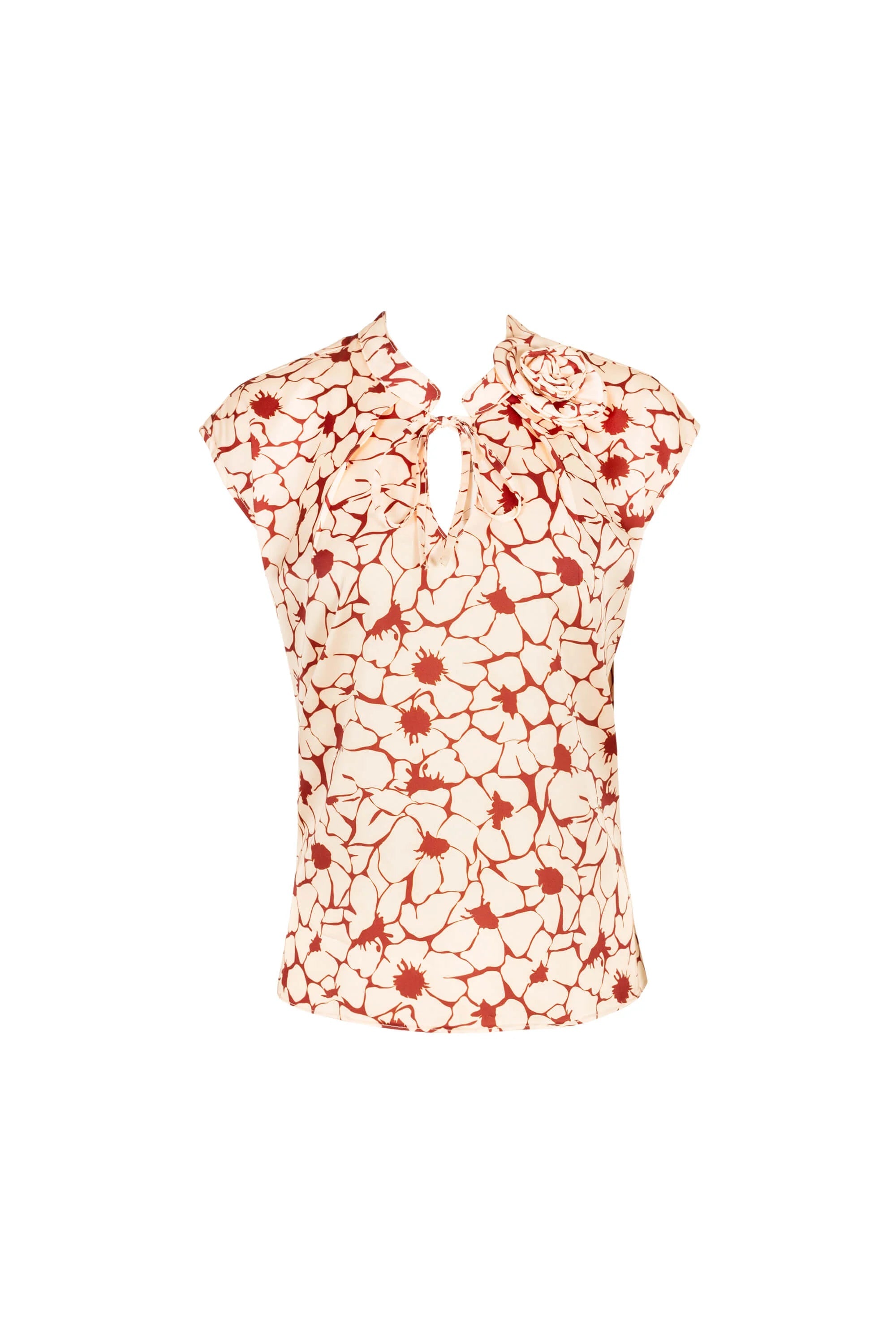 Blusa sin mangas con pliegues en delantero y estampado floral tinto con coral.