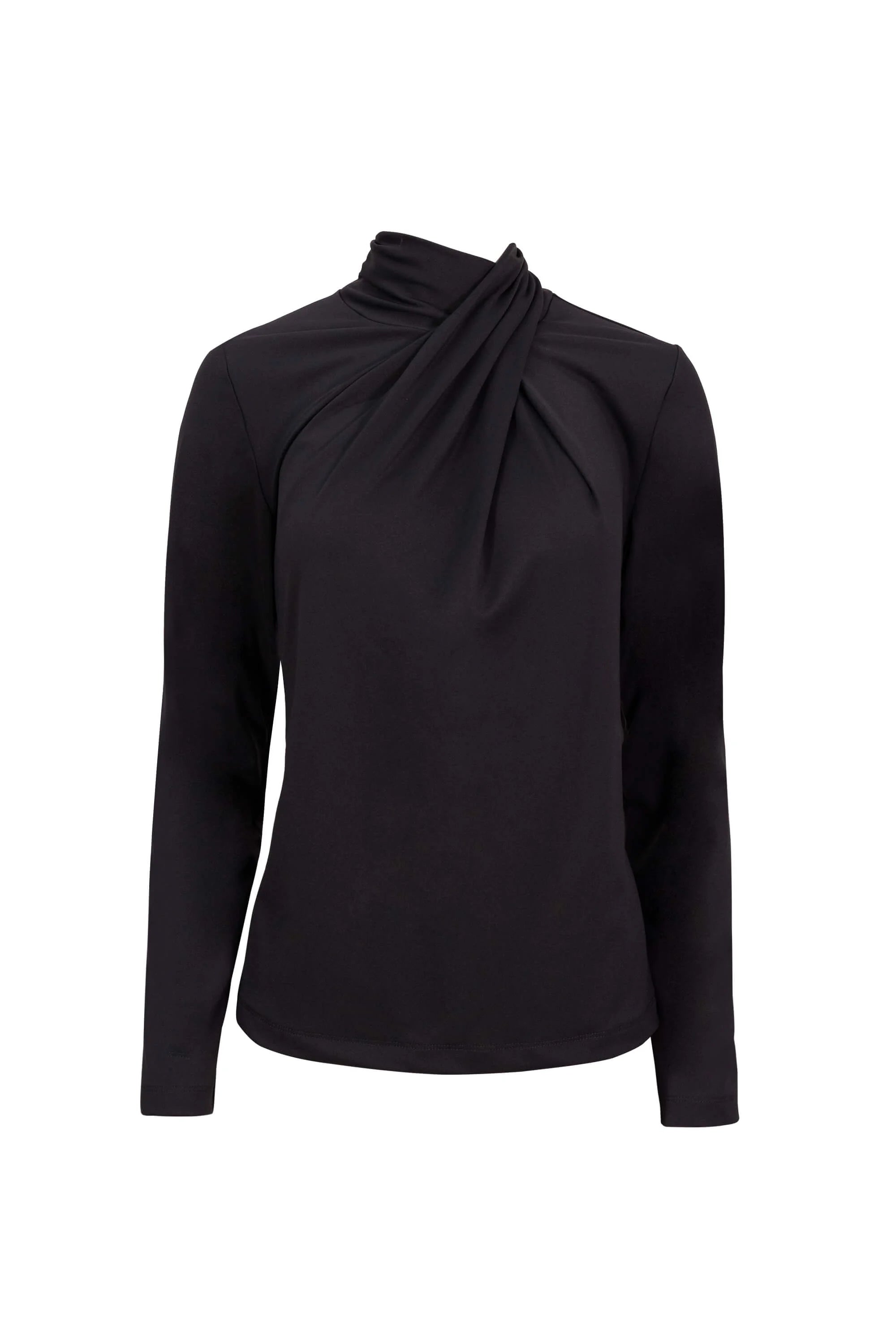 La blusa asimétrica manga larga redefine la elegancia contemporánea. Su cuello drapeado con caída lateral crea un detalle visual sofisticado que realza la silueta, mientras que el diseño minimalista aporta versatilidad y modernidad.