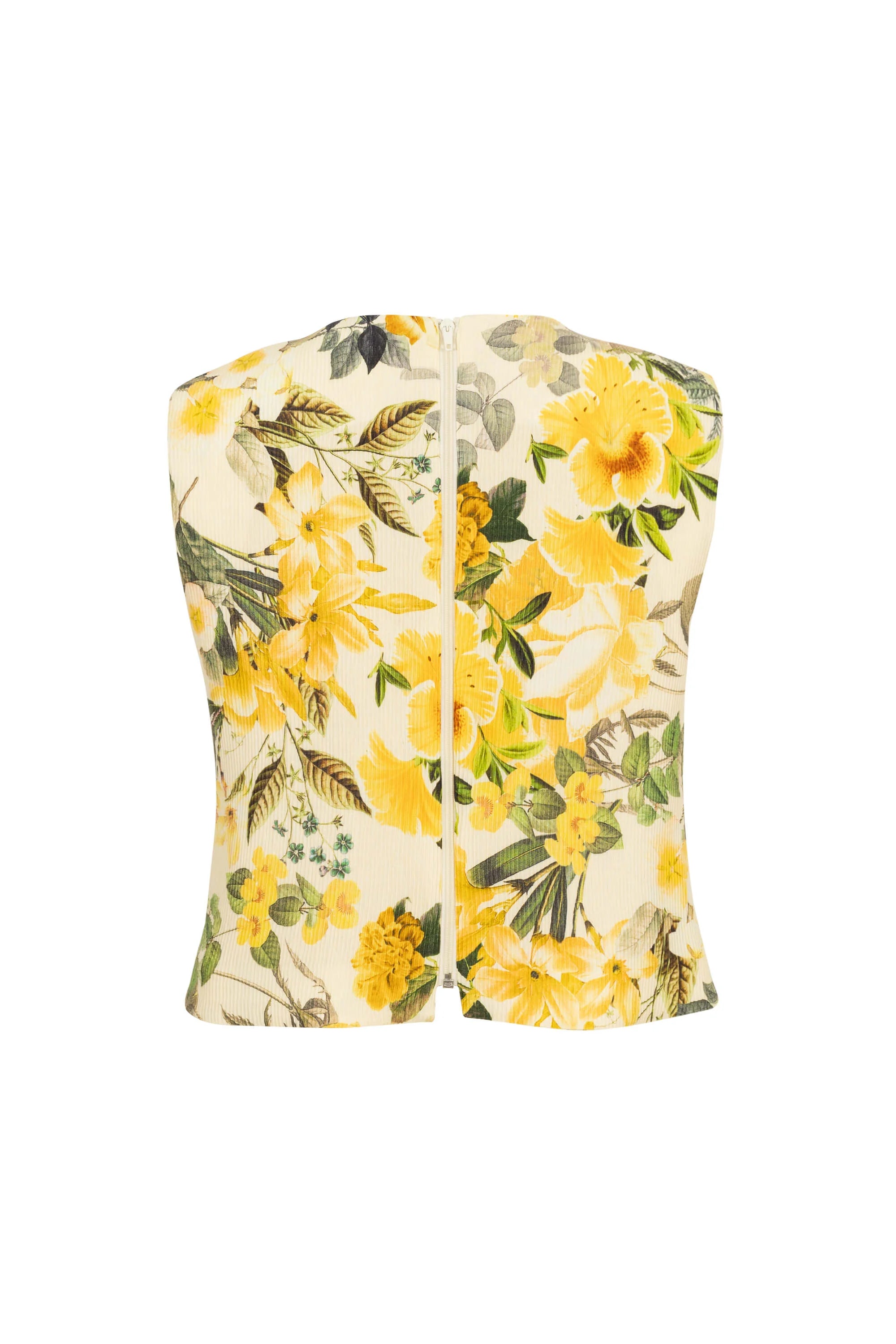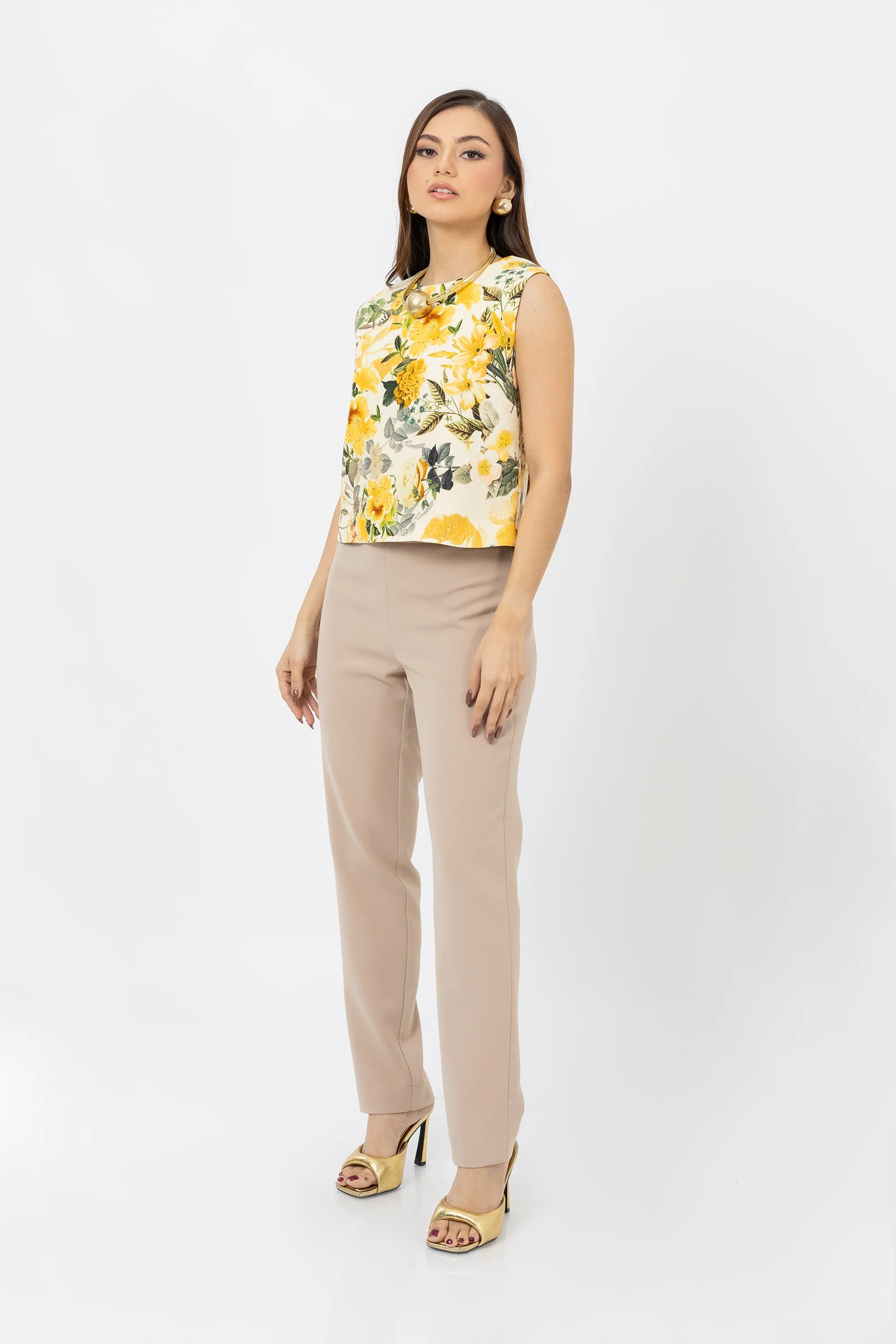 Blusa sin mangas con diseño fresco y alegre. Presenta escote redondo y confección en tela ligera con estampado floral que cubre toda la prenda, aportando dinamismo y un aire veraniego. El patrón de flores y hojas en tonos vibrantes crea un estilo llamativo y femenino, ideal para climas cálidos y looks casuales. Su corte sencillo permite combinarla fácilmente con faldas, pantalones o shorts, adaptándose a distintos estilos.