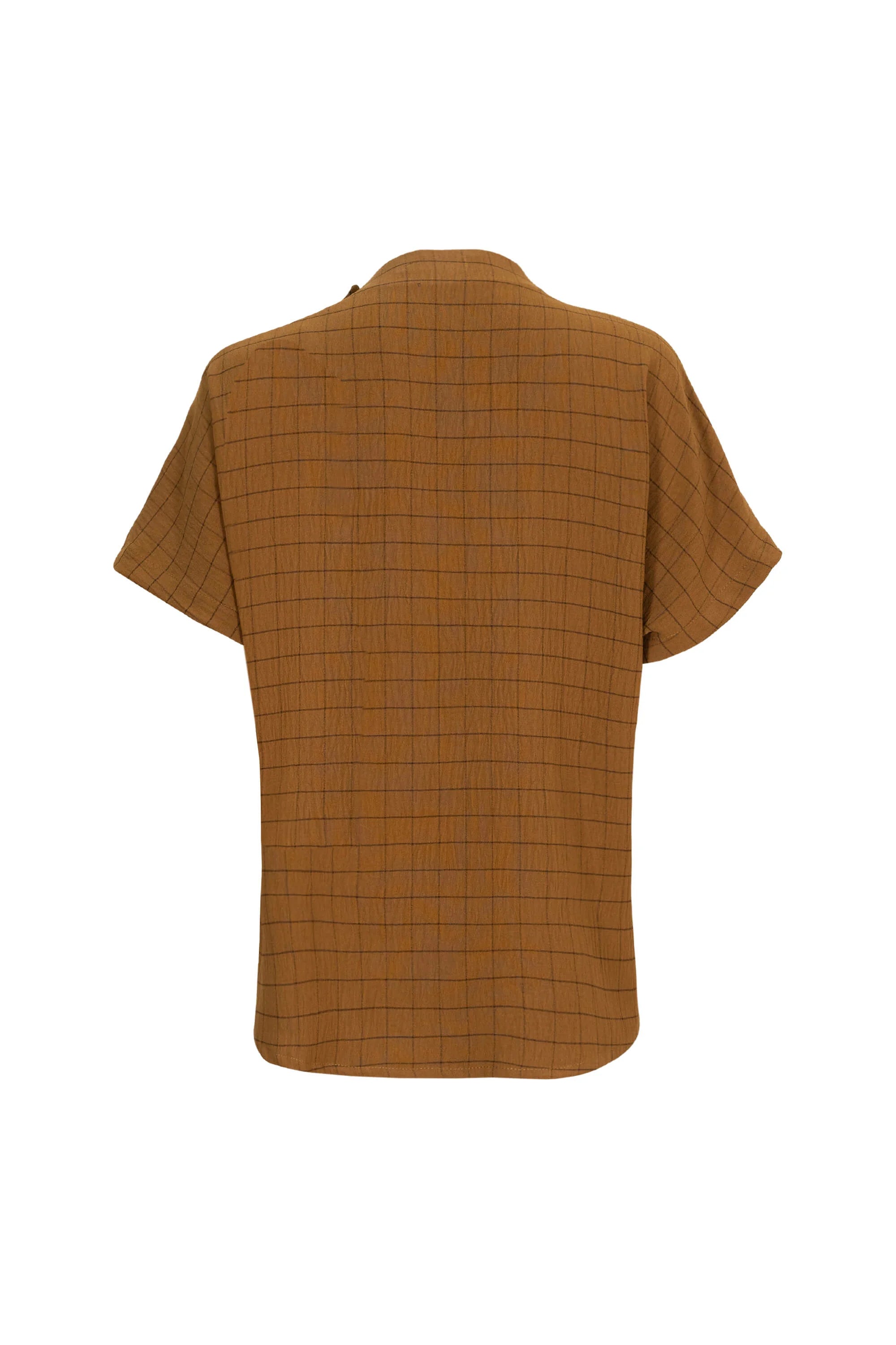 La blusa con cuello chimenea y manga pasada de Poet Couture combina diseño minimalista y sofisticación relajada. Su silueta ligera, ideal para fajar, realza la figura y aporta un aire refinado y versátil. Perfecta para looks de oficina o conjuntos casuales con elegancia natural.