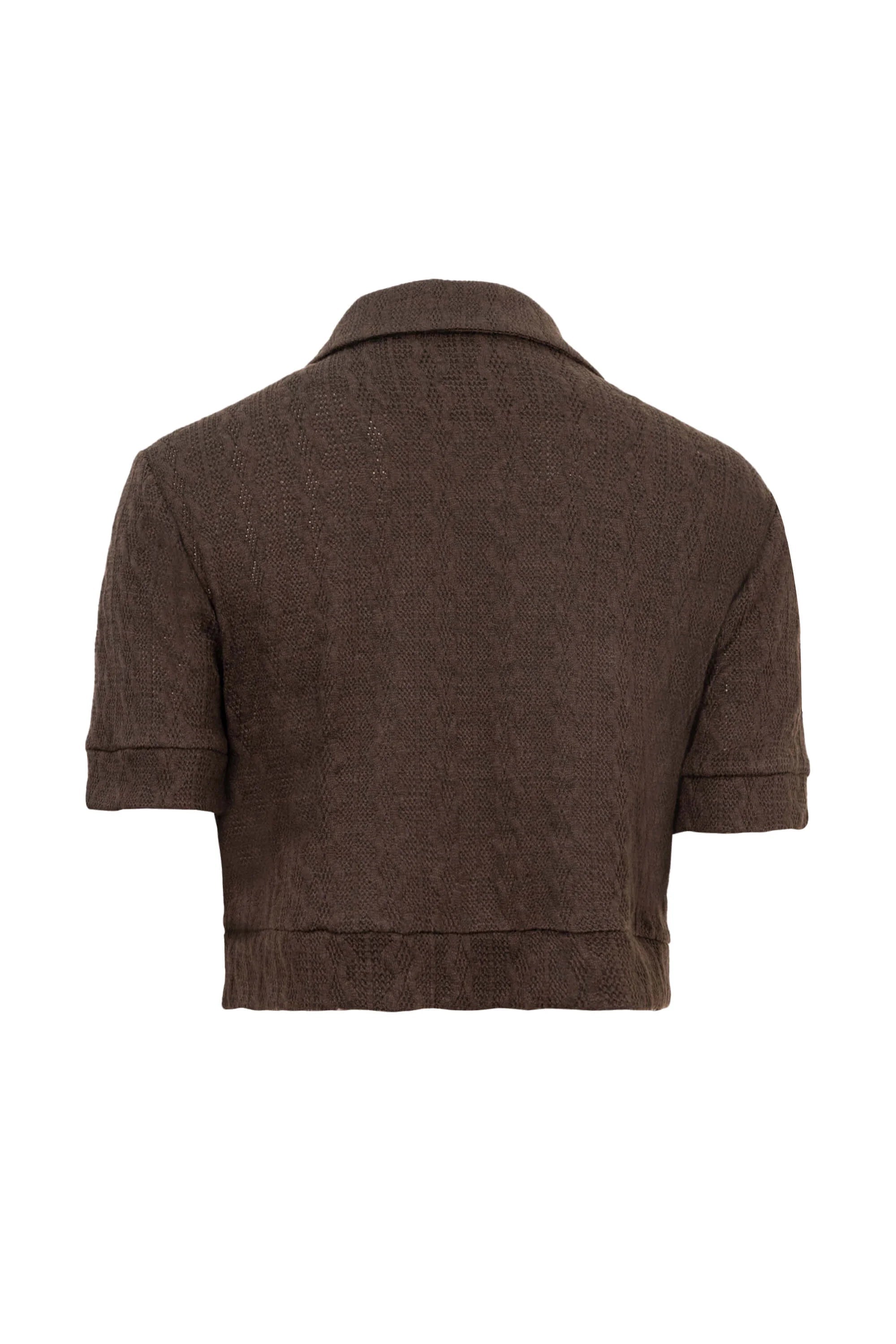 La chamarra corta de Poet Couture combina una silueta estructurada con un aire suave y contemporáneo. Su diseño de manga corta y corte a la cintura aporta ligereza visual, mientras que el cuello clásico y los botones frontales añaden un toque refinado y femenino. De textura sutil y presencia equilibrada, es ideal para elevar outfits relajados de día o complementar conjuntos monocromáticos con elegancia discreta. Una pieza versátil que refleja la esencia urbana y sofisticada de Poet Couture, pensada para acompañar con naturalidad distintas ocasiones.
