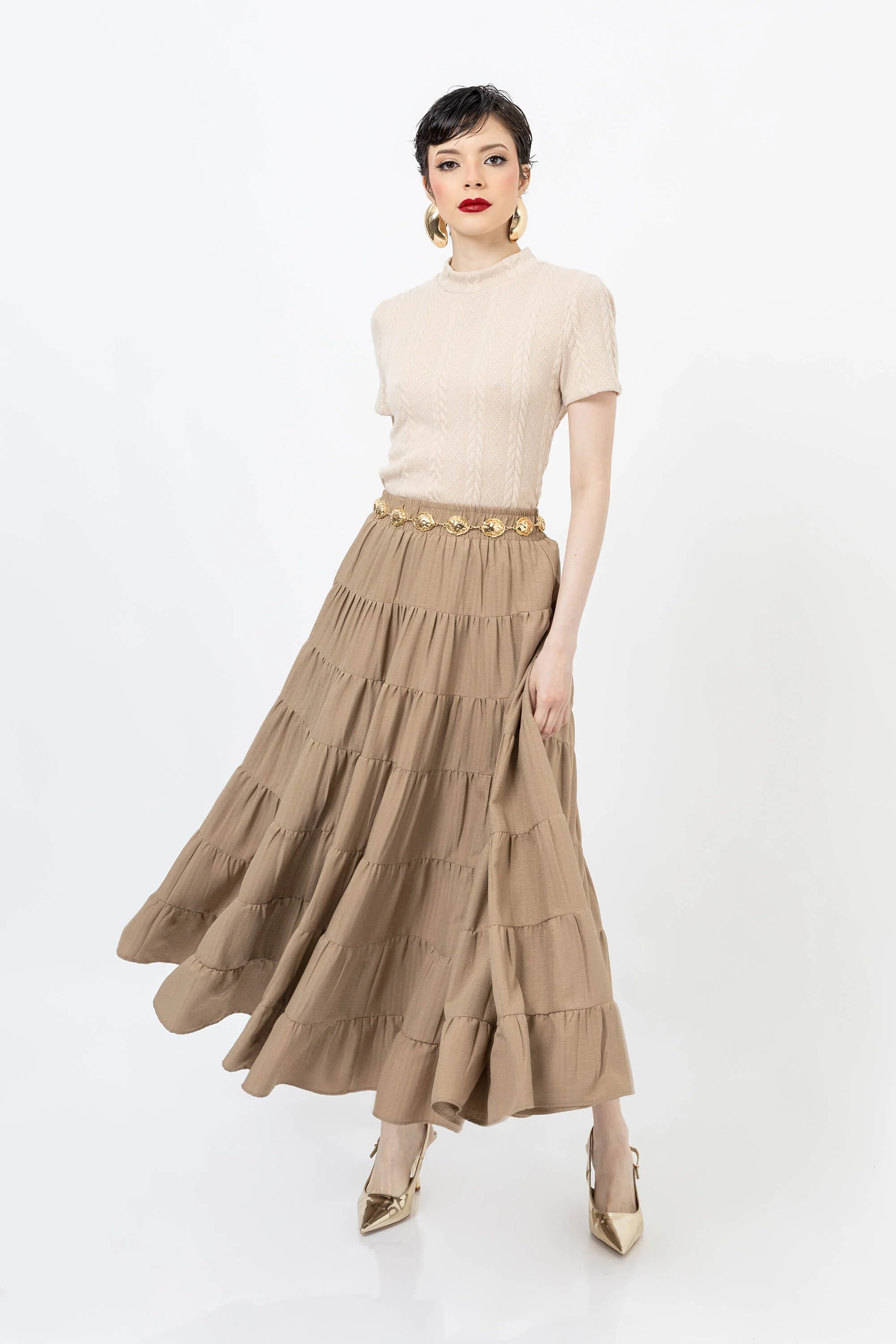 La blusa de manga corta con cuello alto de Poet Couture combina sencillez y refinamiento. Su tejido ligero de punto aporta textura y confort, mientras su diseño ajustado estiliza la silueta con elegancia contemporánea. Ideal para combinar con faldas o pantalones de talle alto.