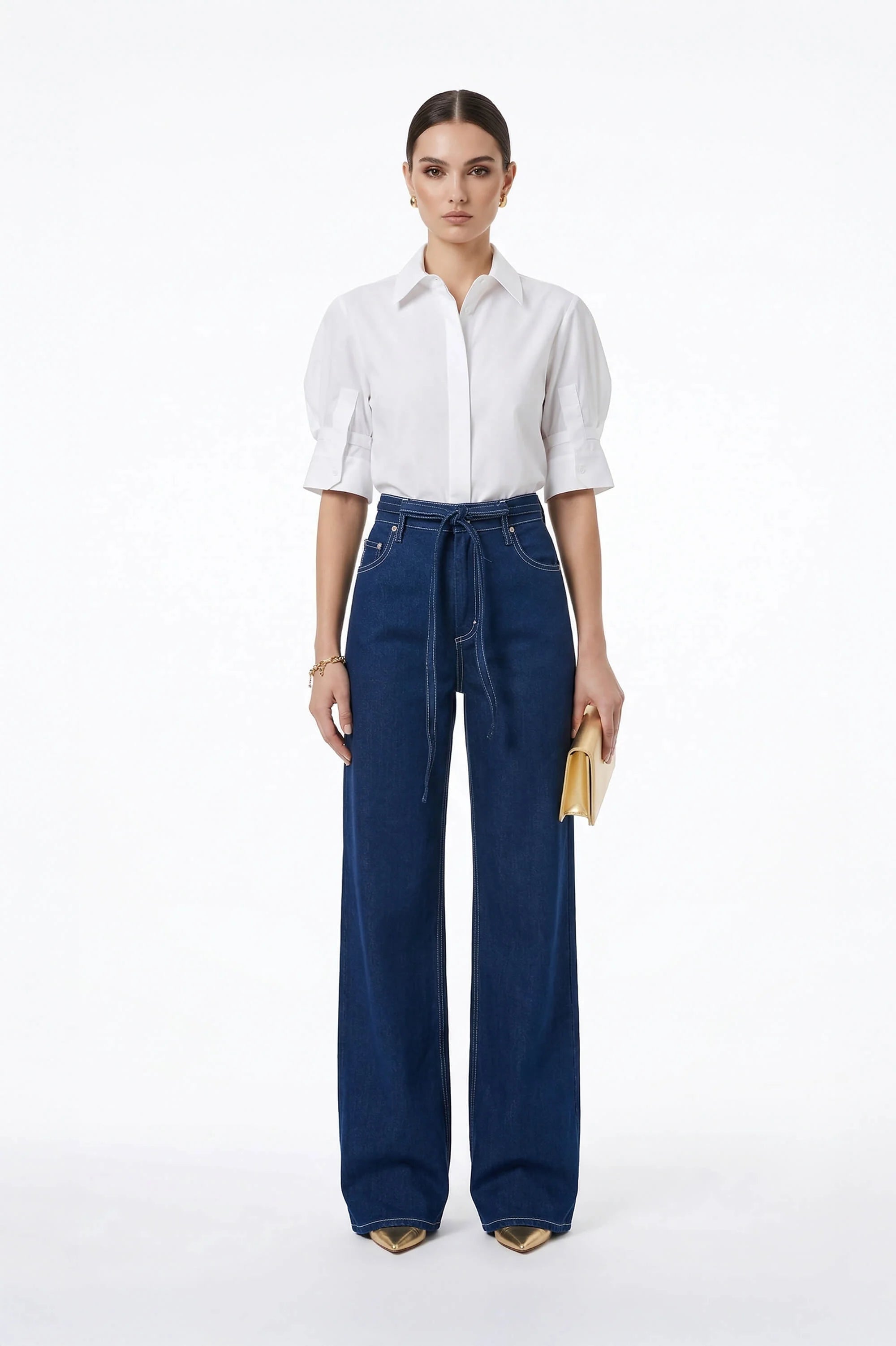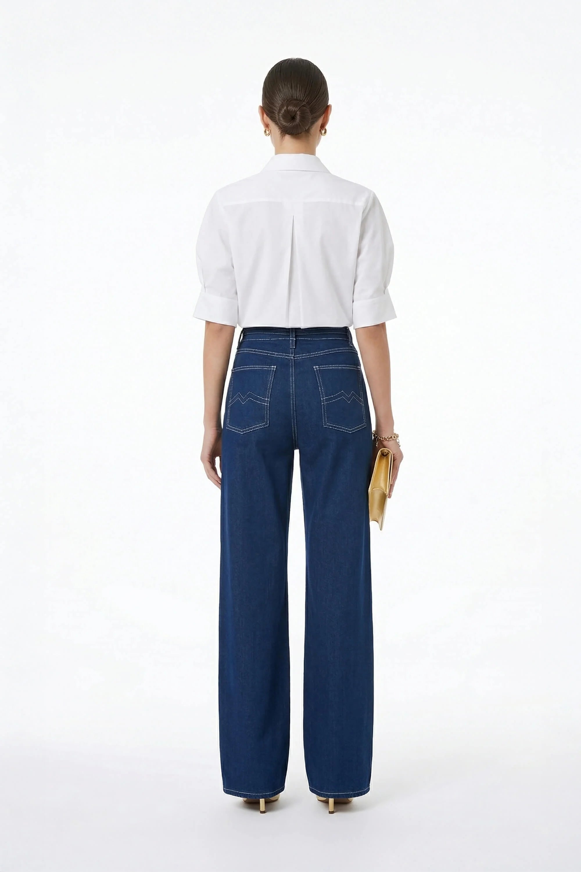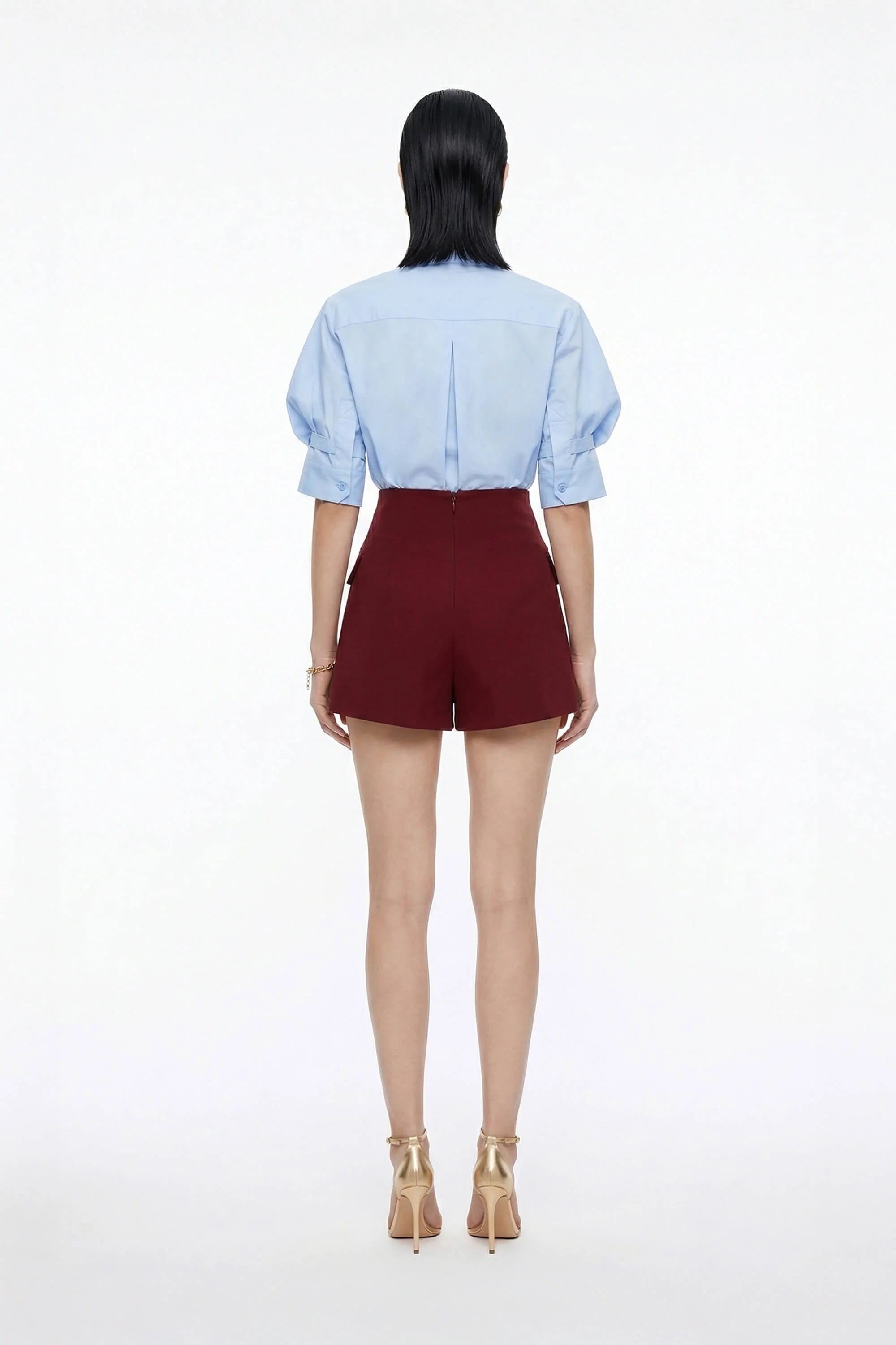 Eleva tus básicos de oficina y de fin de semana con esta camisa de diseño arquitectónico. Esta prenda no es una blusa común; es una pieza de declaración que combina la sastrería clásica con detalles femeninos de vanguardia, como sus volúmenes dramáticos y su espalda plisada.