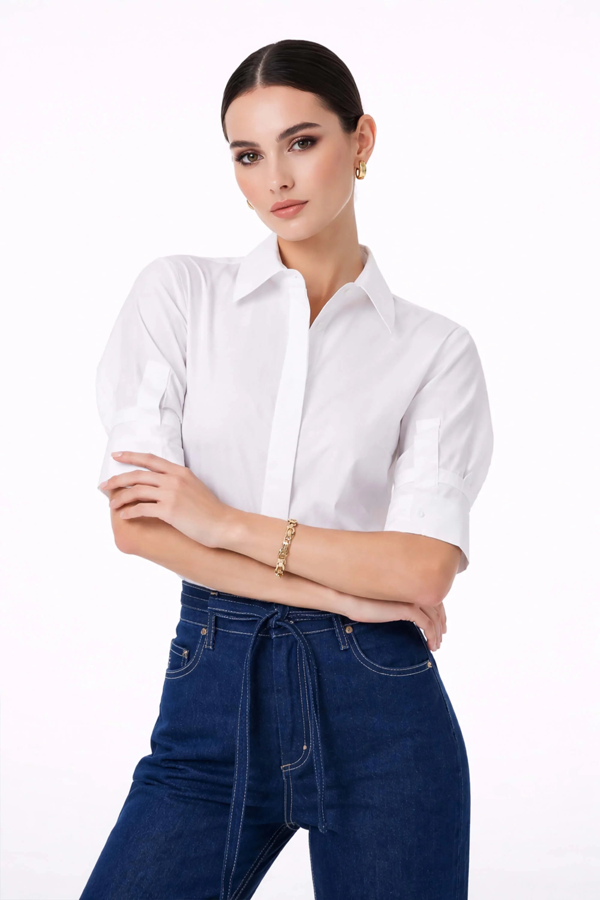 Blusa camisera de algodón manga al codo