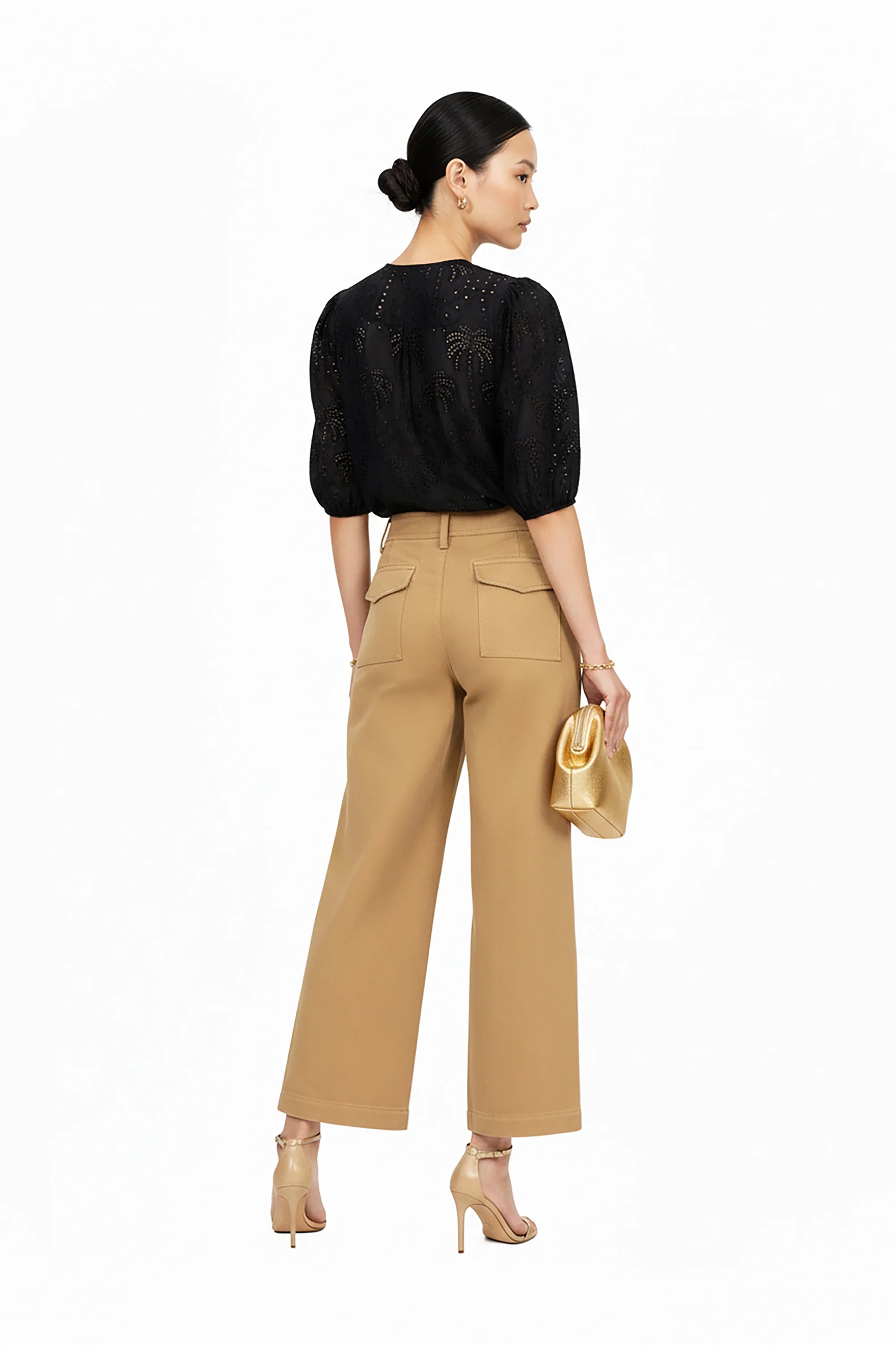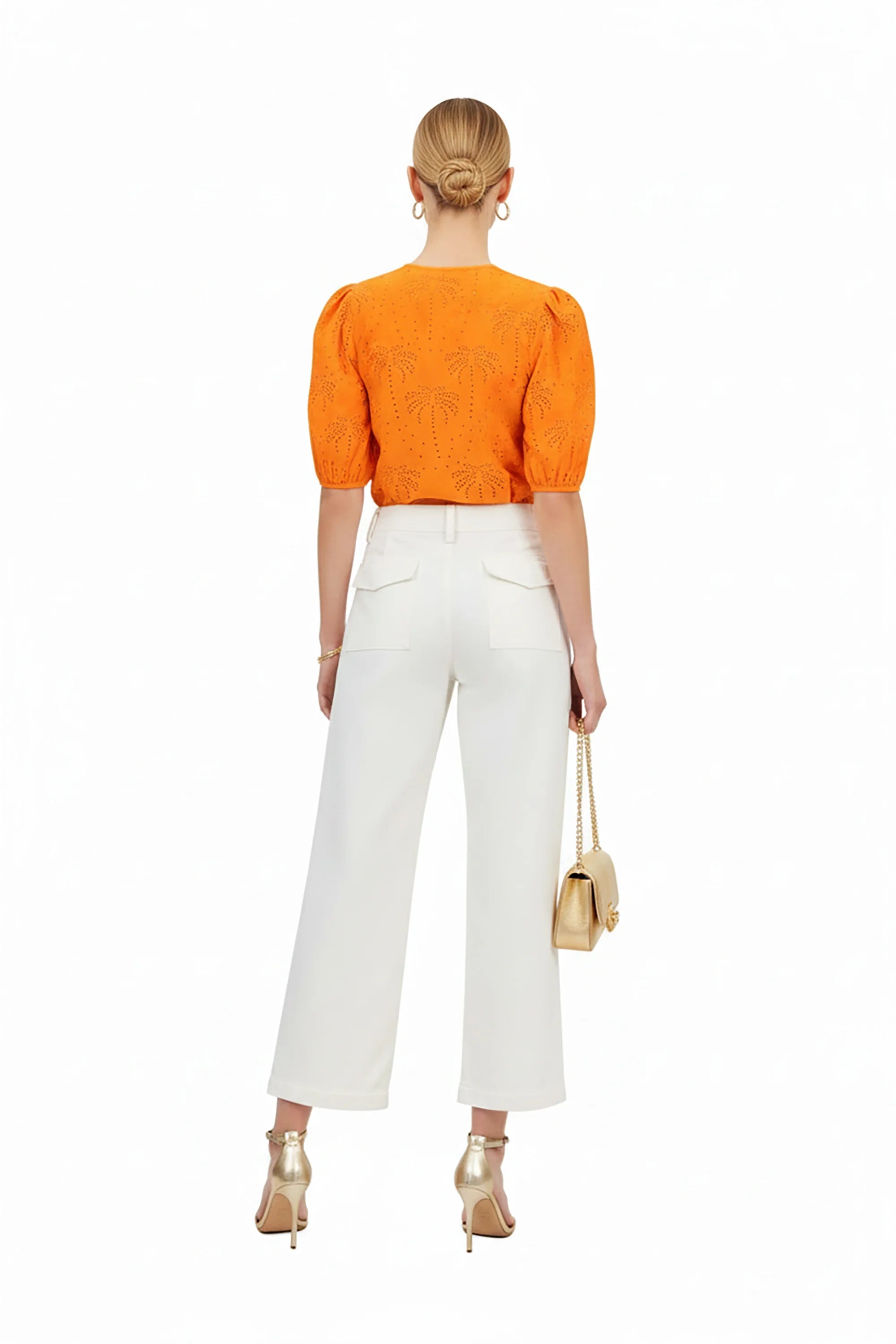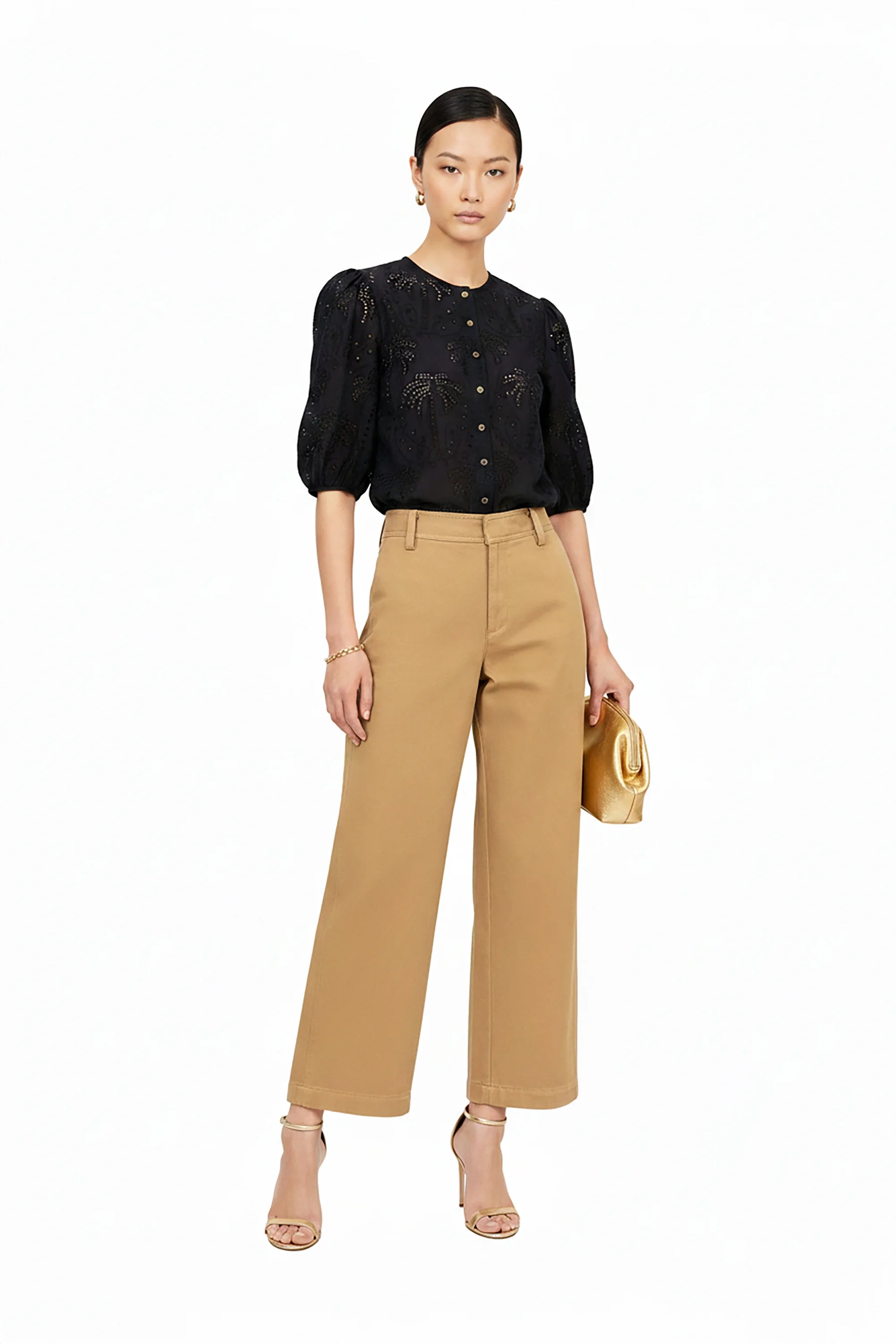 Blusa escote básico manga bishop copa plisada