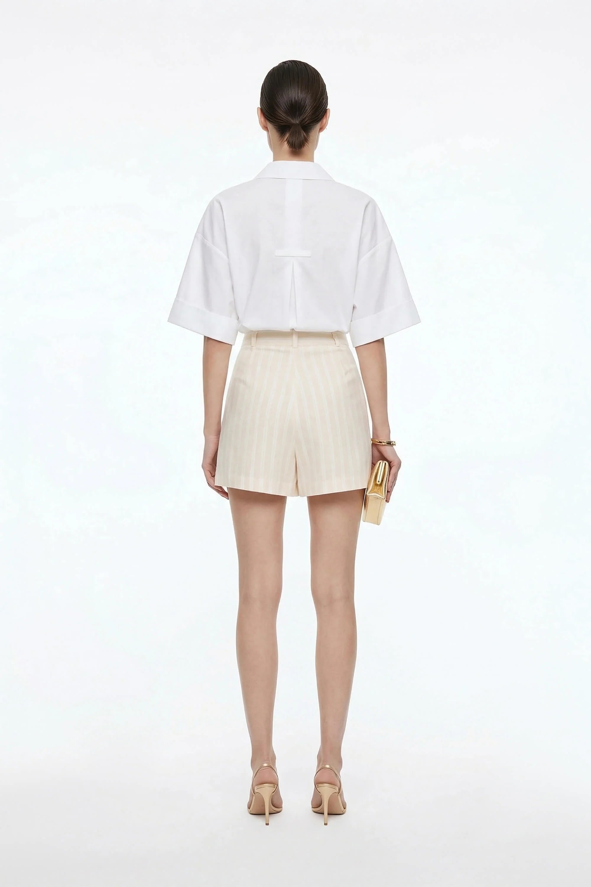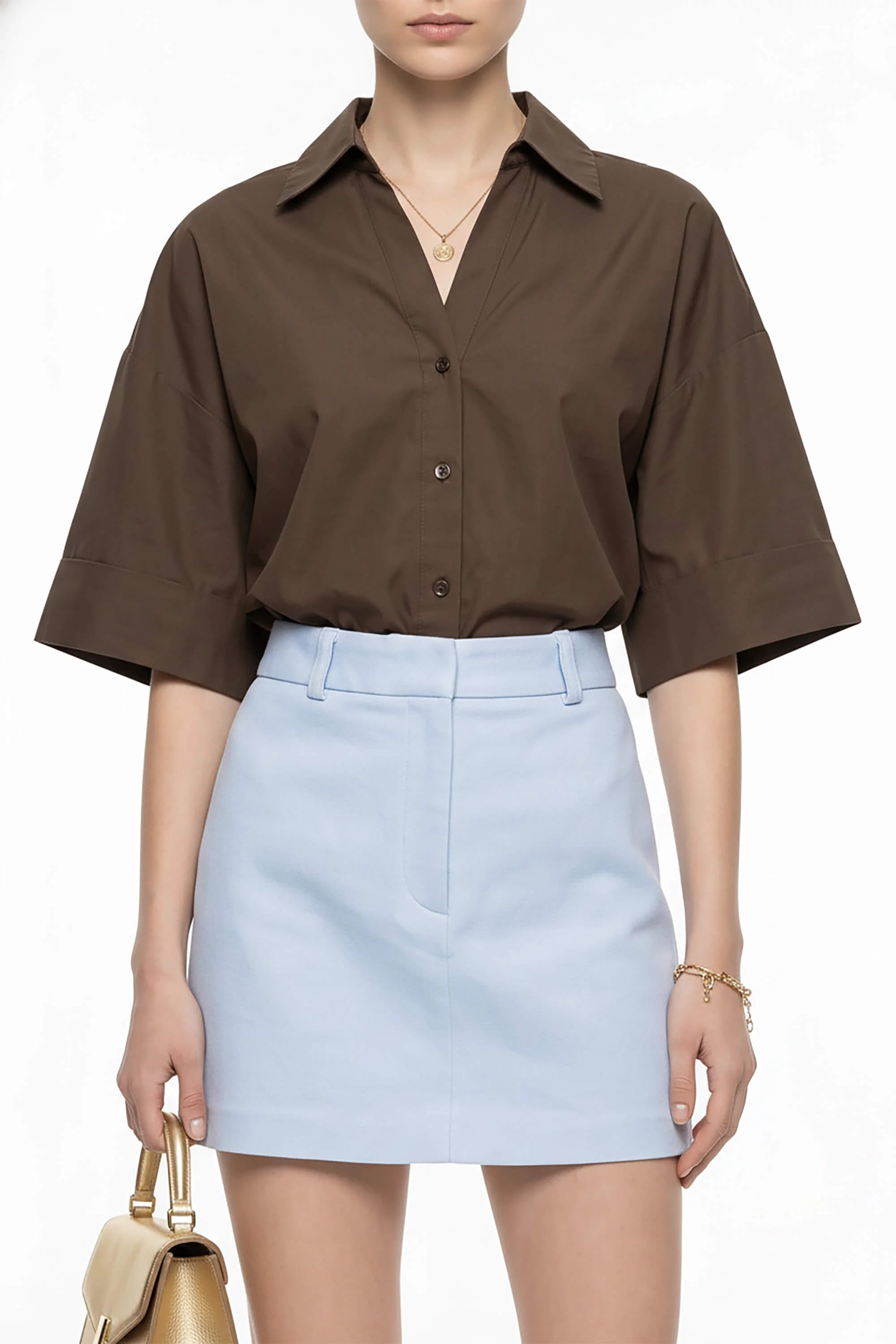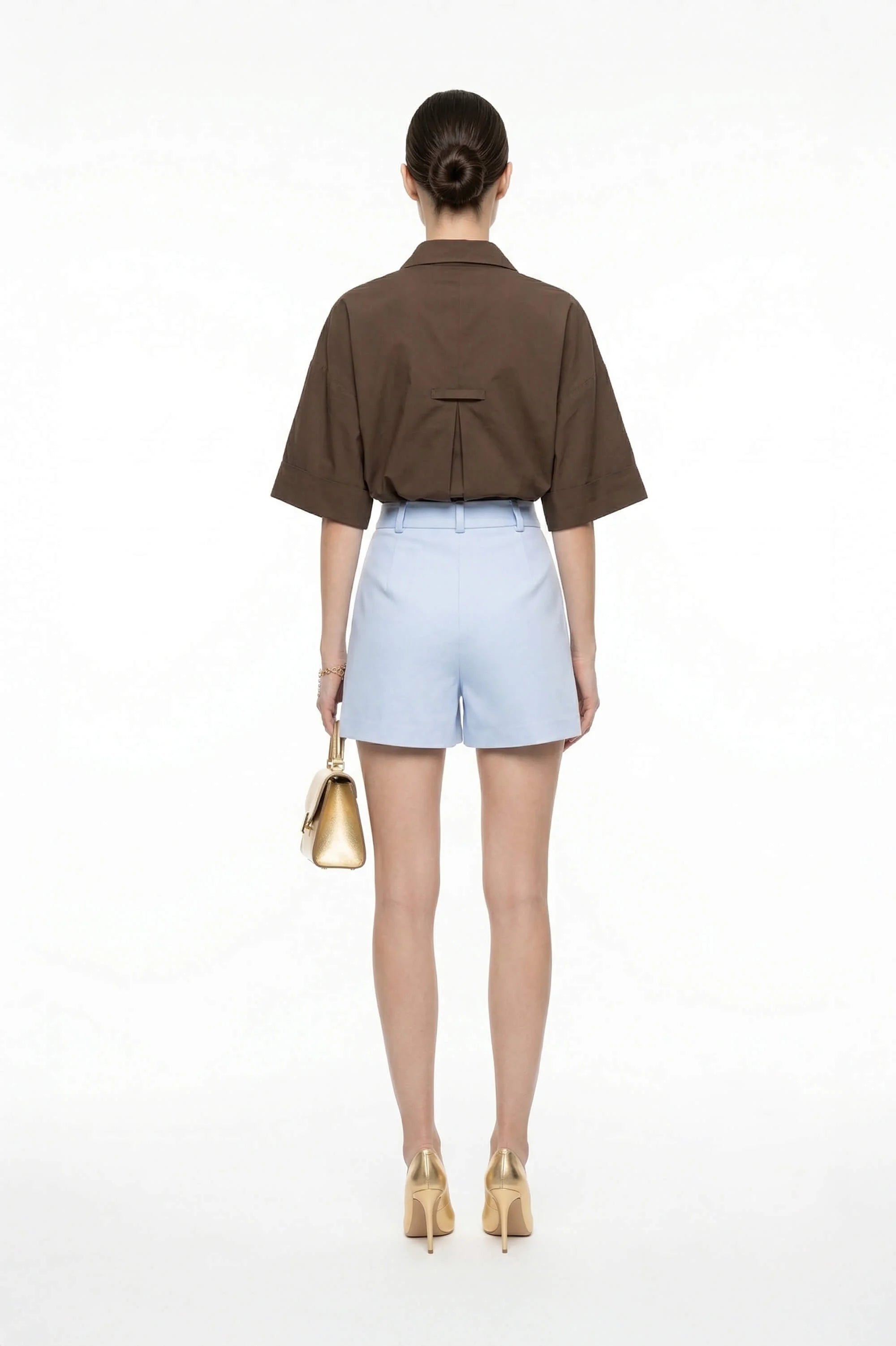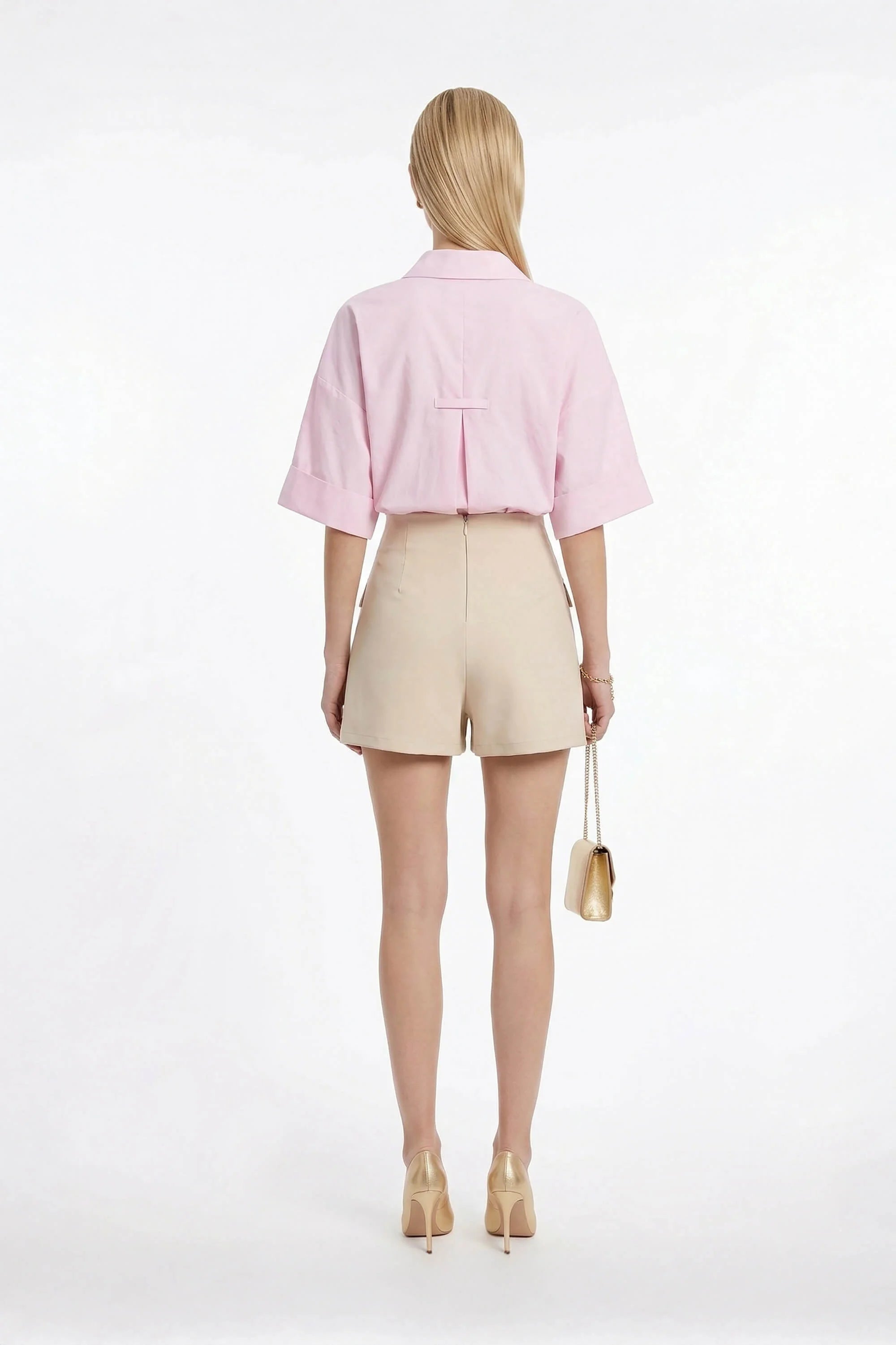 Esta prenda reinventa la camisa clásica con una silueta relajada, un escote distintivo y detalles de diseño arquitectónico en la espalda, convirtiéndola en una pieza versátil y moderna para cualquier ocasión.