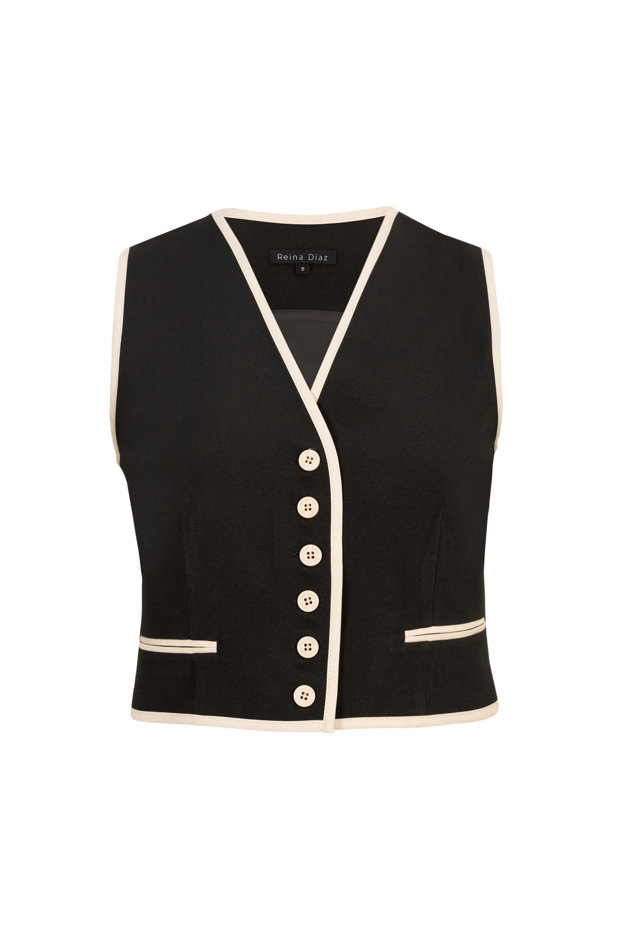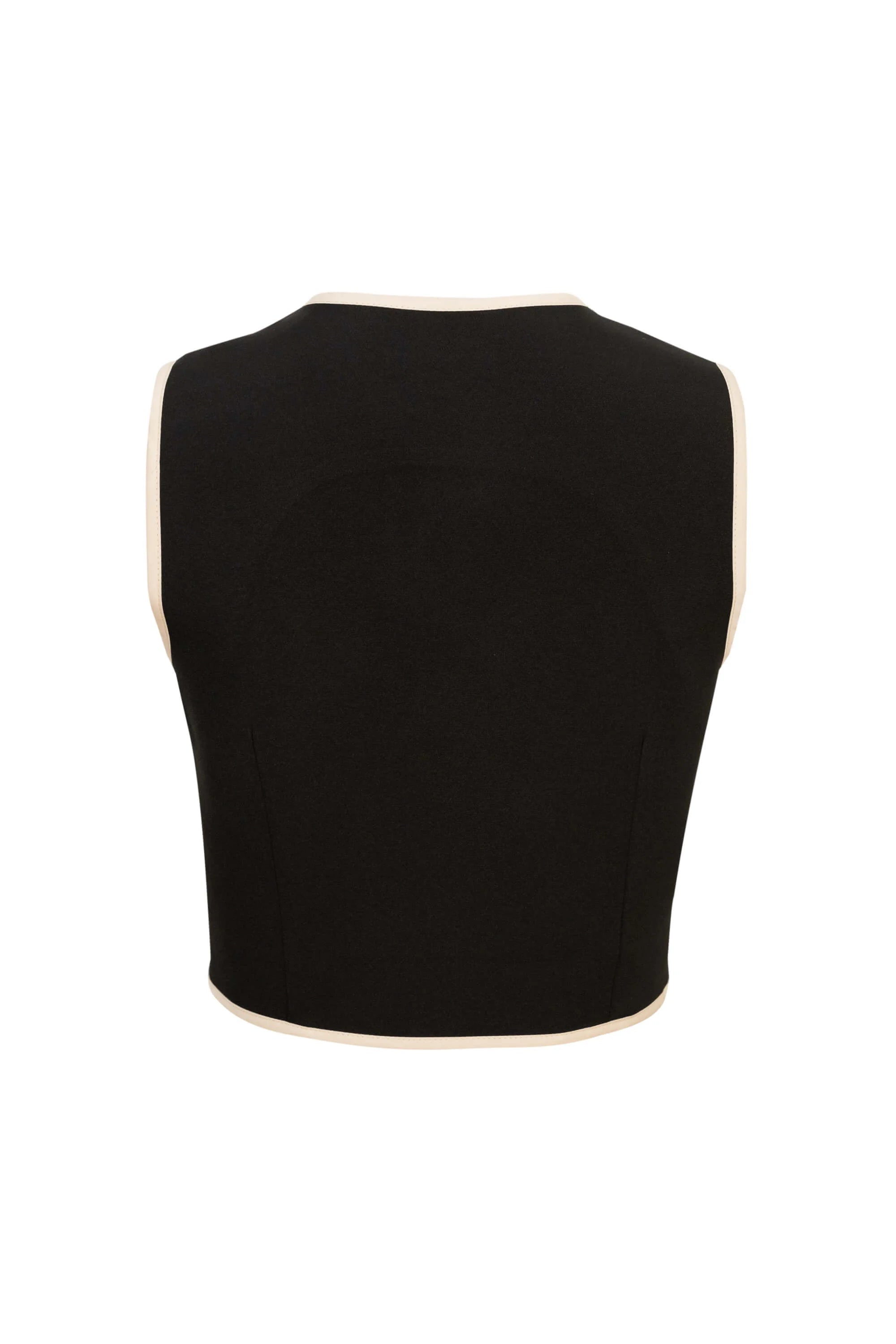 Chaleco femenino con corte sastre y vivos dobles a contraste.
