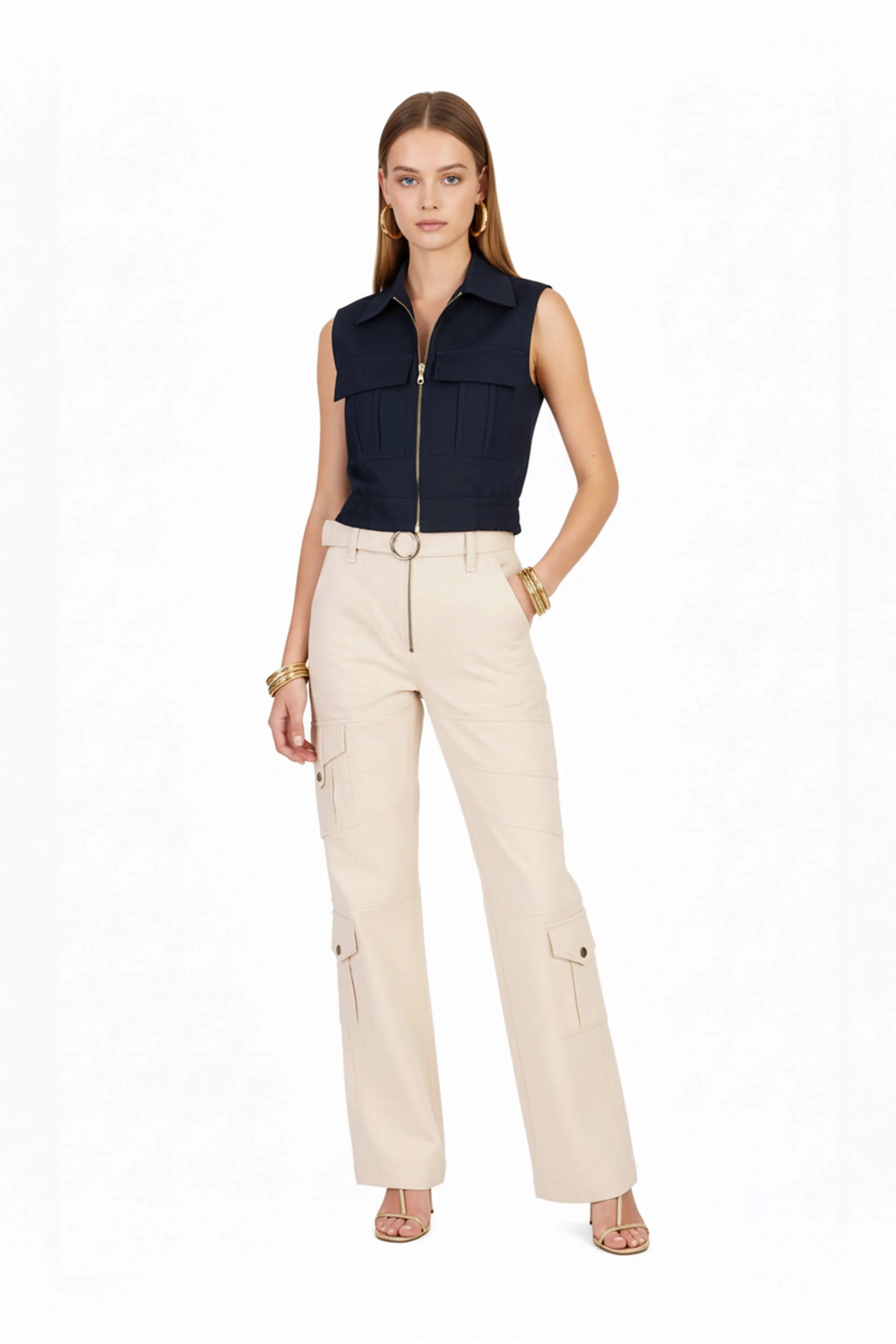 El chaleco con bolsas al frente es una prenda que redefine la funcionalidad con un toque de lujo artesanal. Su diseño estructurado, con cierre al frente y detalles prácticos en las bolsas, lo convierte en una pieza versátil que aporta carácter y estilo a cualquier conjunto.