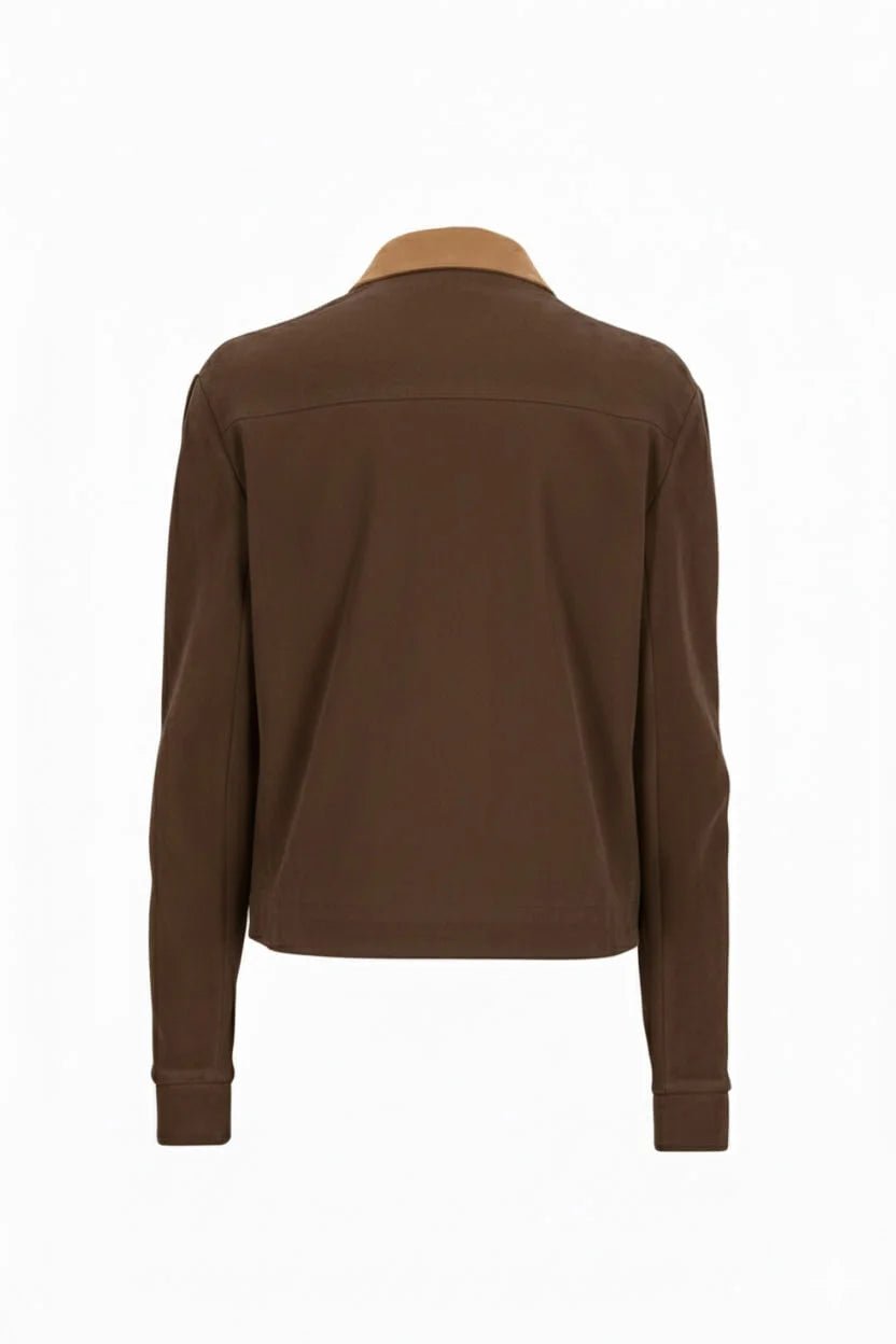 La Chaqueta de manga larga con carteras cargo de Poet Couture redefine el concepto de funcionalidad con un diseño moderno y sofisticado. Confeccionada en suede suave al tacto, presenta un cuello contrastante y amplios bolsillos tipo cargo que equilibran estilo y practicidad. Ideal para crear looks urbanos o casuales con un toque artístico y contemporáneo.