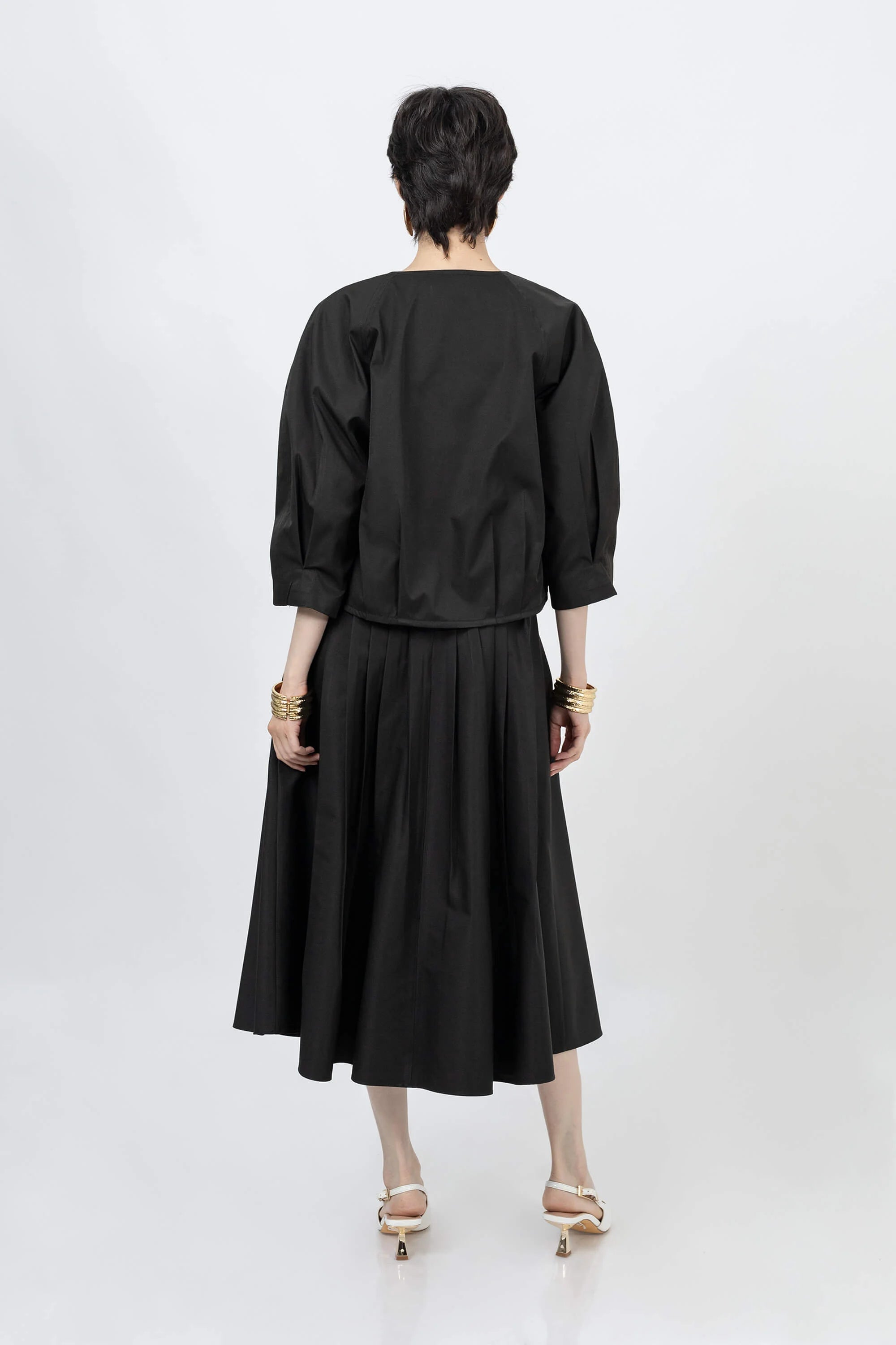 La Chaqueta corta con manga rangla de Poet Couture es una prenda versátil que eleva cualquier conjunto con su silueta moderna y refinada. Confeccionada en un tejido ligero de acabado suave, presenta una estructura limpia con cierre frontal y mangas rangla que aportan comodidad y movimiento. Ideal para looks urbanos o de transición entre estaciones, manteniendo una elegancia relajada y contemporánea.