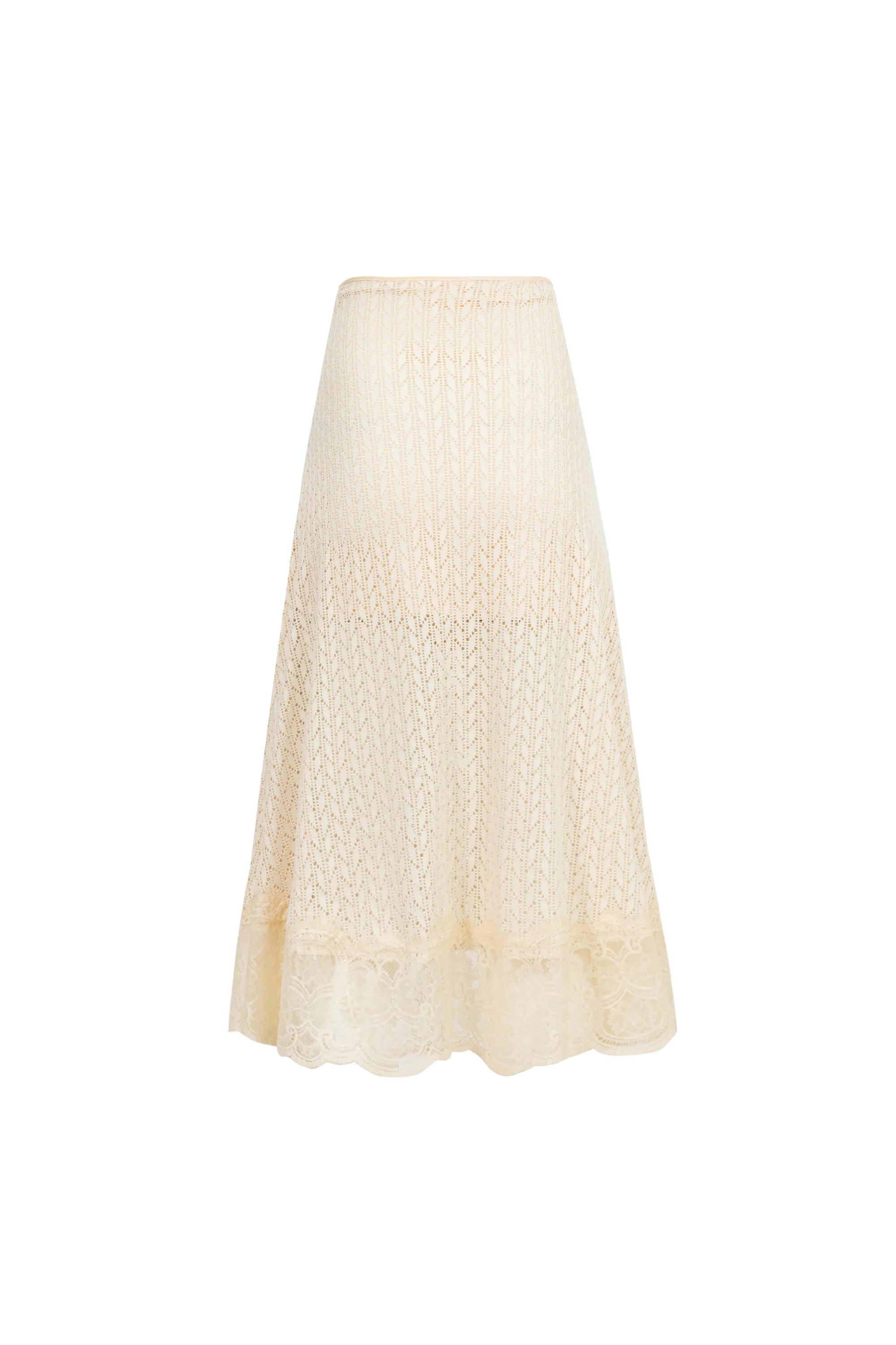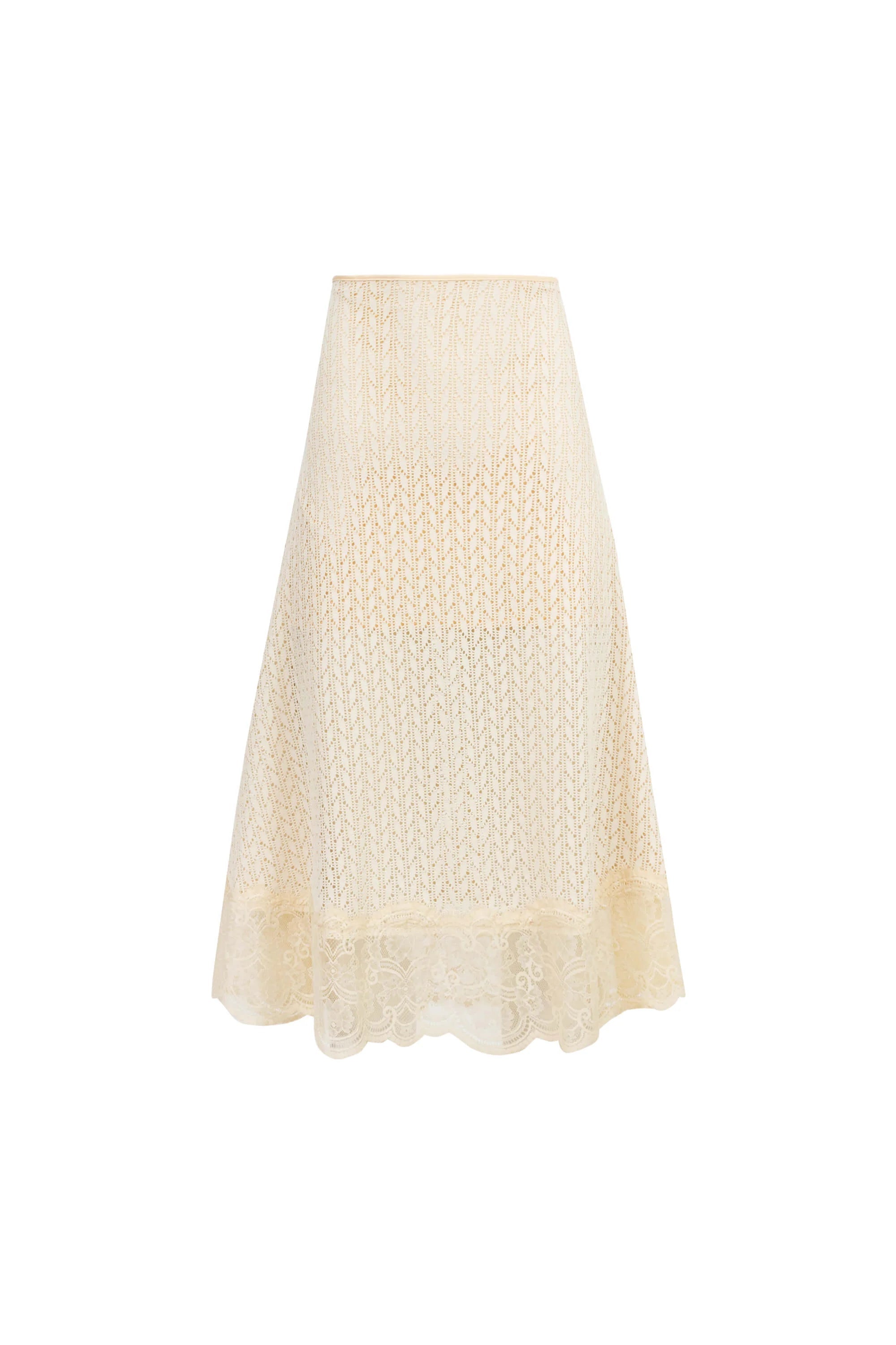 La Falda de encaje con detalle en ruedo de Poet Couture combina la delicadeza del encaje con una silueta femenina y contemporánea. Su textura translúcida y diseño midi la convierten en una pieza sofisticada ideal para combinar con tops estructurados o camisas fluidas. Perfecta para un look elegante con un toque romántico.
