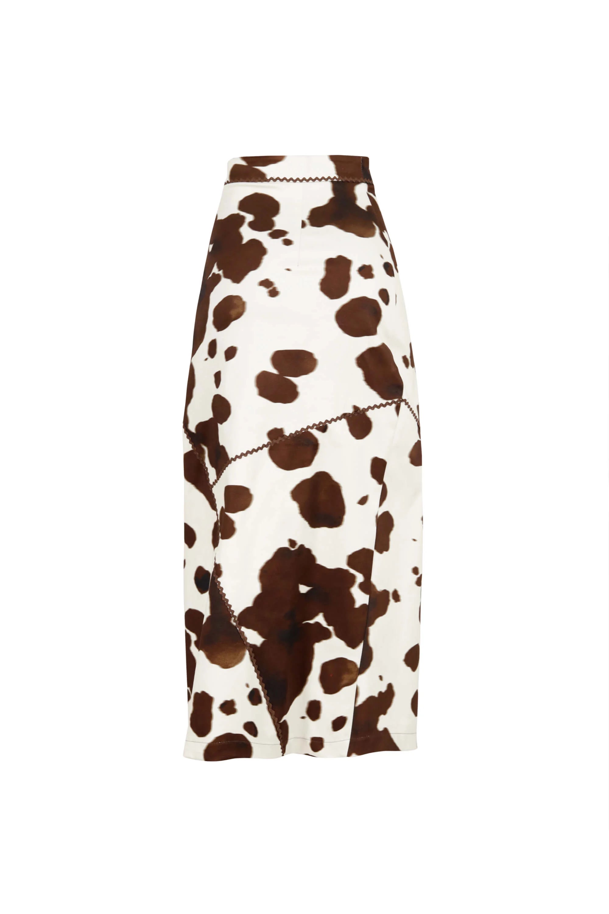 La falda midi asimétrica con cortes y avío de Poet Couture fusiona inspiración western y diseño moderno. Su silueta envolvente con aberturas estratégicas y costuras visibles crea un contraste audaz y sofisticado, ideal para un look vanguardista con carácter.