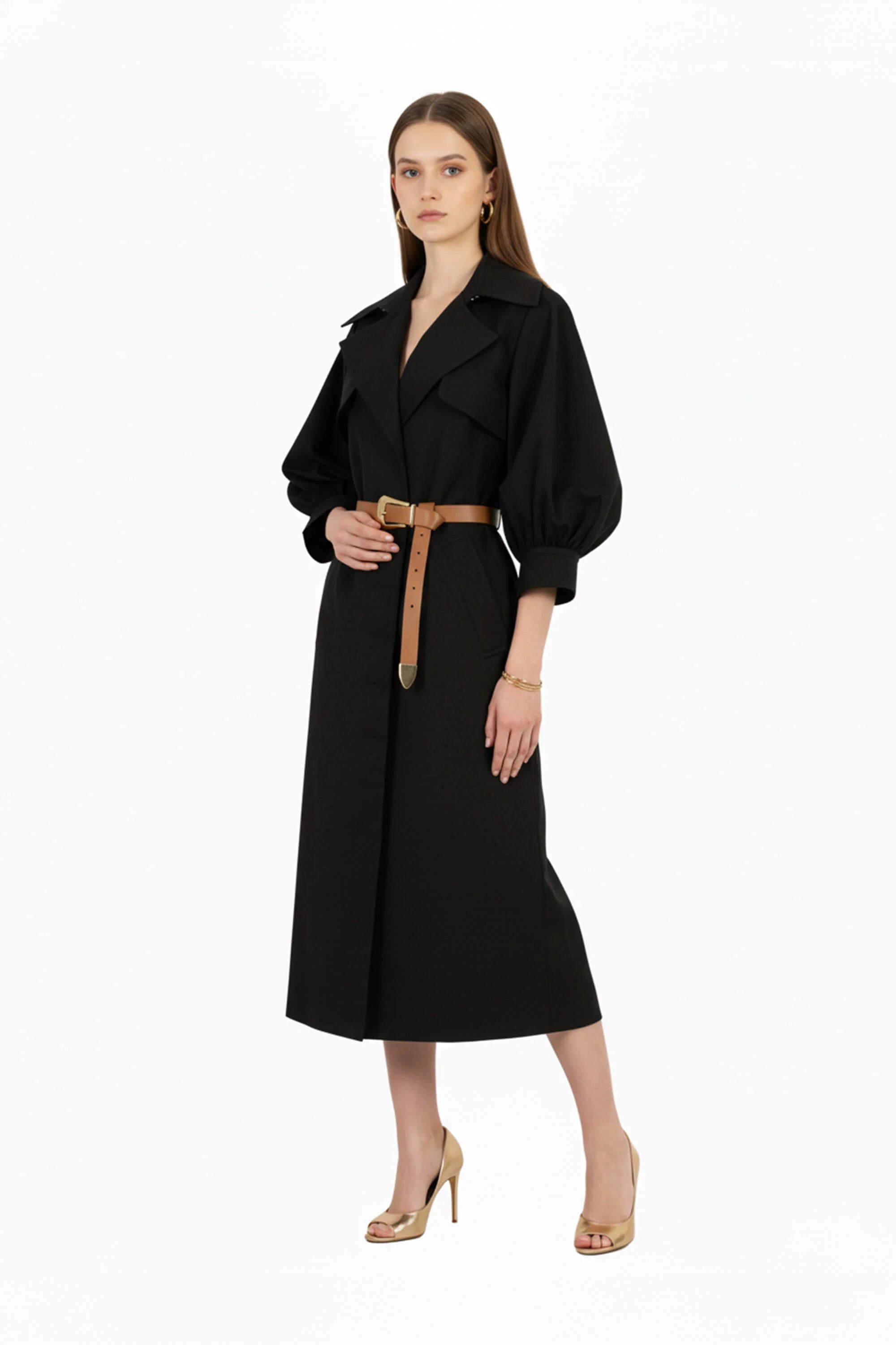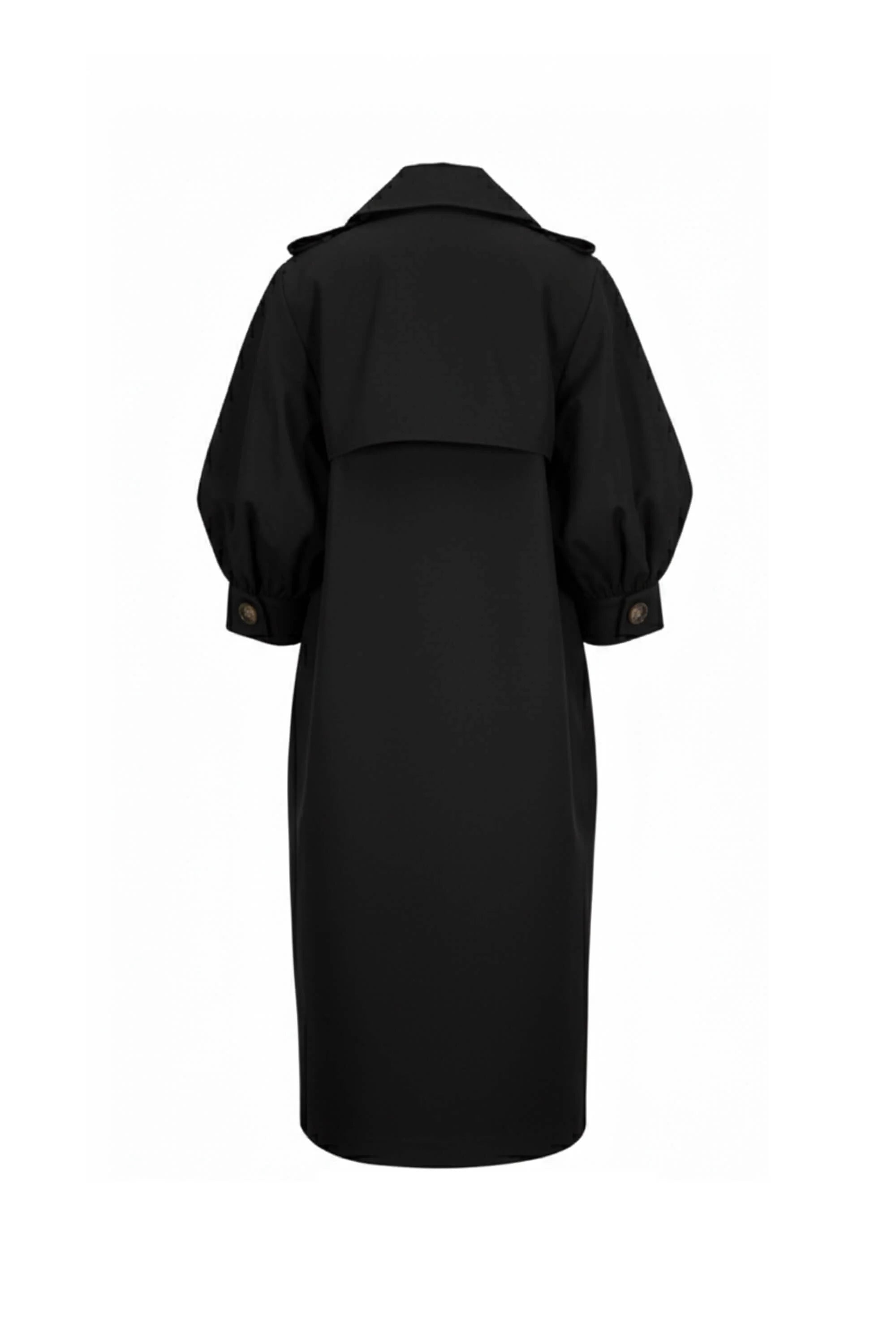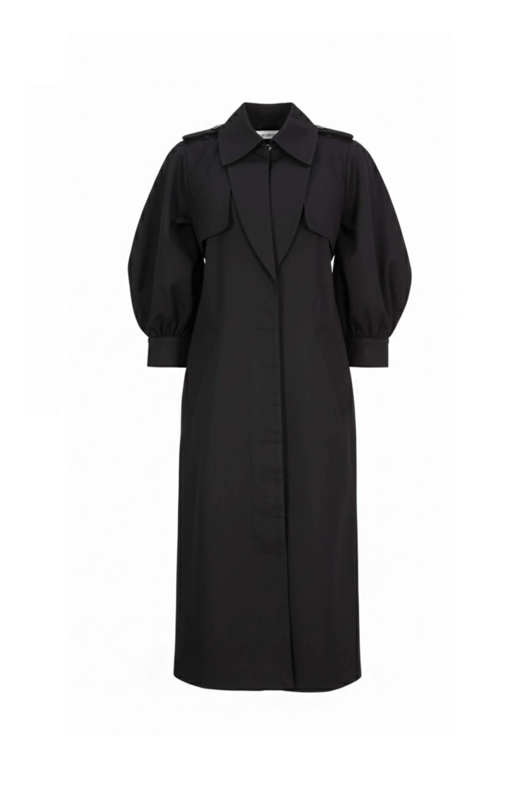 Gabardina de diseño exclusivo con cuello clásico y manga bishop.