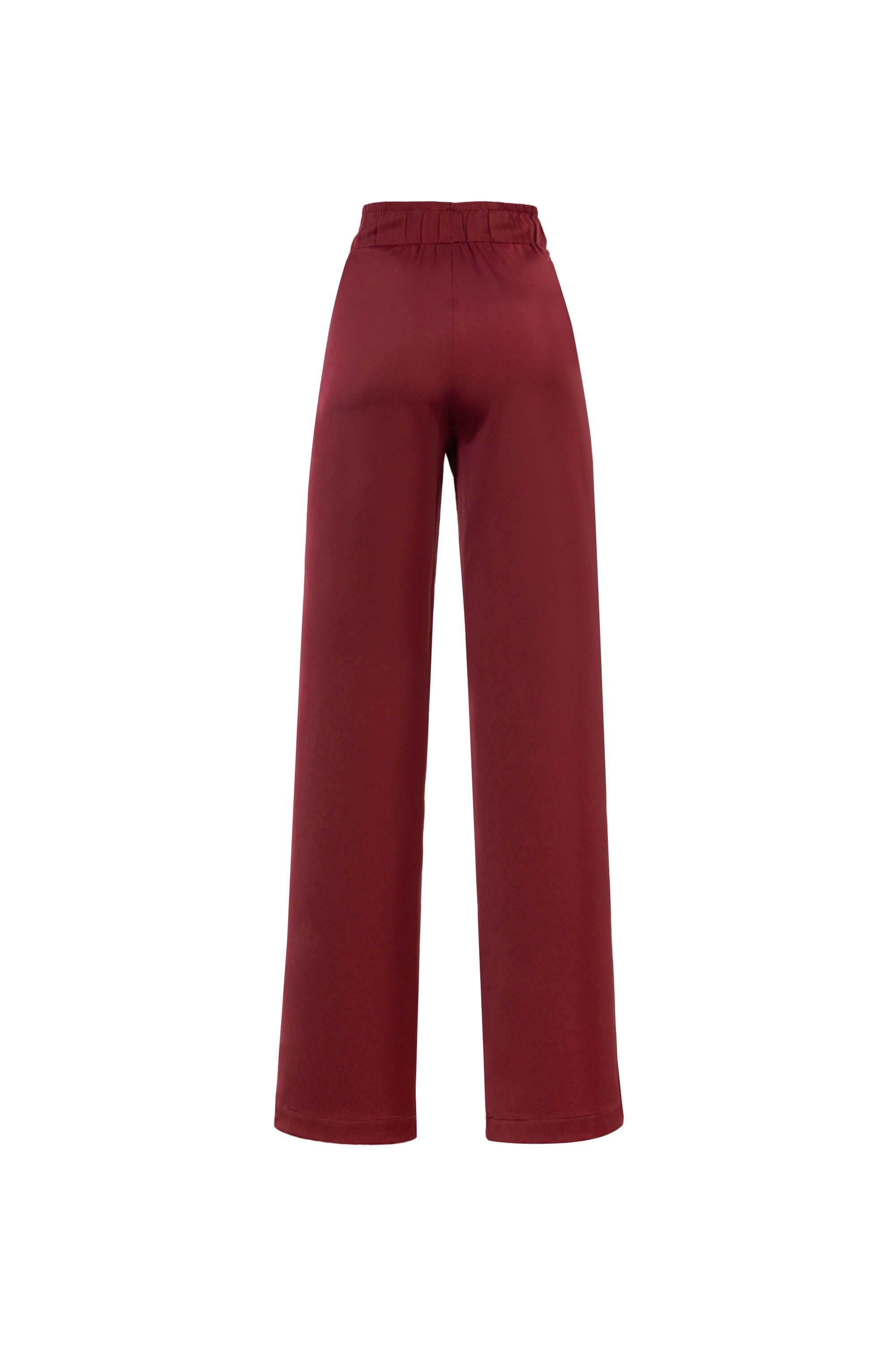 El modelo ofrece un ajuste holgado y vaporoso que culmina en un bajo de corte limpio, ideal para ser combinado con sandalias de tacón o plataformas. La estructura del pantalón presenta una caída recta desde la cadera que favorece a diversos tipos de silueta, manteniendo siempre una línea pulcra y profesional. Es una pieza de diseño de autor perfecta para la mujer que busca el equilibrio perfecto entre la elegancia de las texturas sedosas y la funcionalidad del diseño elástico moderno.