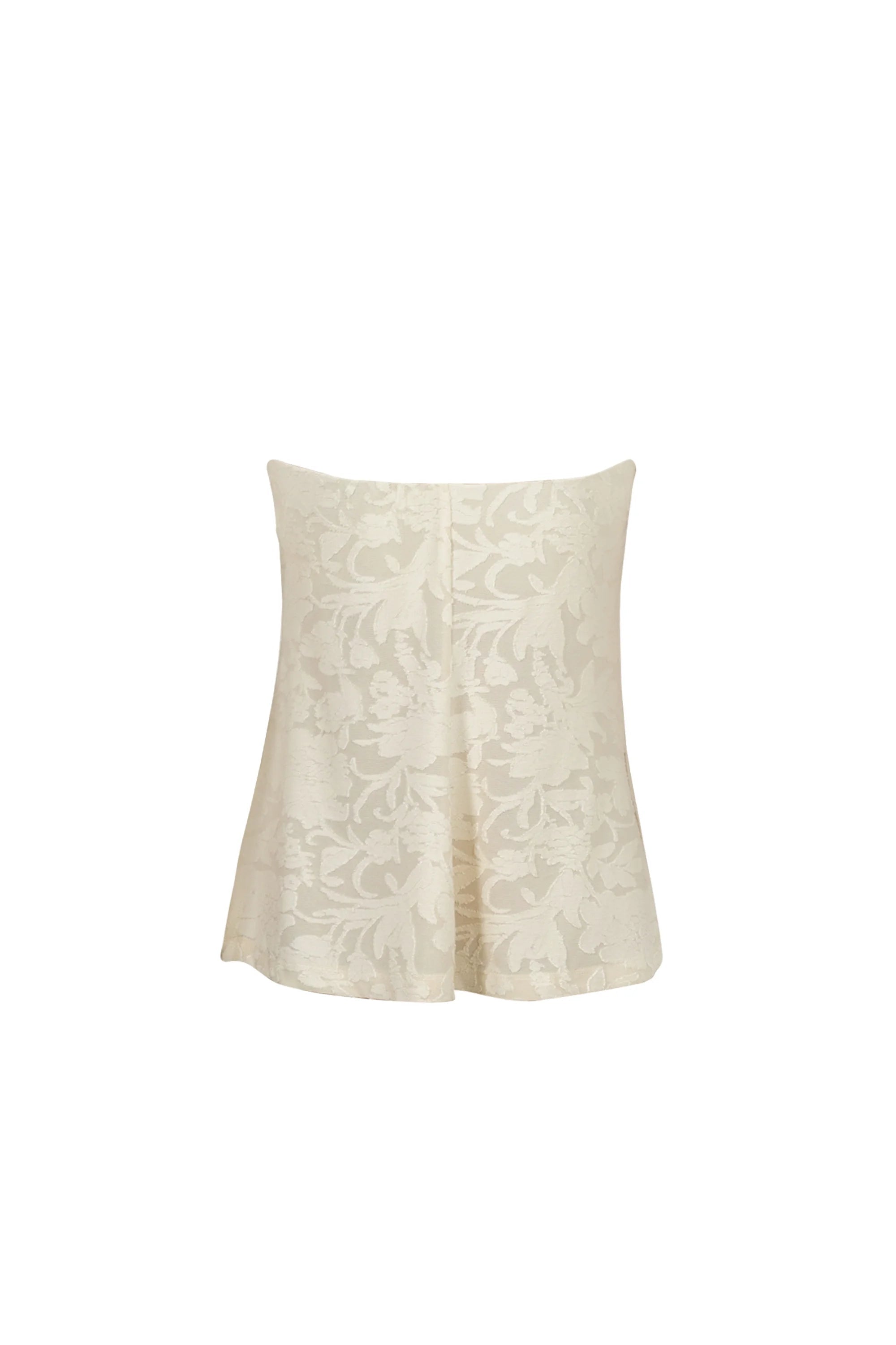La blusa Murano es una pieza de diseño minimalista que cede todo el protagonismo a la riqueza de su textura. Este top de silueta strapless destaca por su corte depurado y entallado que enmarca el torso con elegancia. Al estar confeccionada en el mismo tejido de knit con relieve floral que el pantalón Venecia, esta prenda completa un conjunto coordinado de alto impacto visual. Su diseño sin tirantes proyecta una imagen de sofisticación moderna, ideal para eventos de verano o veladas donde la textura es la clave del estilo.