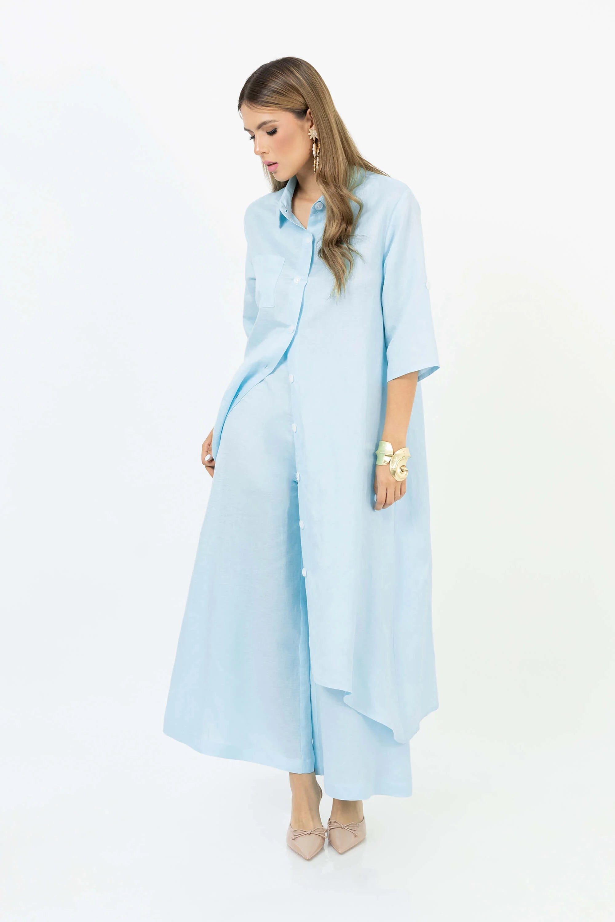 El lino 100% natural no solo aporta frescura, sino también textura y estructura ligera, ideal para climas cálidos. Su tiro alto estiliza la figura, mientras que la amplitud en la pierna crea un efecto visual escultural y empoderado. El color rosa intenso proyecta seguridad, feminidad y un toque artístico que convierte esta prenda en protagonista.