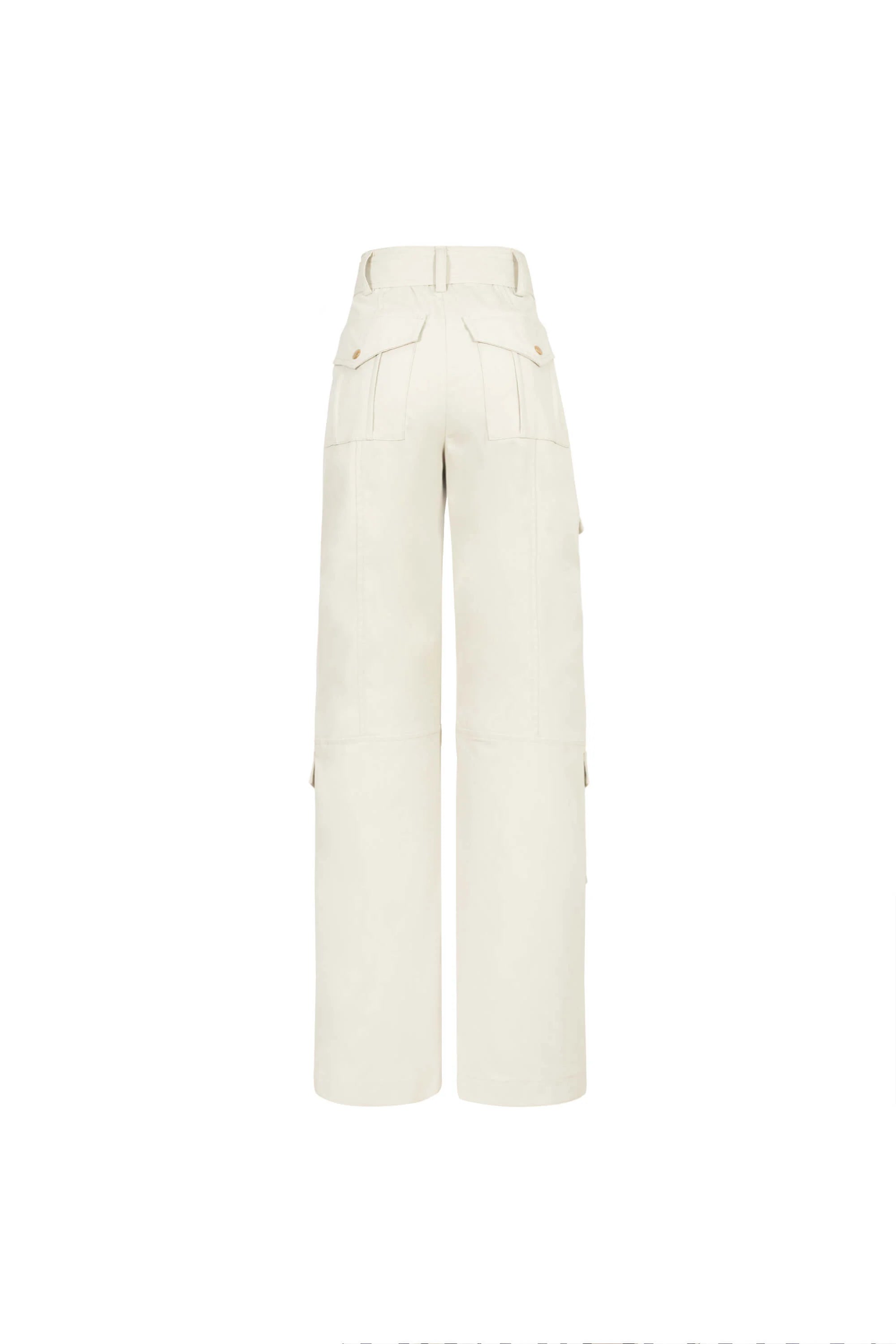 Este pantalón  con cortes marcados, bolsas y carteras representa la fusión entre funcionalidad y diseño de autor. Su confección en tejido firme y su silueta recta de tiro alto aportan estructura y una caída impecable que estiliza sin rigidez.