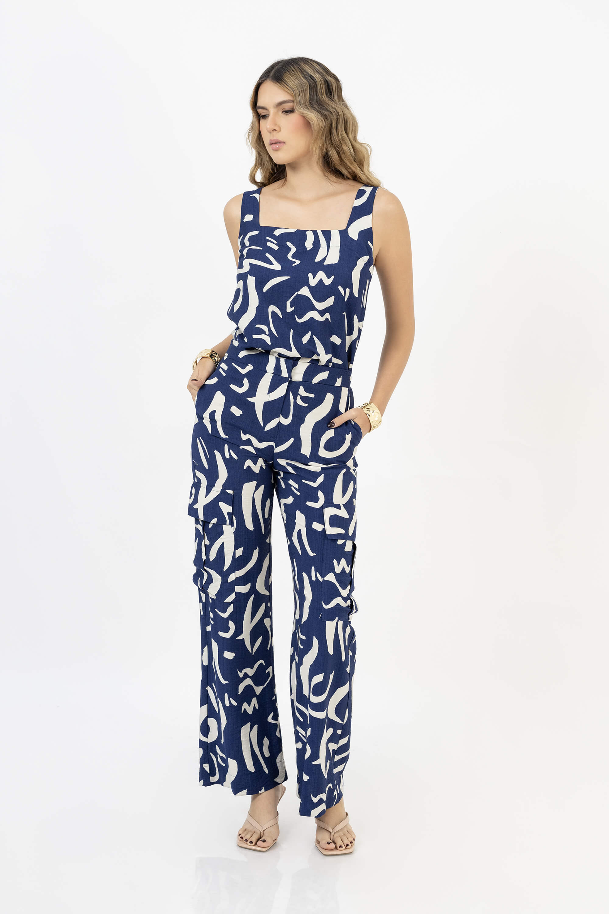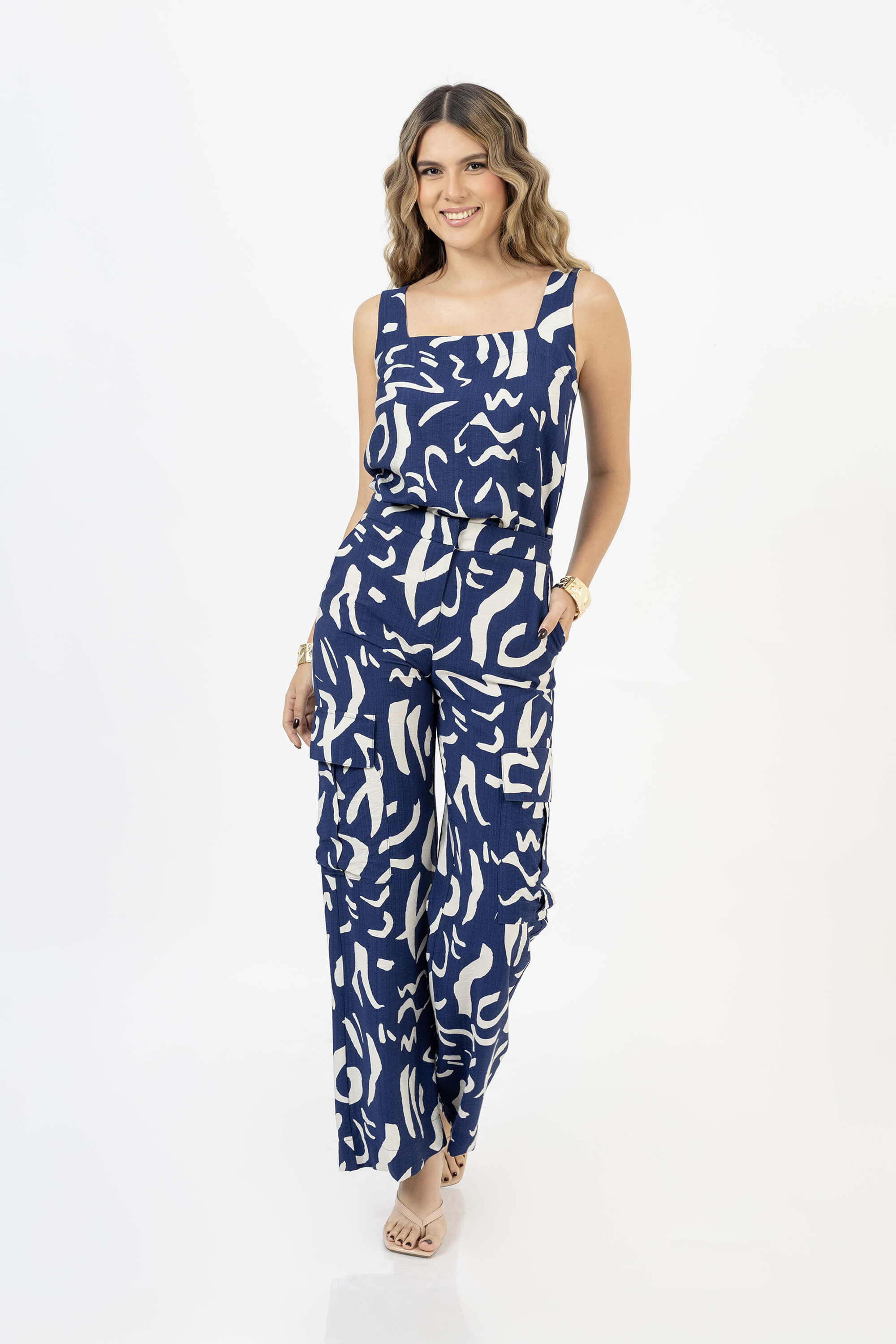 Este pantalón pata ancha destaca por su silueta fluida y su estampado perfecto para estilismos modernos con inspiración natural. Una prenda versátil que equilibra comodidad y sofisticación.