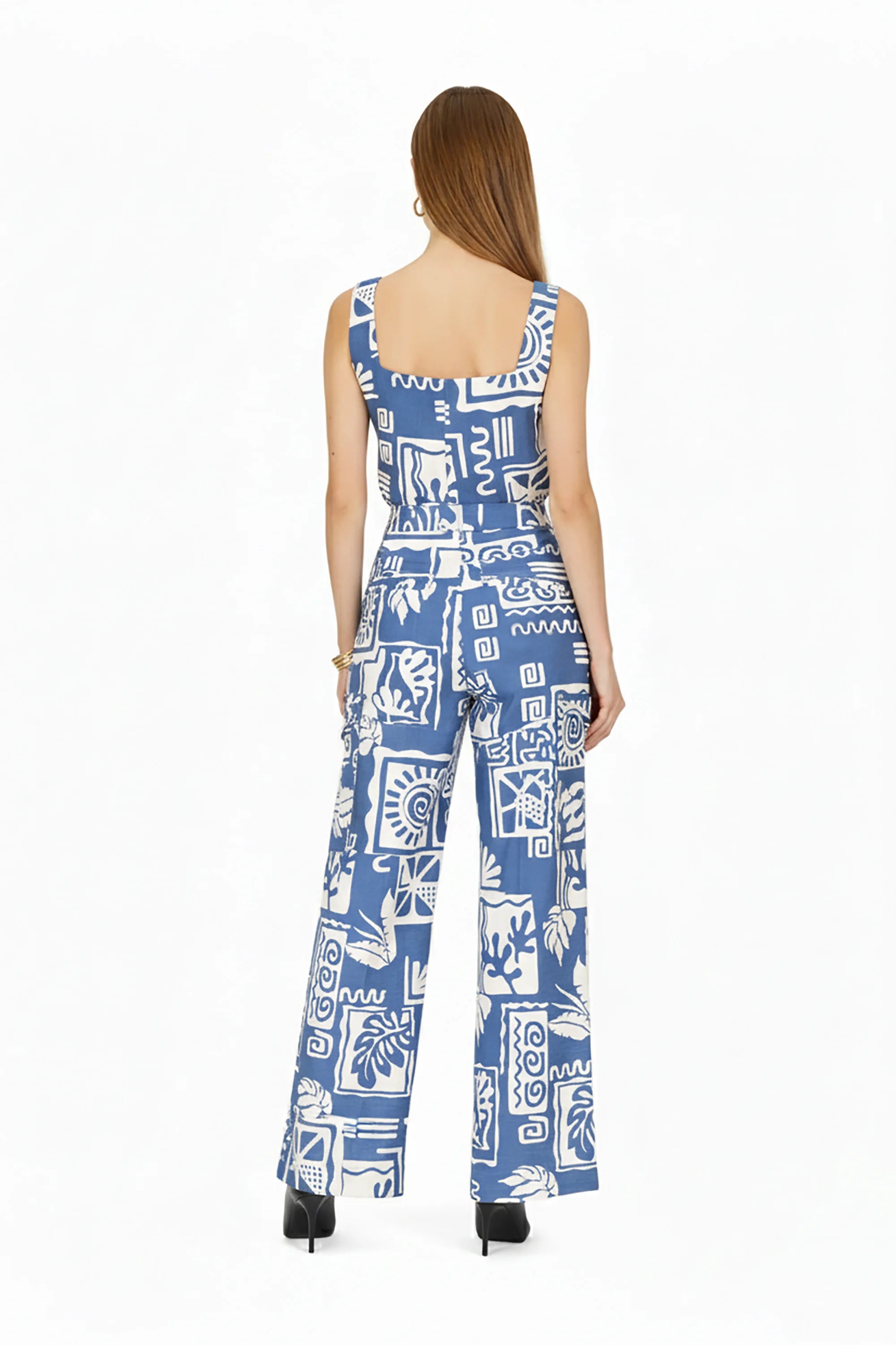 Este pantalón pata ancha destaca por su silueta fluida y su estampado perfecto para estilismos modernos con inspiración natural. Una prenda versátil que equilibra comodidad y sofisticación.
