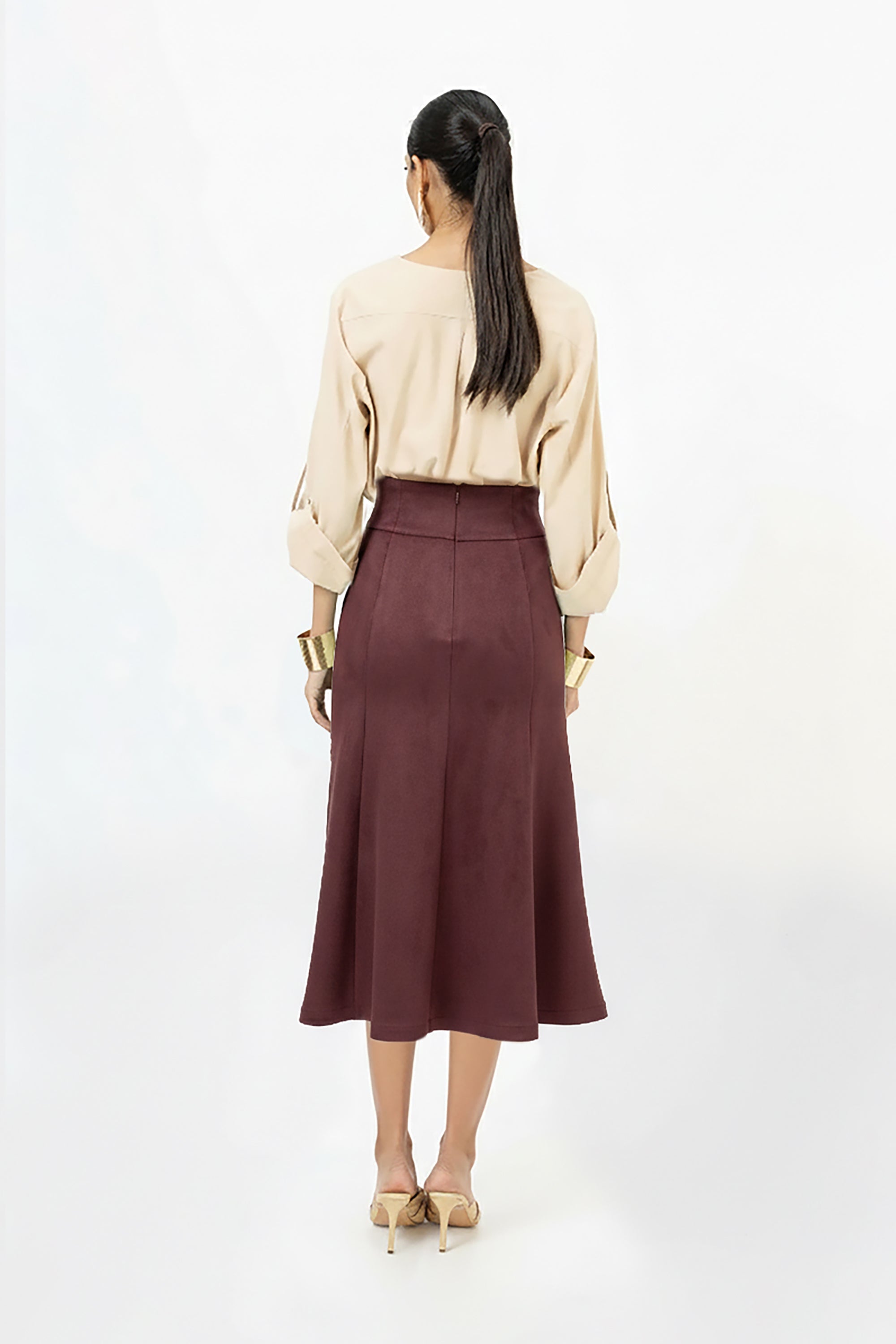 La prenda está elaborada en una mezcla técnica premium de 65% Modal y 35% Poliéster. Esta composición ha sido seleccionada por su tacto ultra suave y sedoso, característico del modal, que ofrece una caída líquida excepcional. El poliéster garantiza la durabilidad de la prenda y una alta resistencia a las arrugas, asegurando que el volumen de las mangas y la estructura del cuello permanezcan impecables durante toda la jornada.